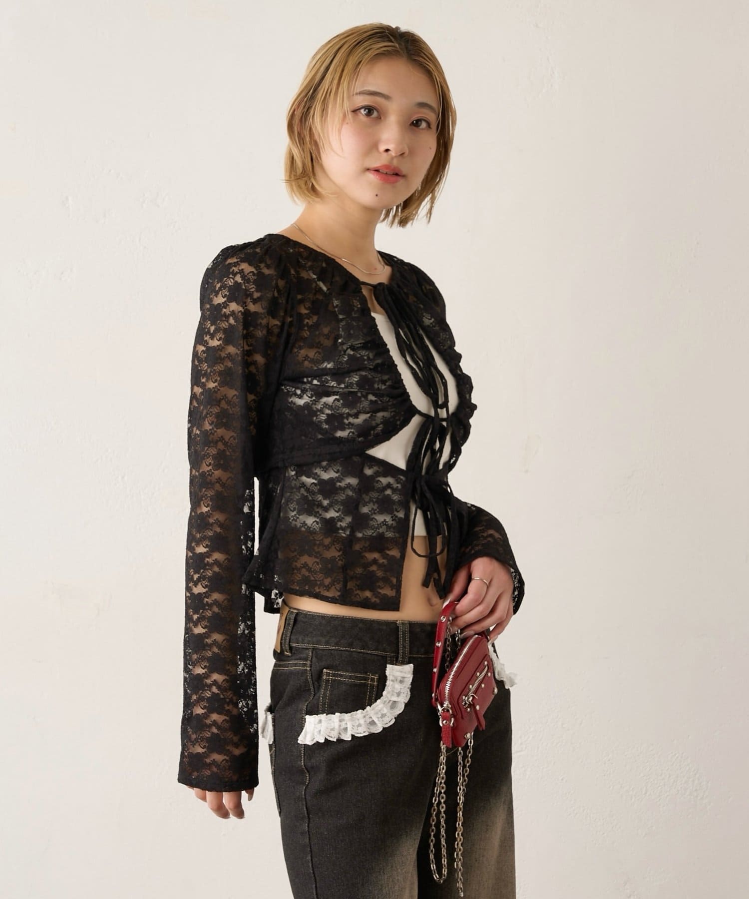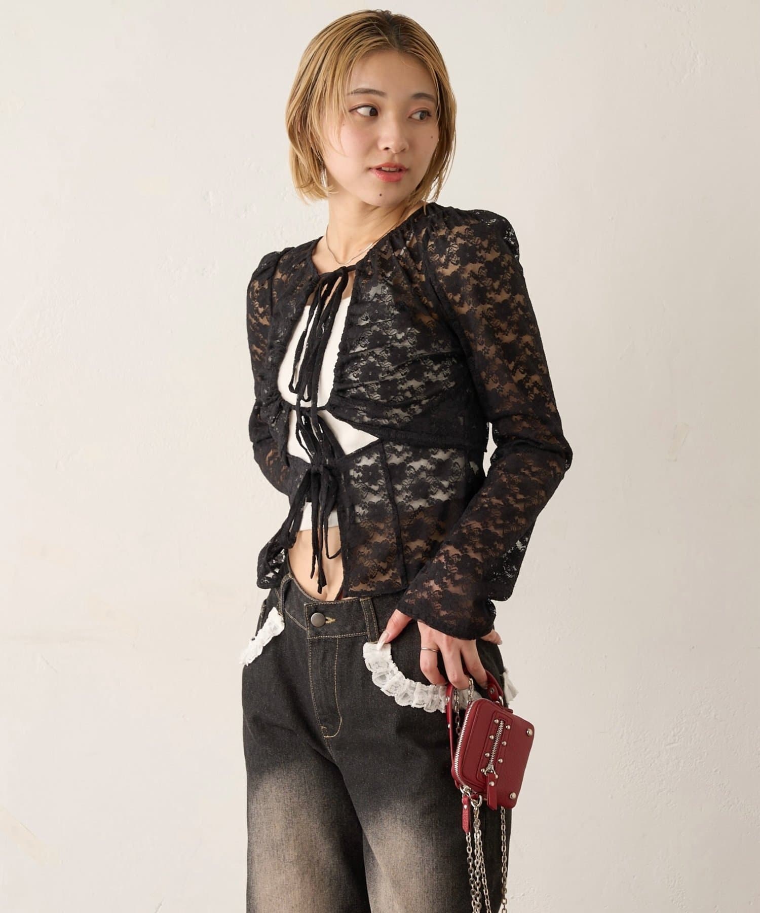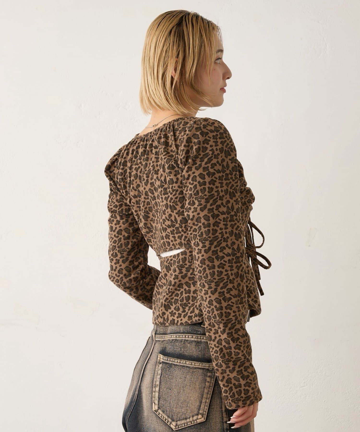 トレンドのレースとレオパード(ヒョウ柄)が仲間入りしたデザインブラウス。