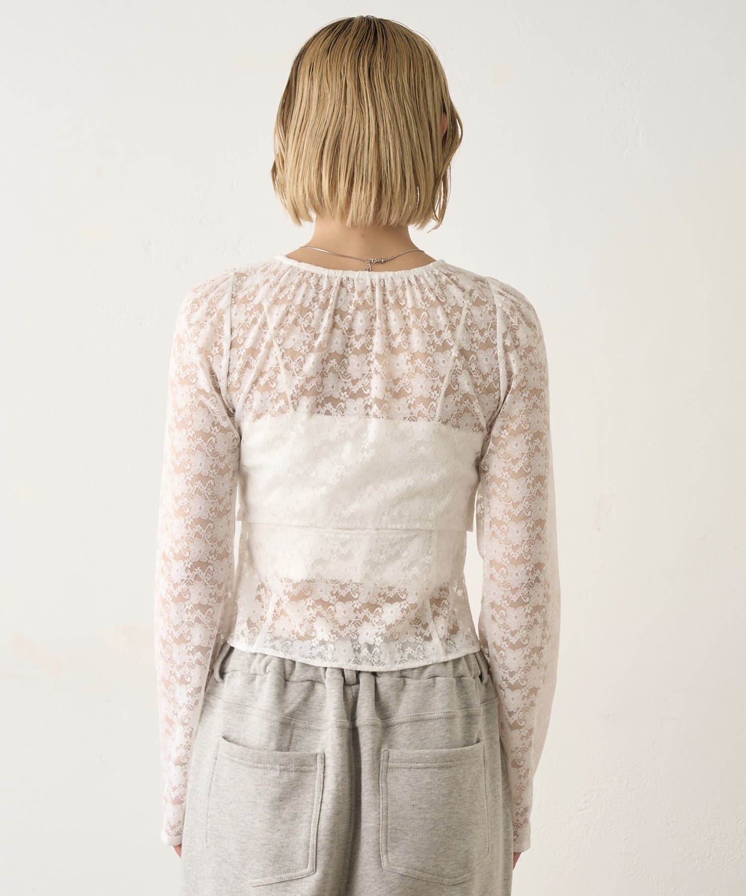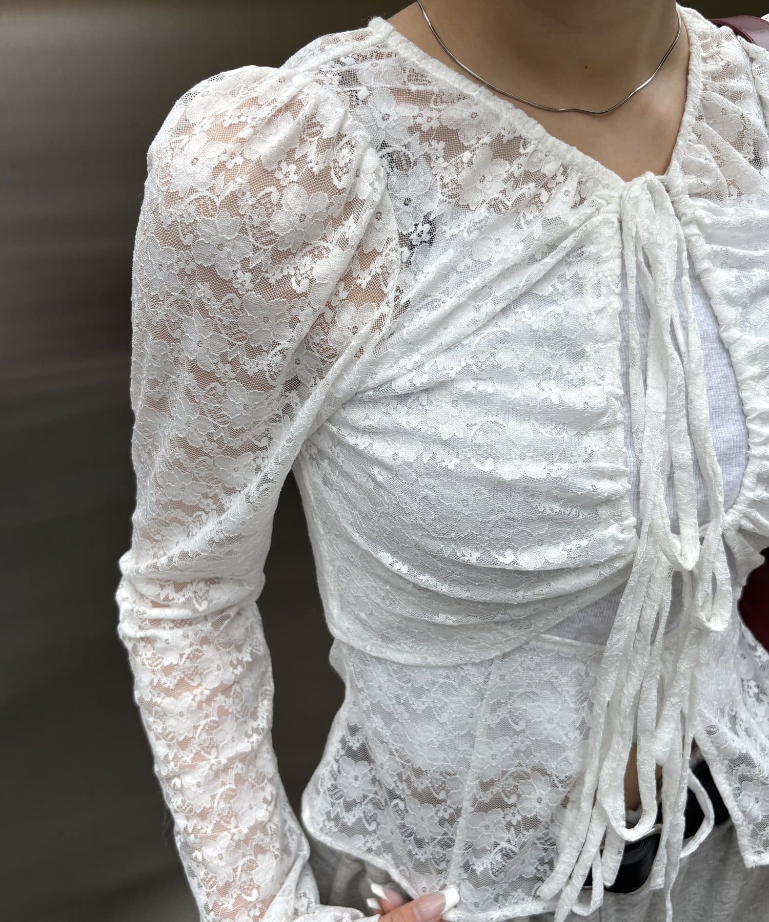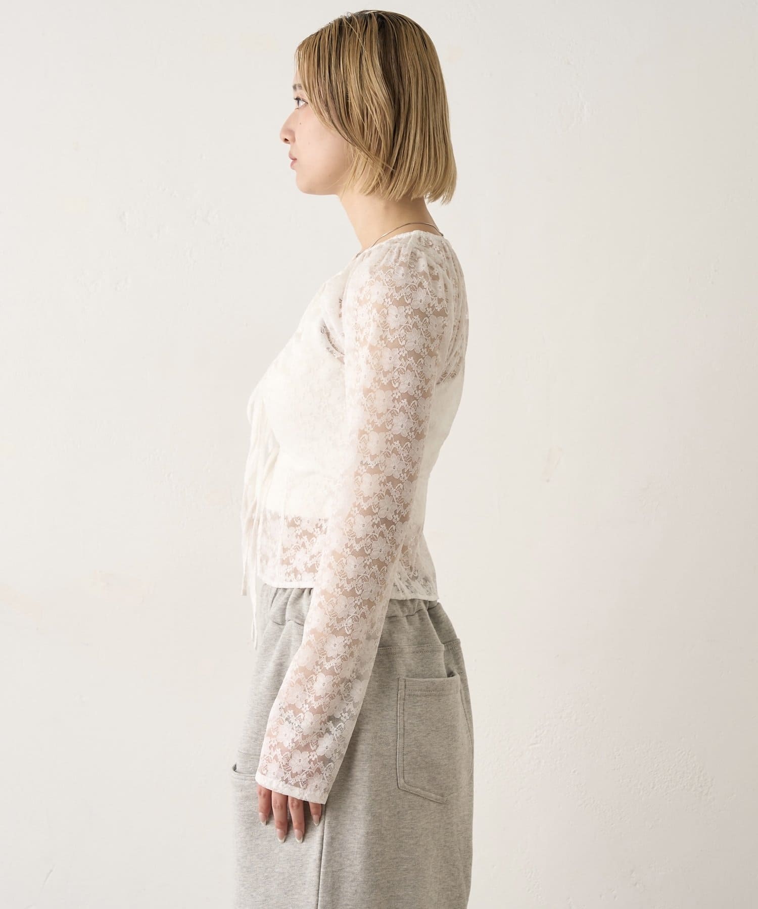 トレンドのレースとレオパード(ヒョウ柄)が仲間入りしたデザインブラウス。