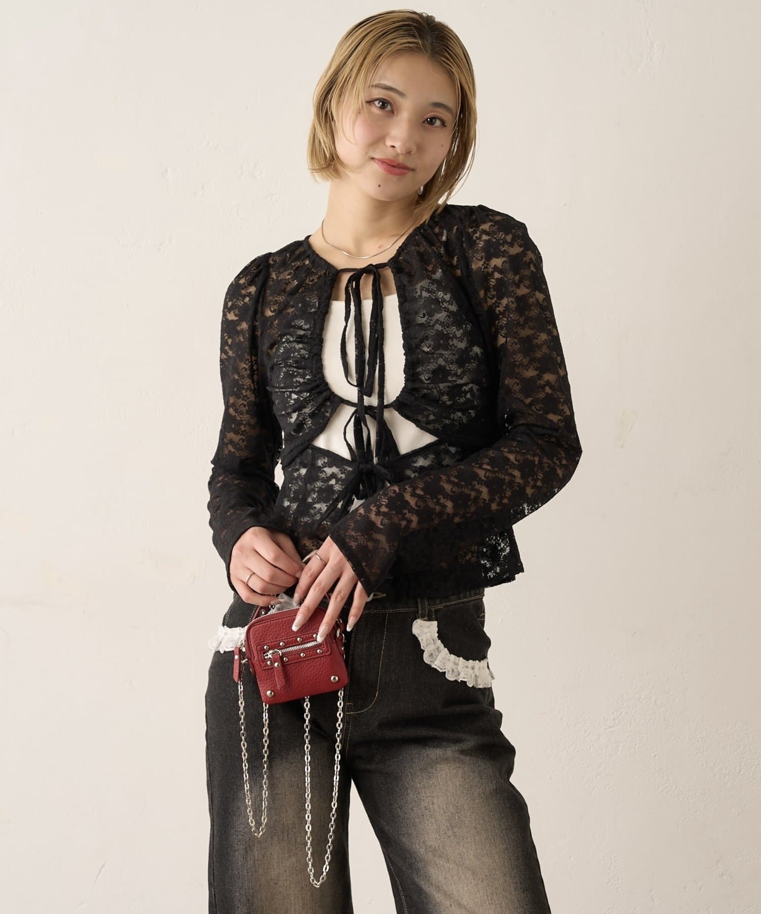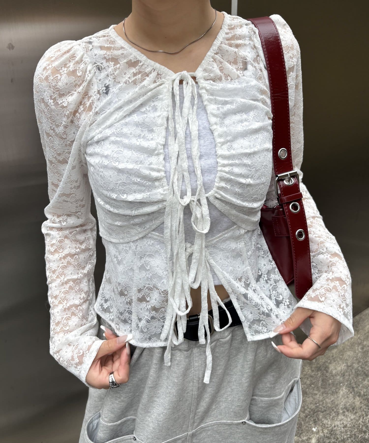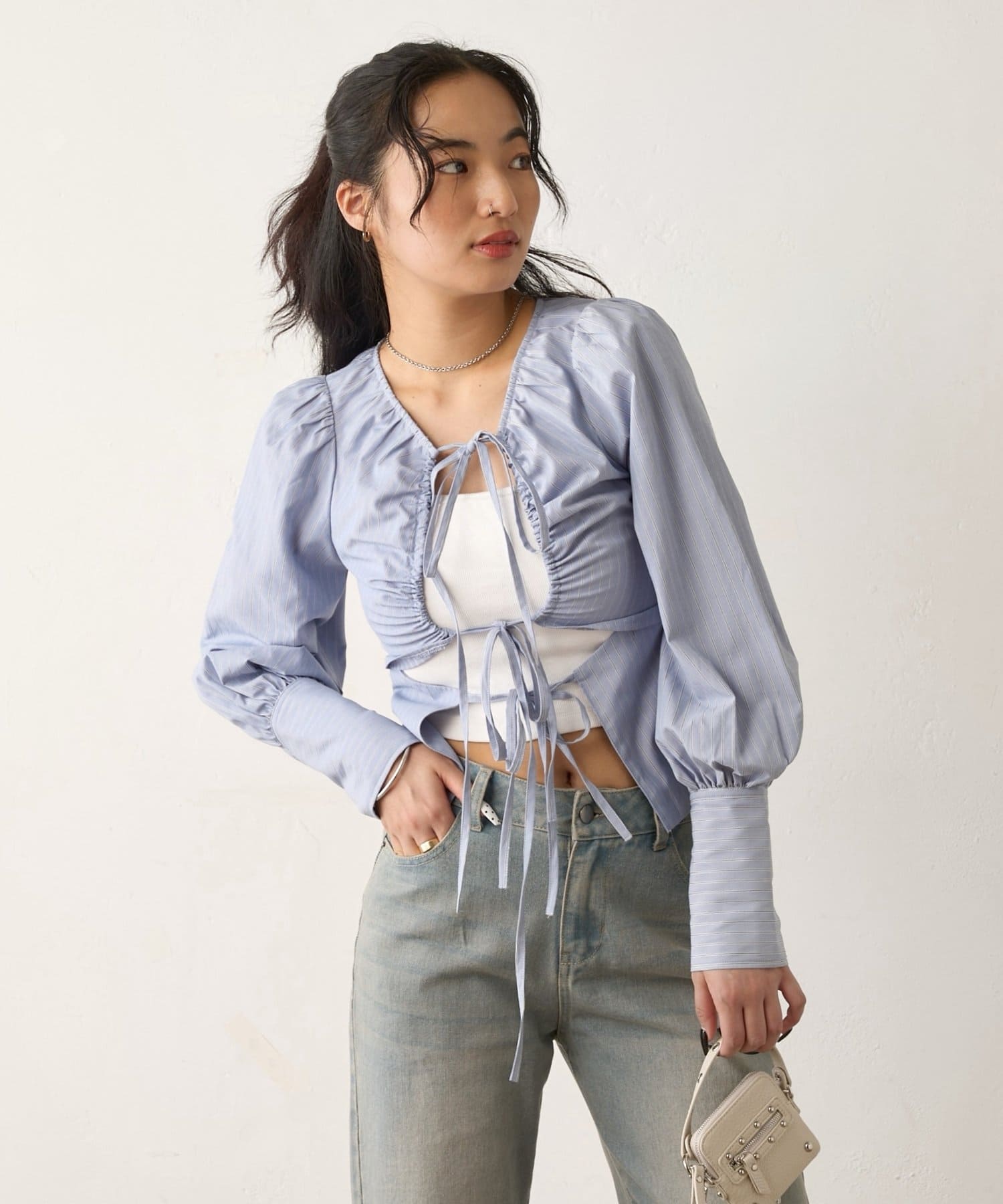 ・上の紐は首に巻いてチョーカー風にも出来るので、色んな着方を楽しめます。