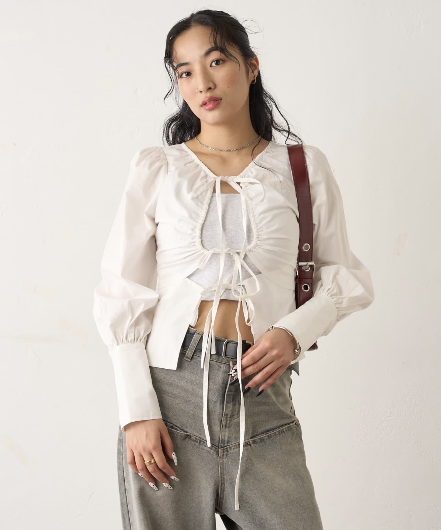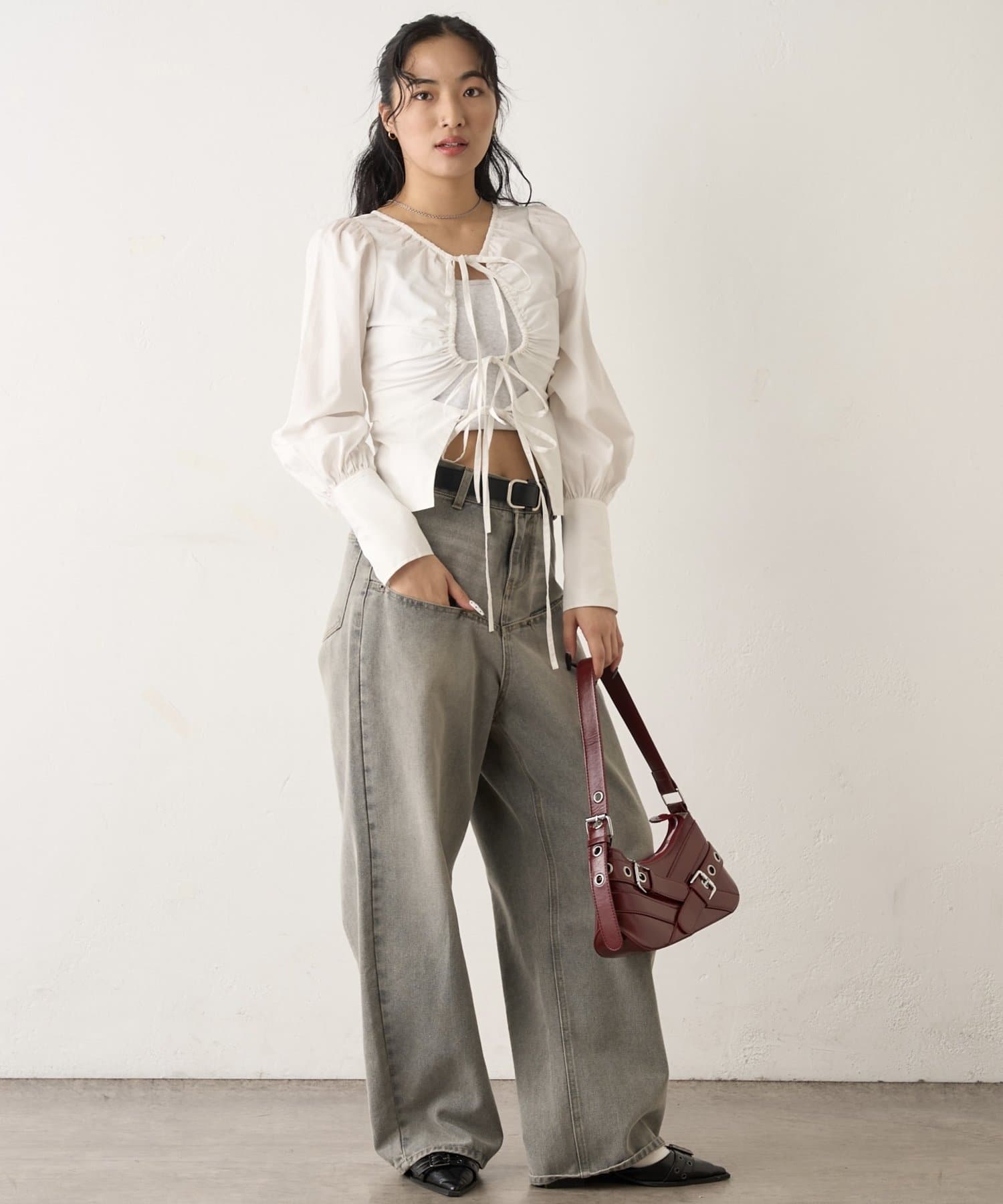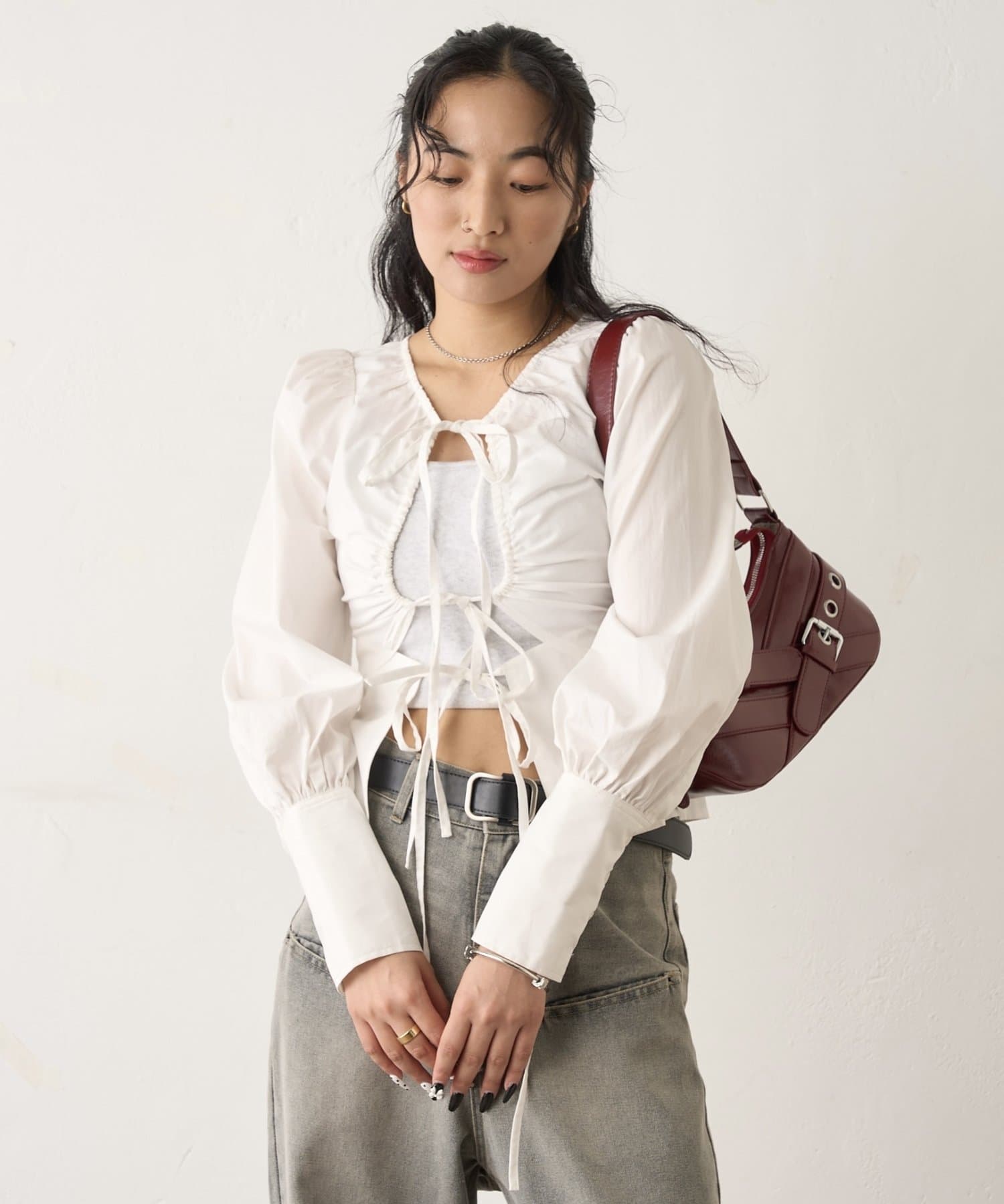 ・デザイン性の効いたブラウスなので、1枚で様になるアイテムです。
