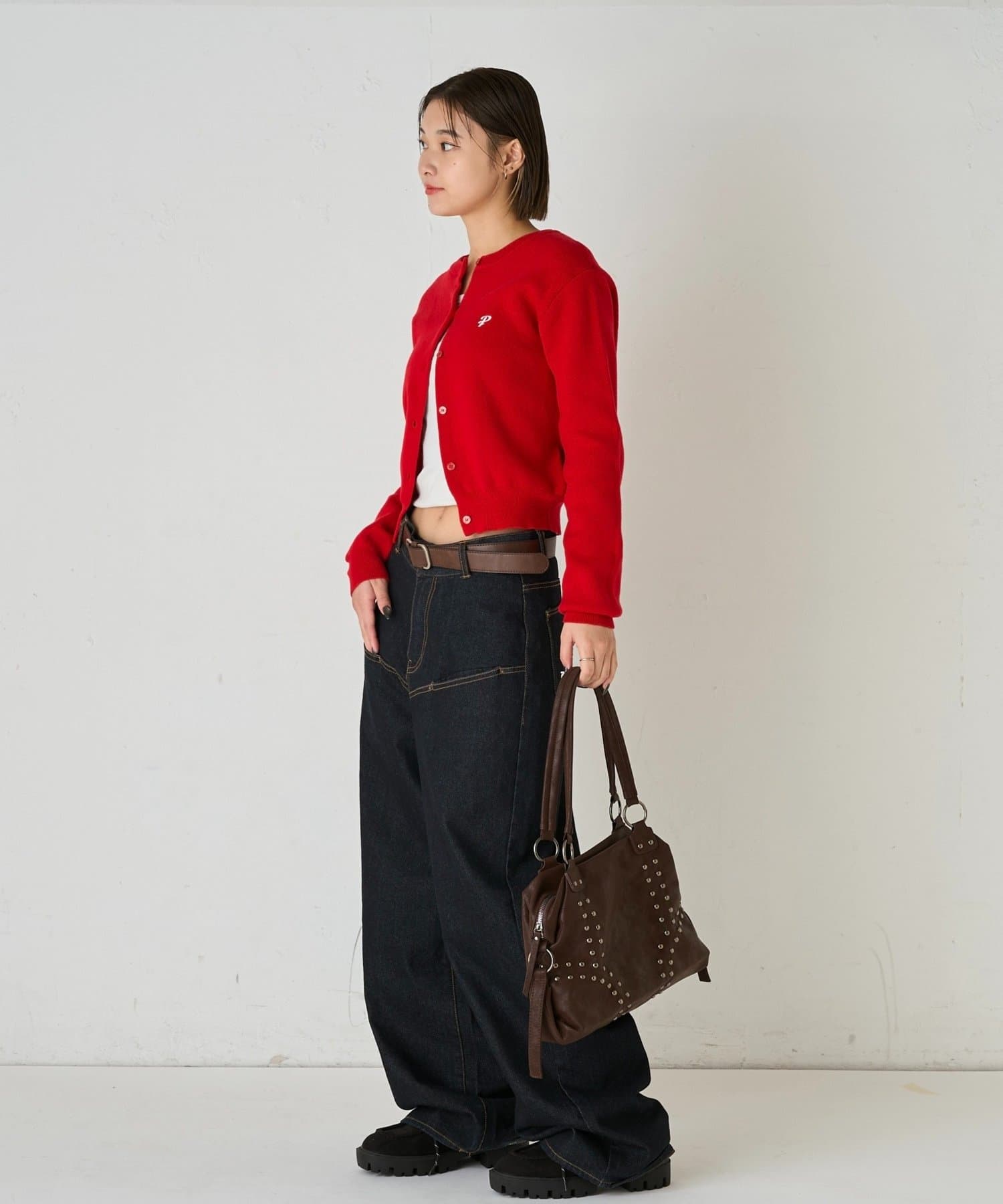 ・ワイドなシルエットなので、体のラインが出るコンパクトなトップスや、ミニ丈のアウター合わせがおすすめです。
