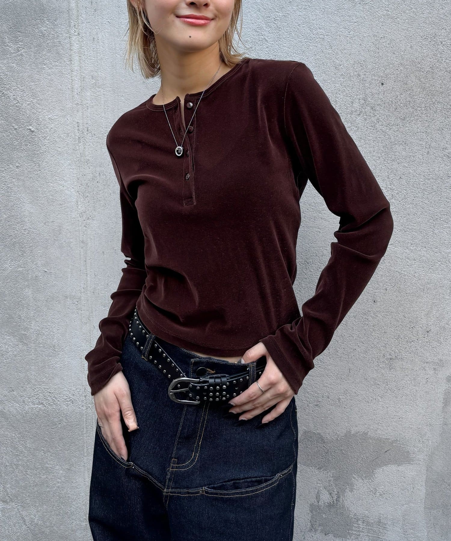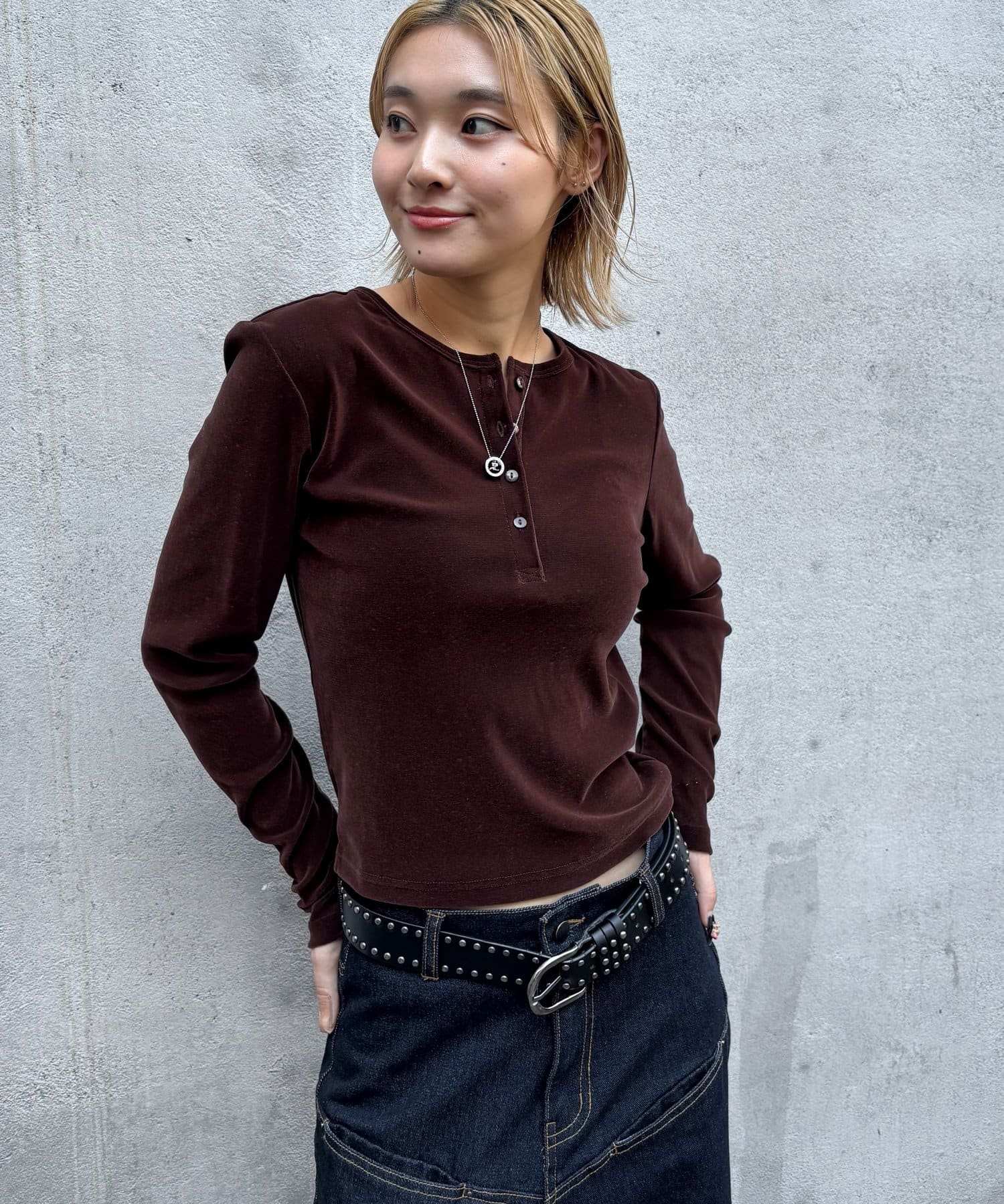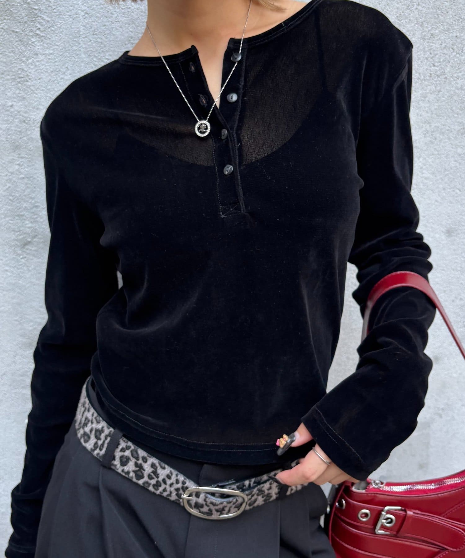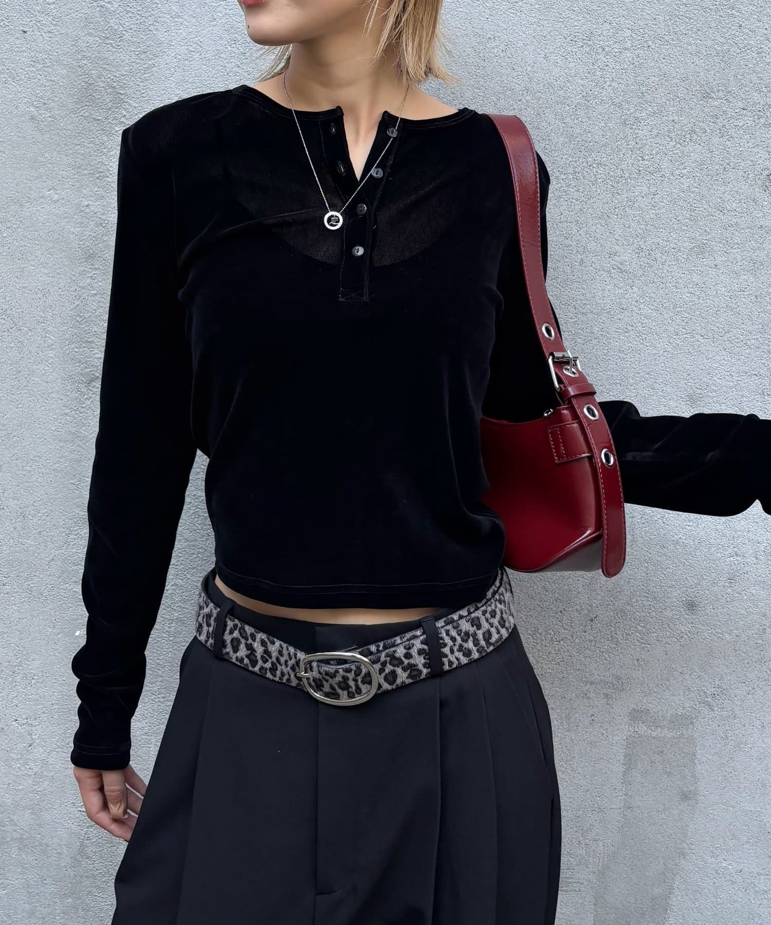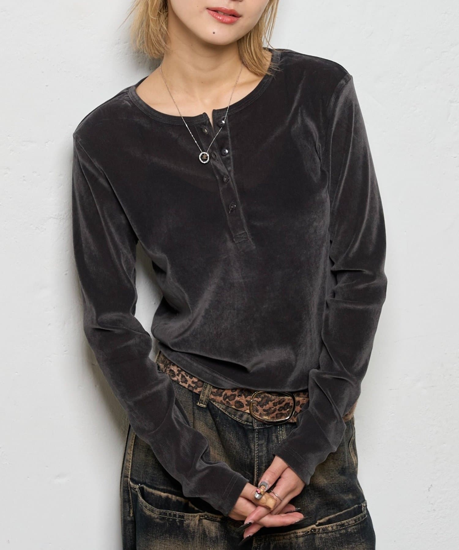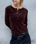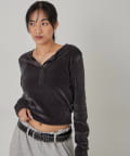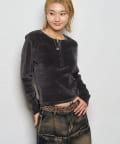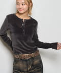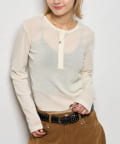 トレンドのヘンリーネックトップスを、フロッキーメッシュ素材でアップデート