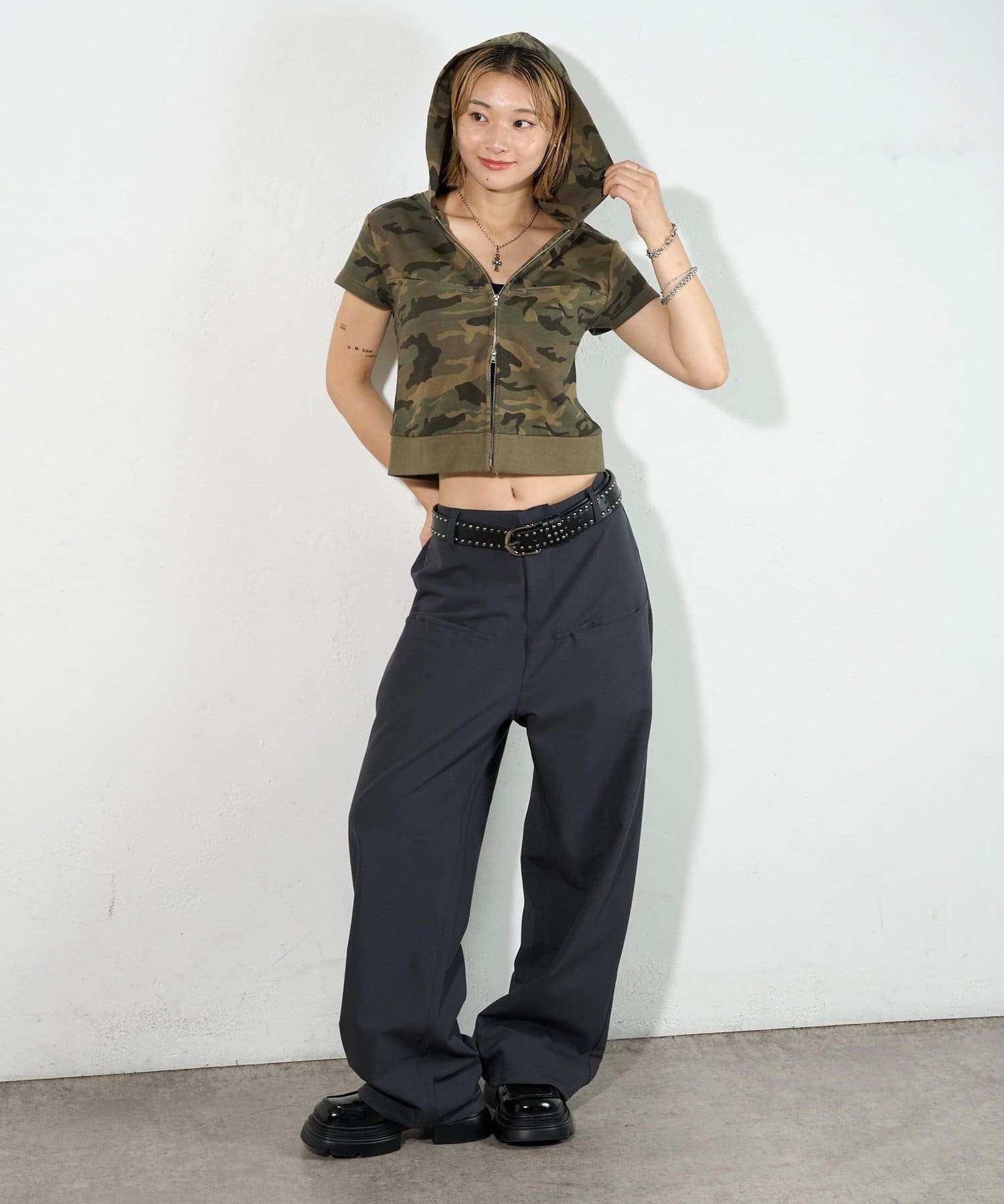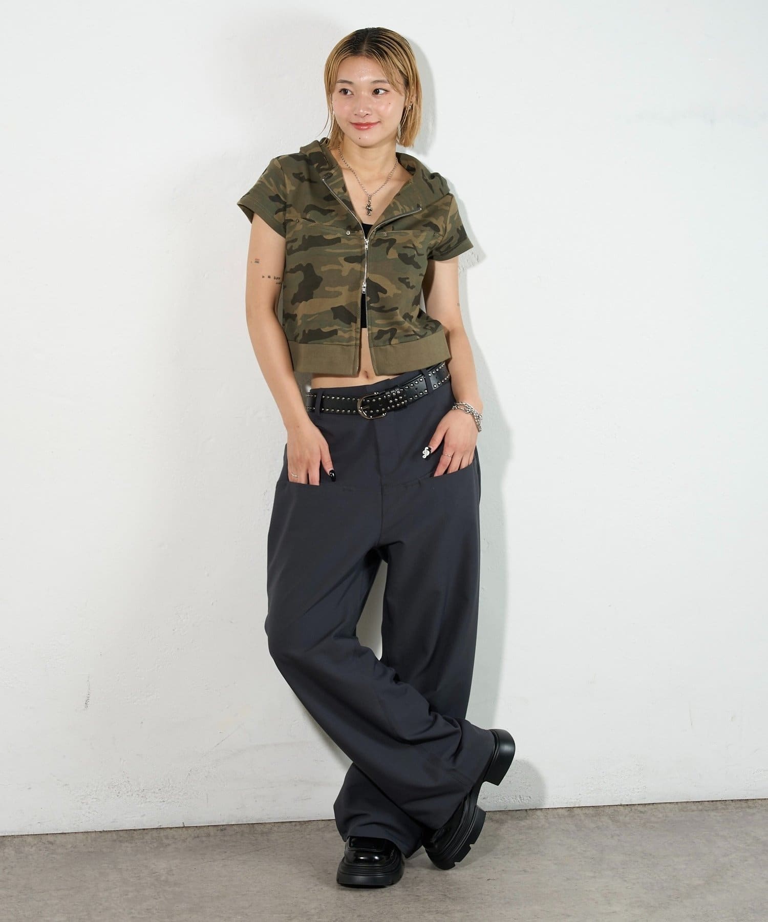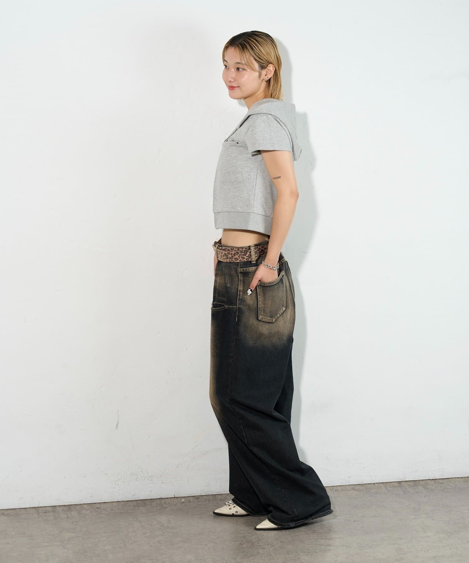 • 165cm/骨格ウェーブBT:アソート柄ベルトPT:スラッシュポケットブラストワイドデニム