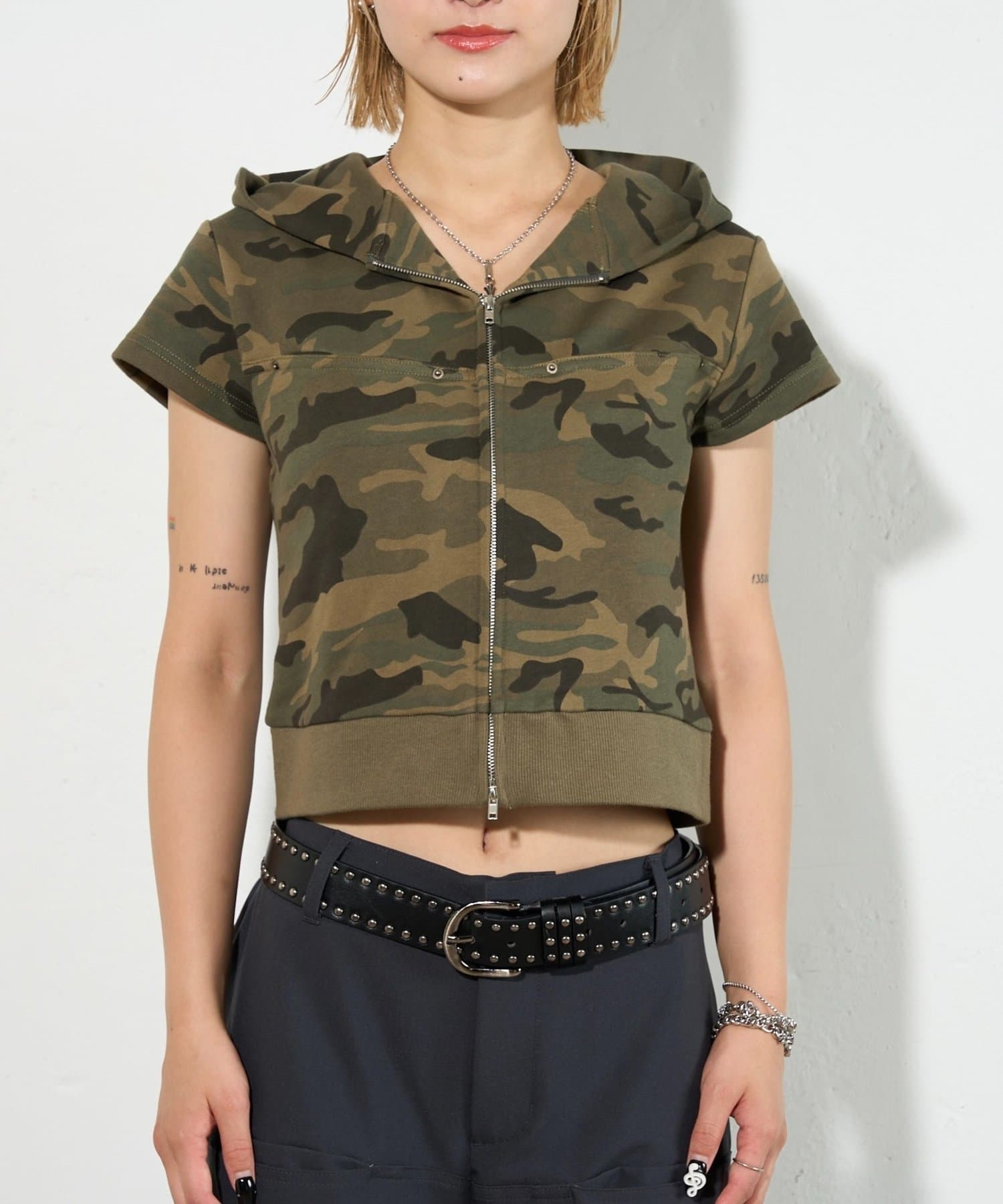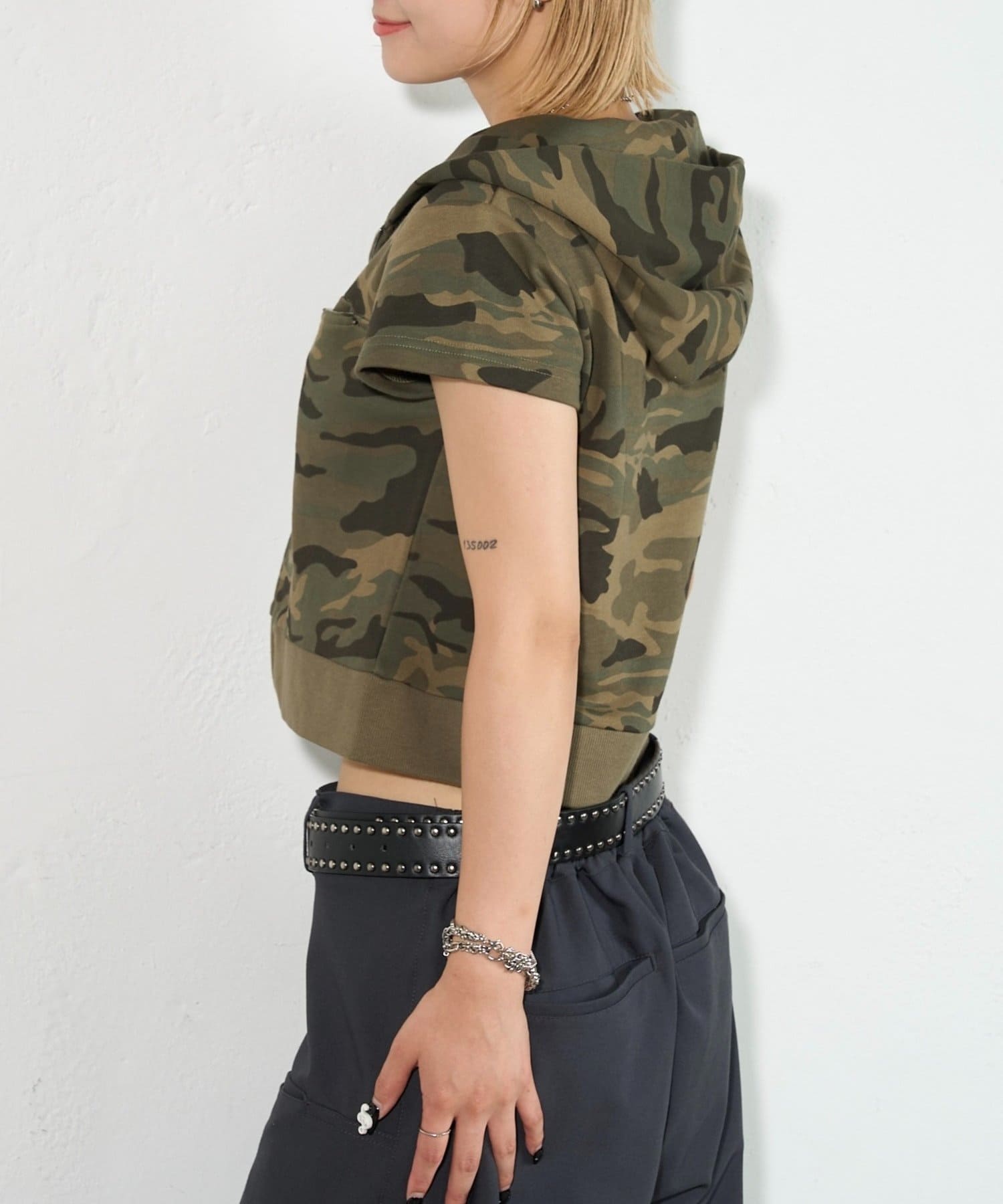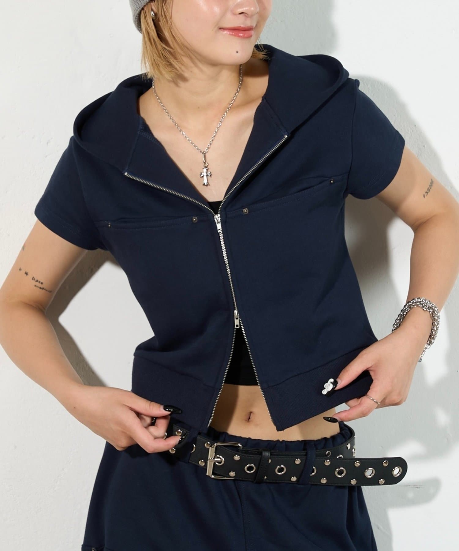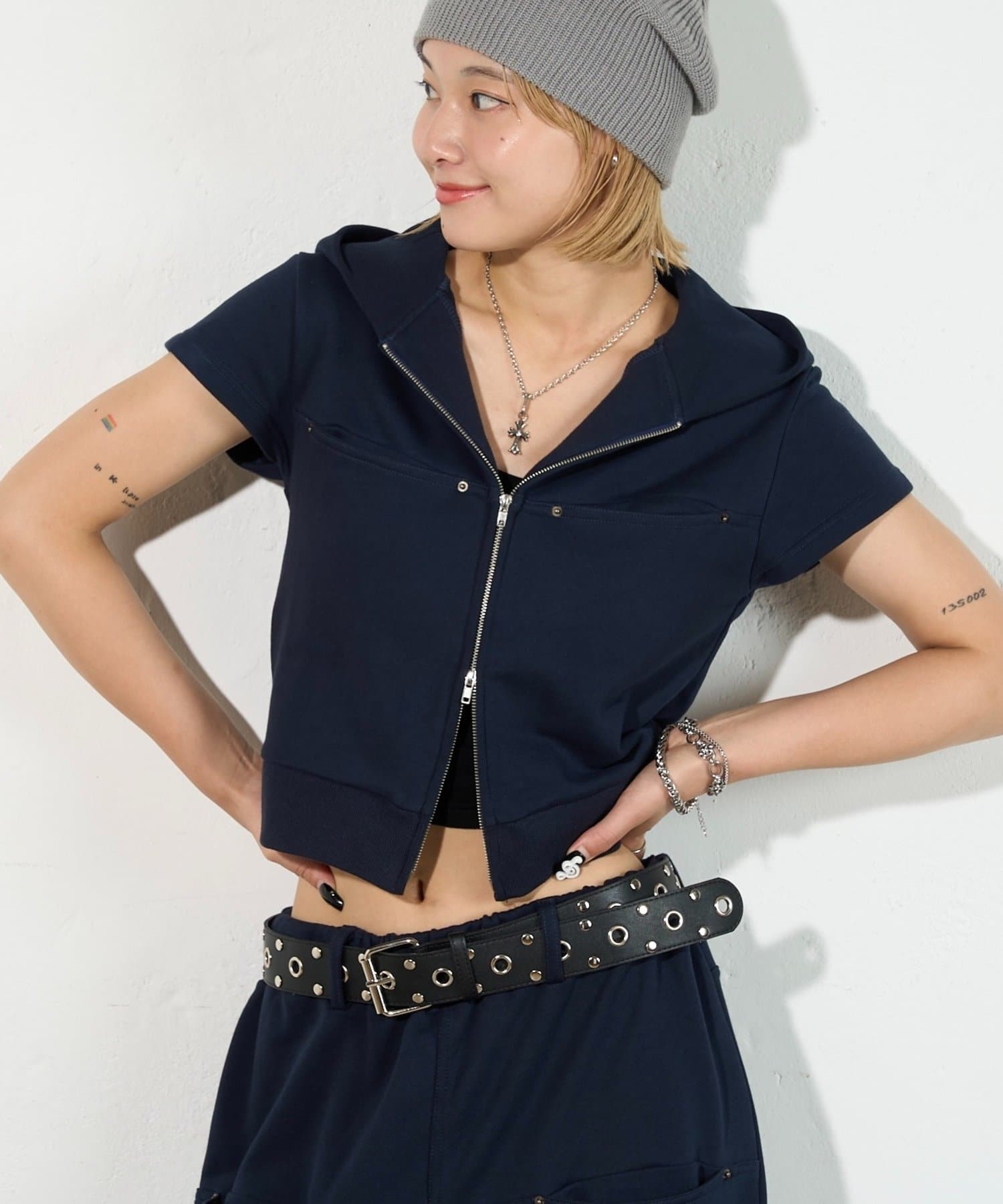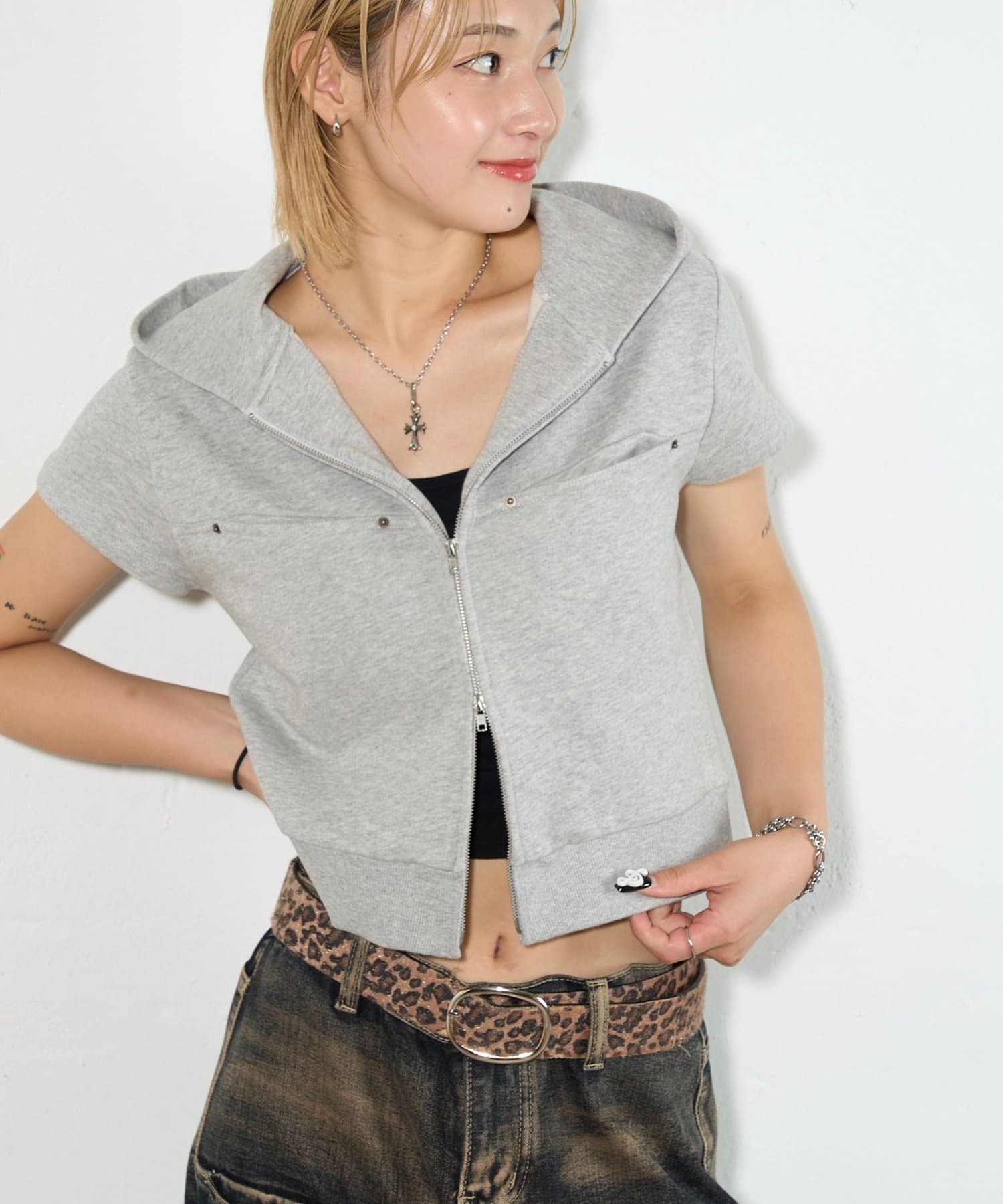 TOP > WHO’S WHO gallery > レディース > トップス > パーカー/アノラック > 【セットアップ可能】スラッシュポケットコンパクト半袖パーカー
