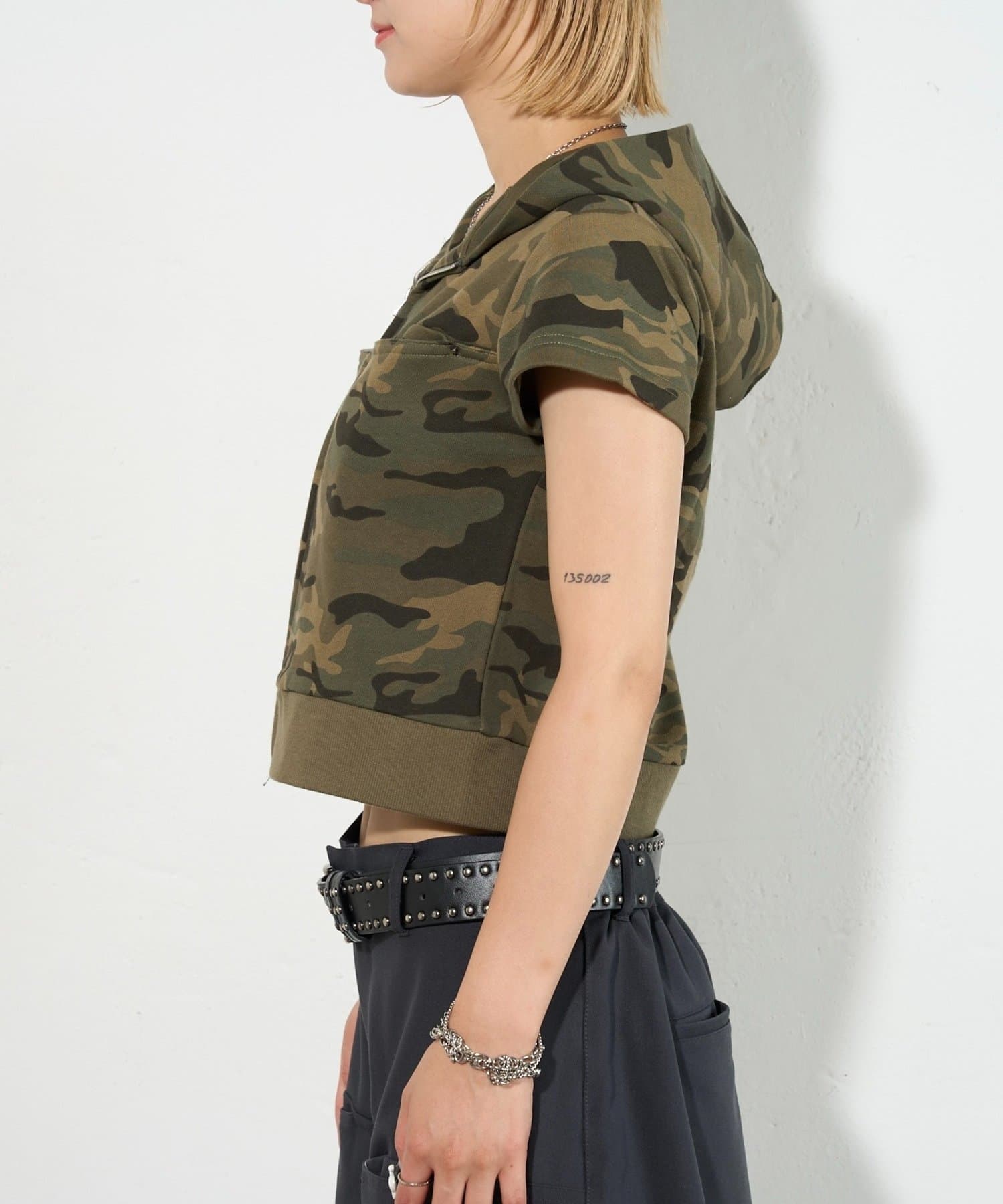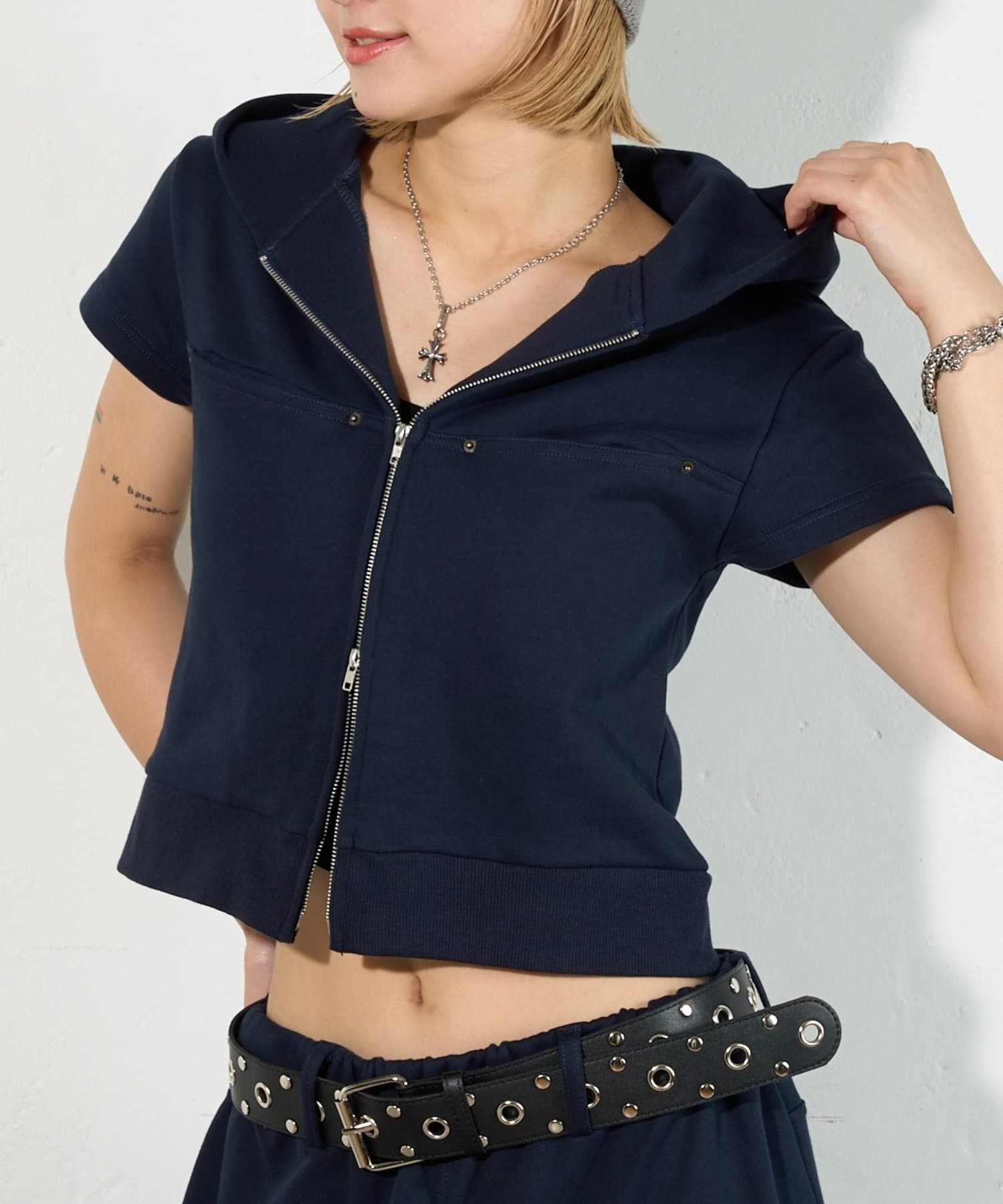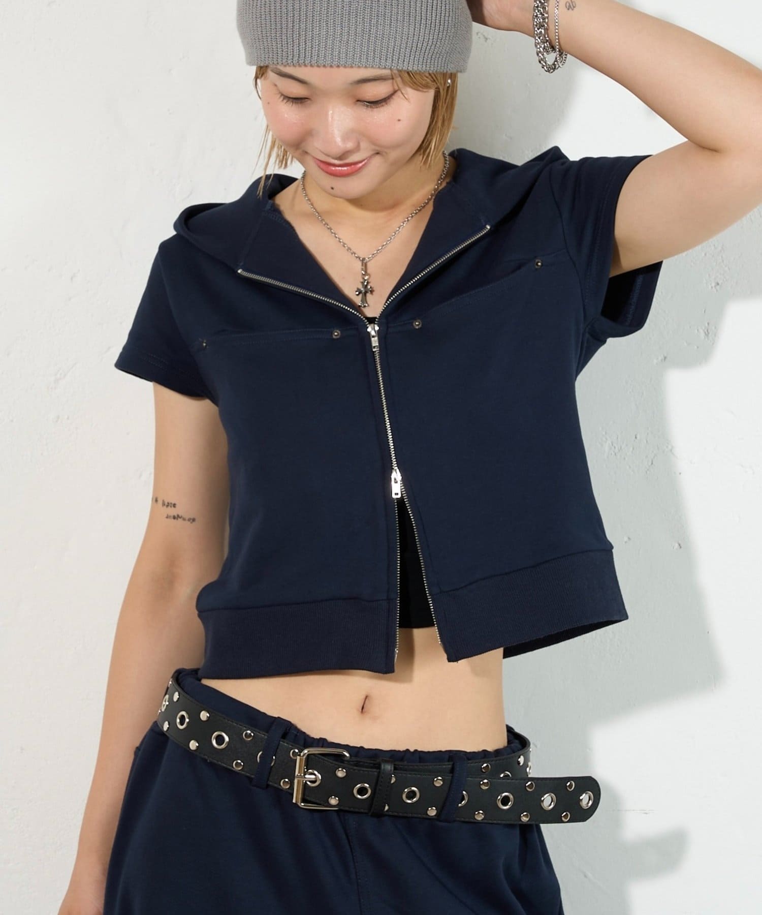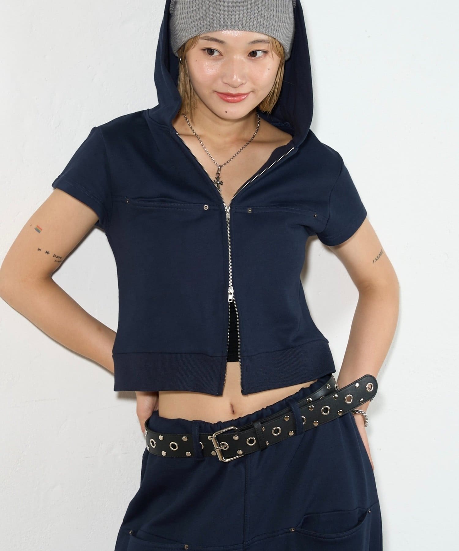 【セットアップ可能】スラッシュポケットコンパクト半袖パーカー