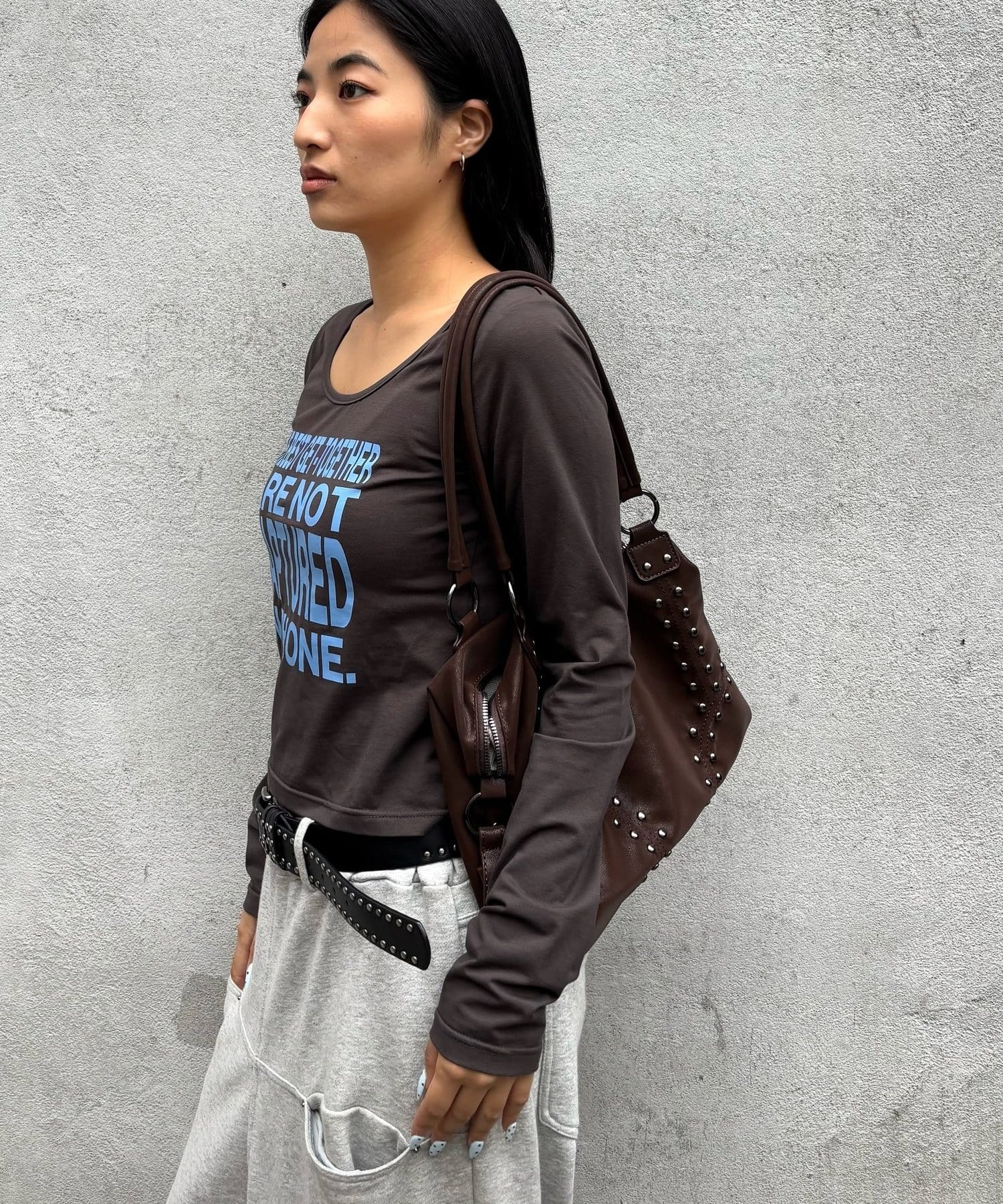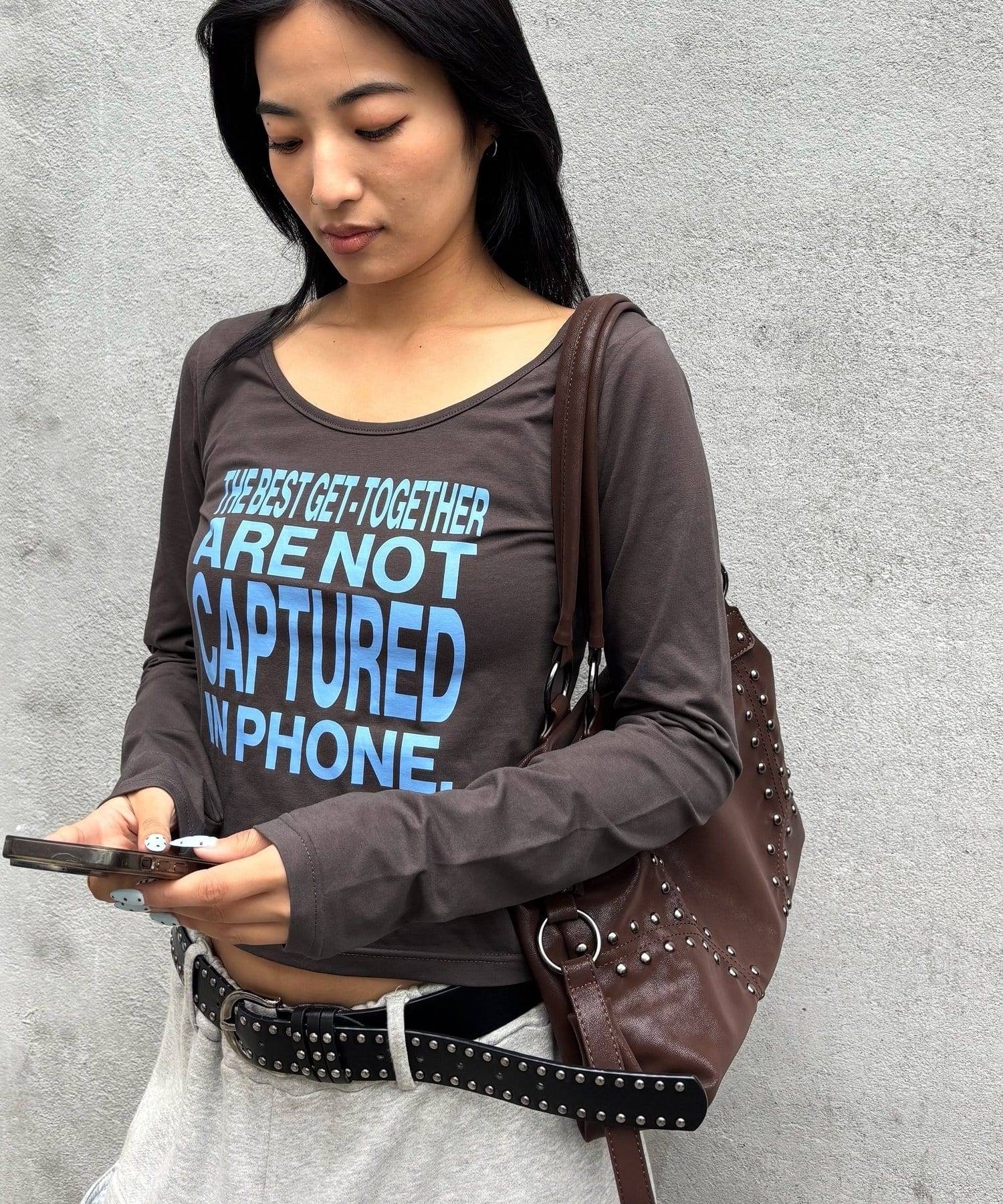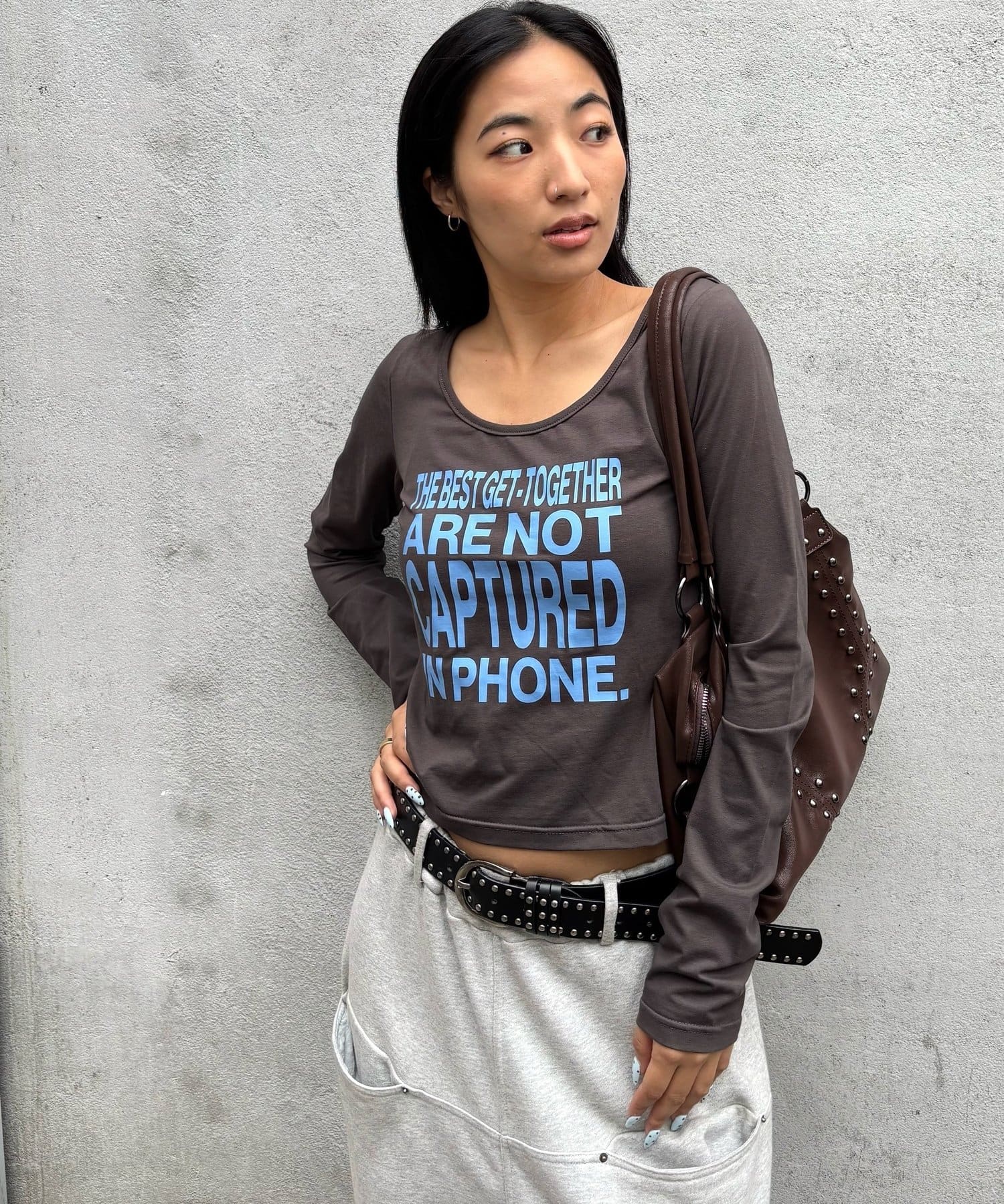 ・スタイリッシュなメッセージプリントが目を引く長袖トップス。
