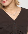 ・首元にさりげないアクセントをプラスし、華やかな印象に。