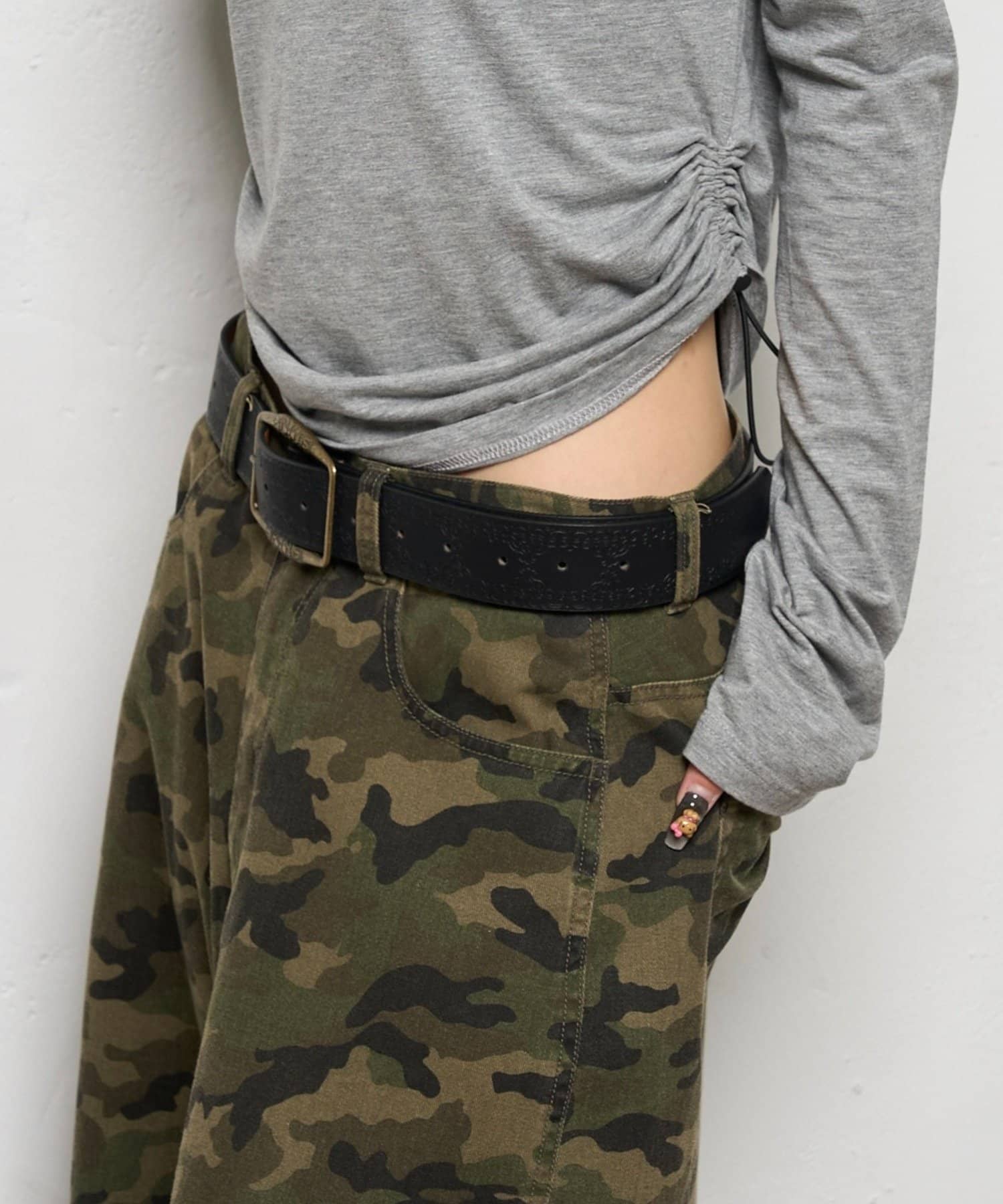・シンプルながらも存在感のある型押しが、着こなしのアクセントに。