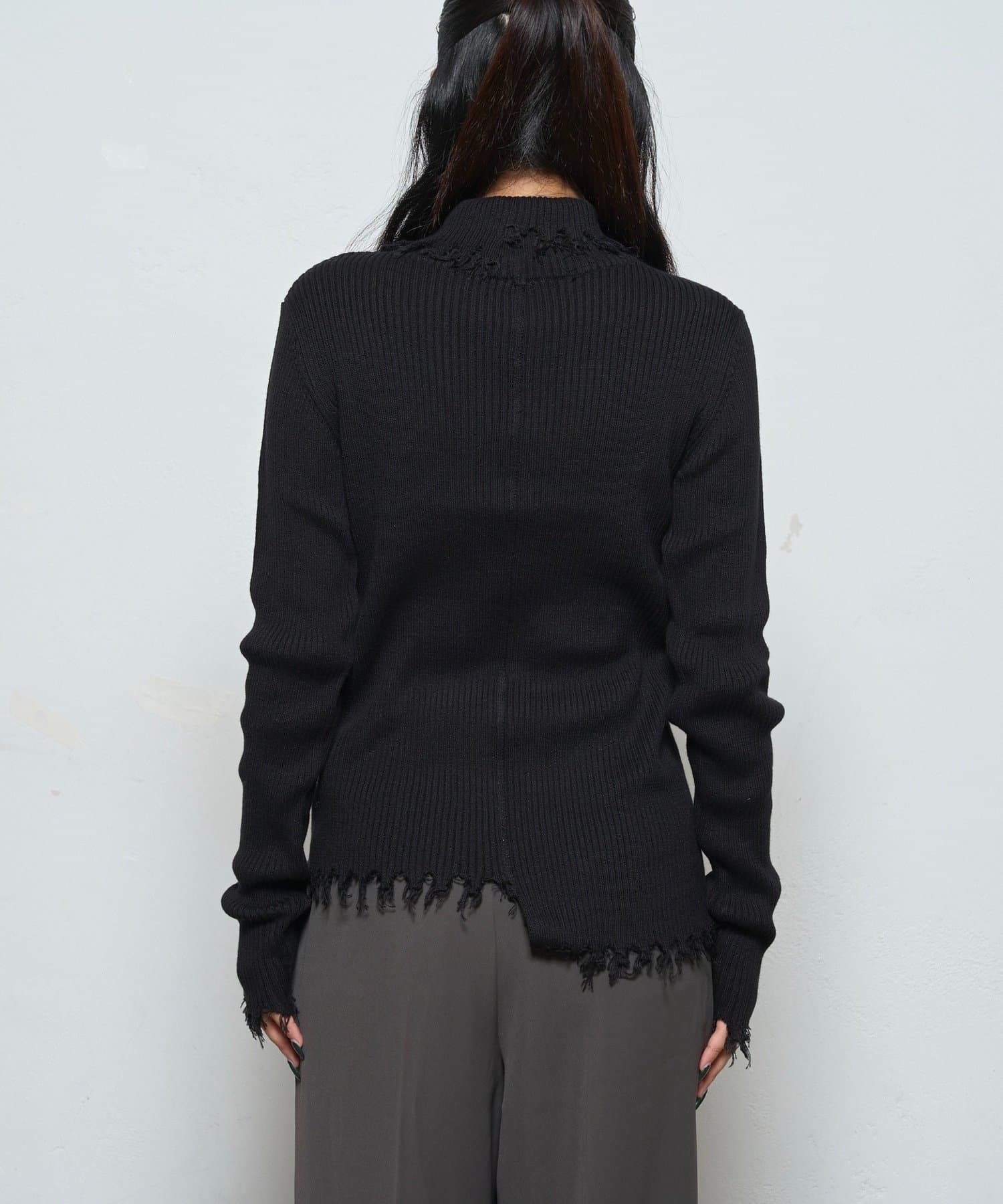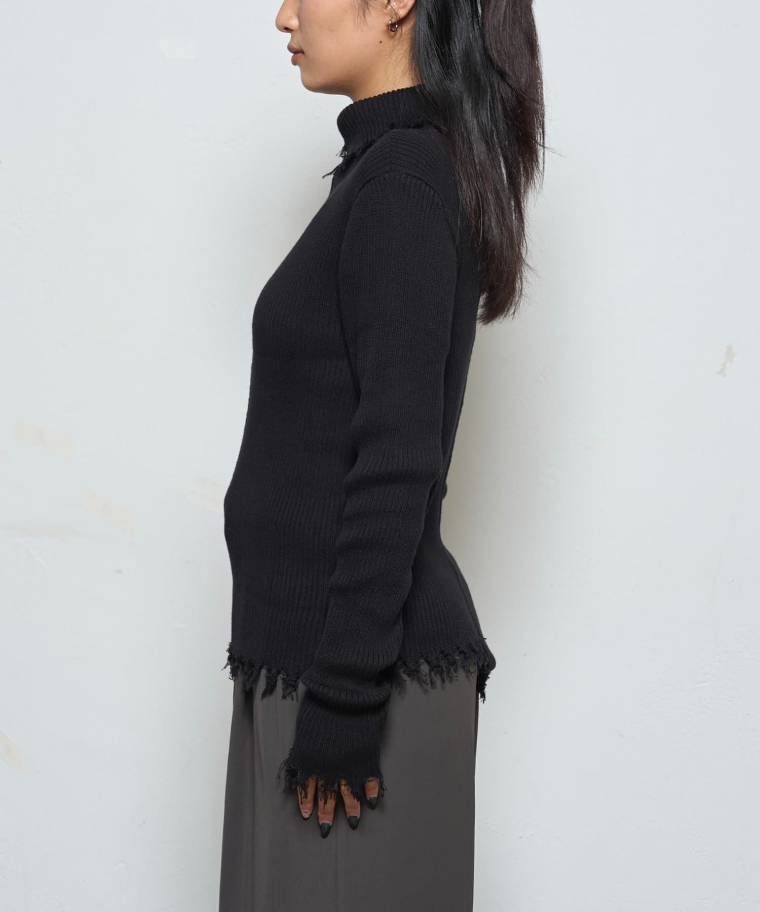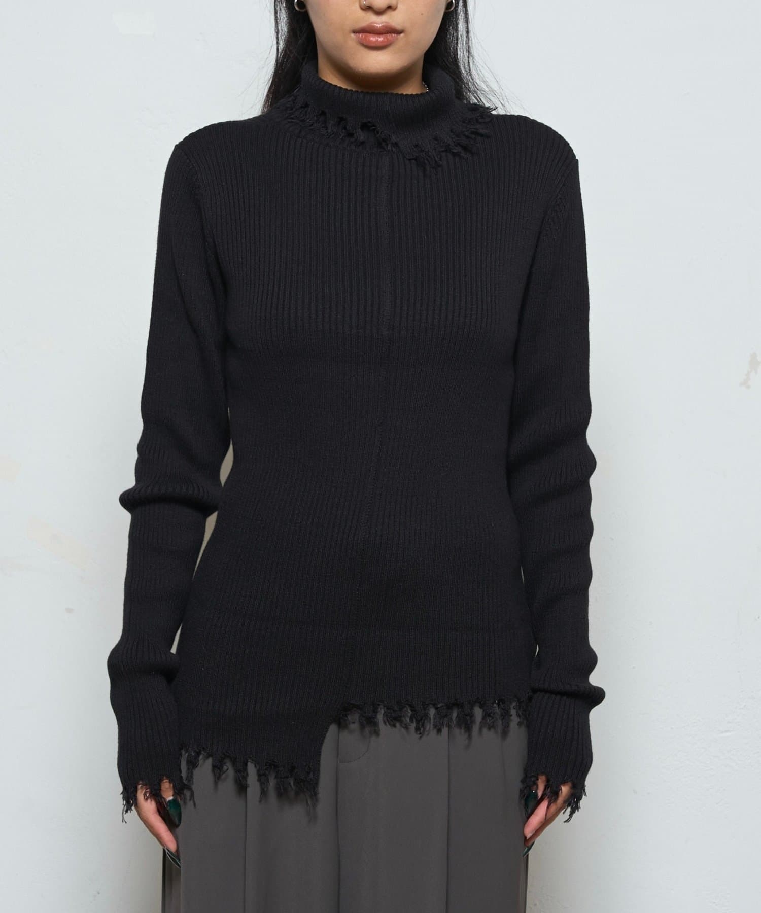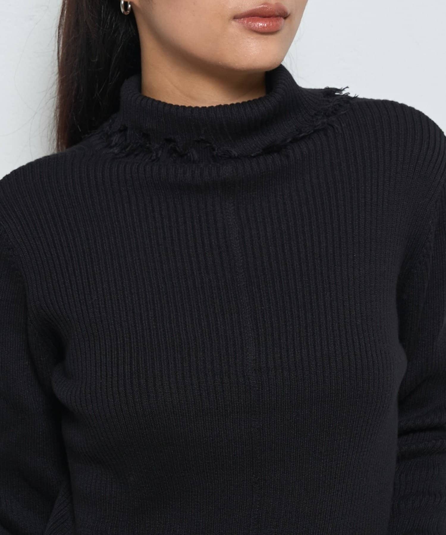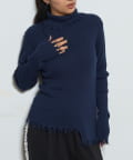 【WEB限定】エッジの効いたデザインが魅力!ダメージスライドリブニット