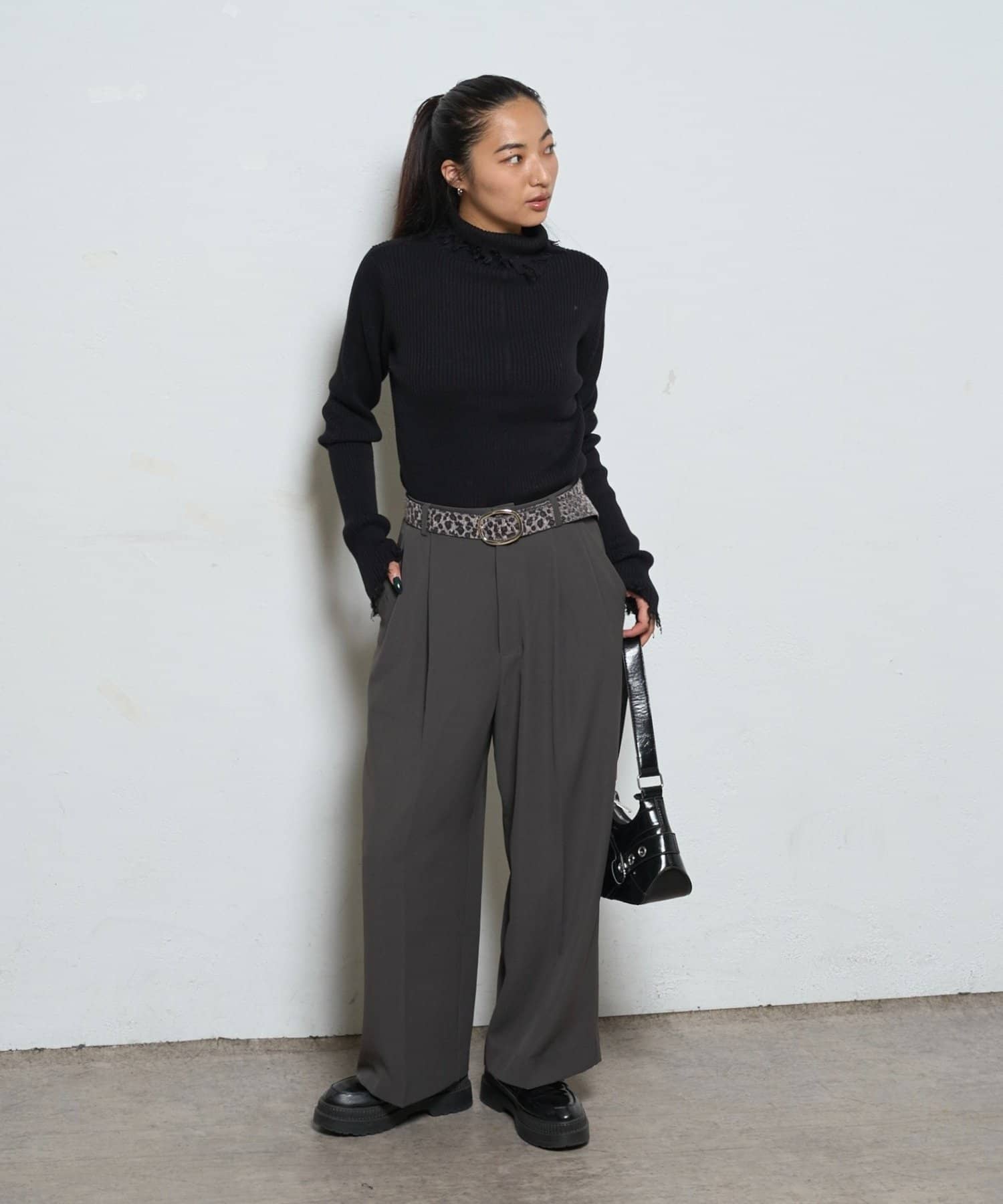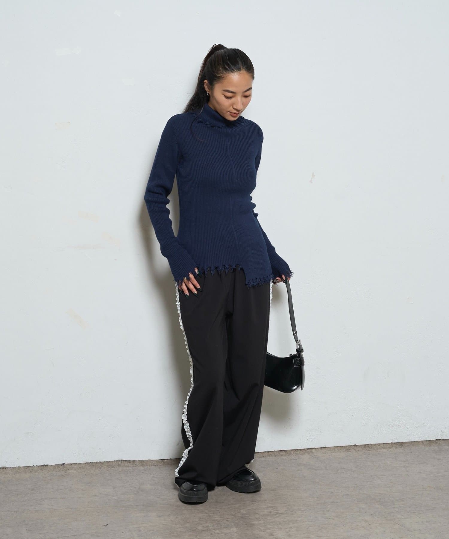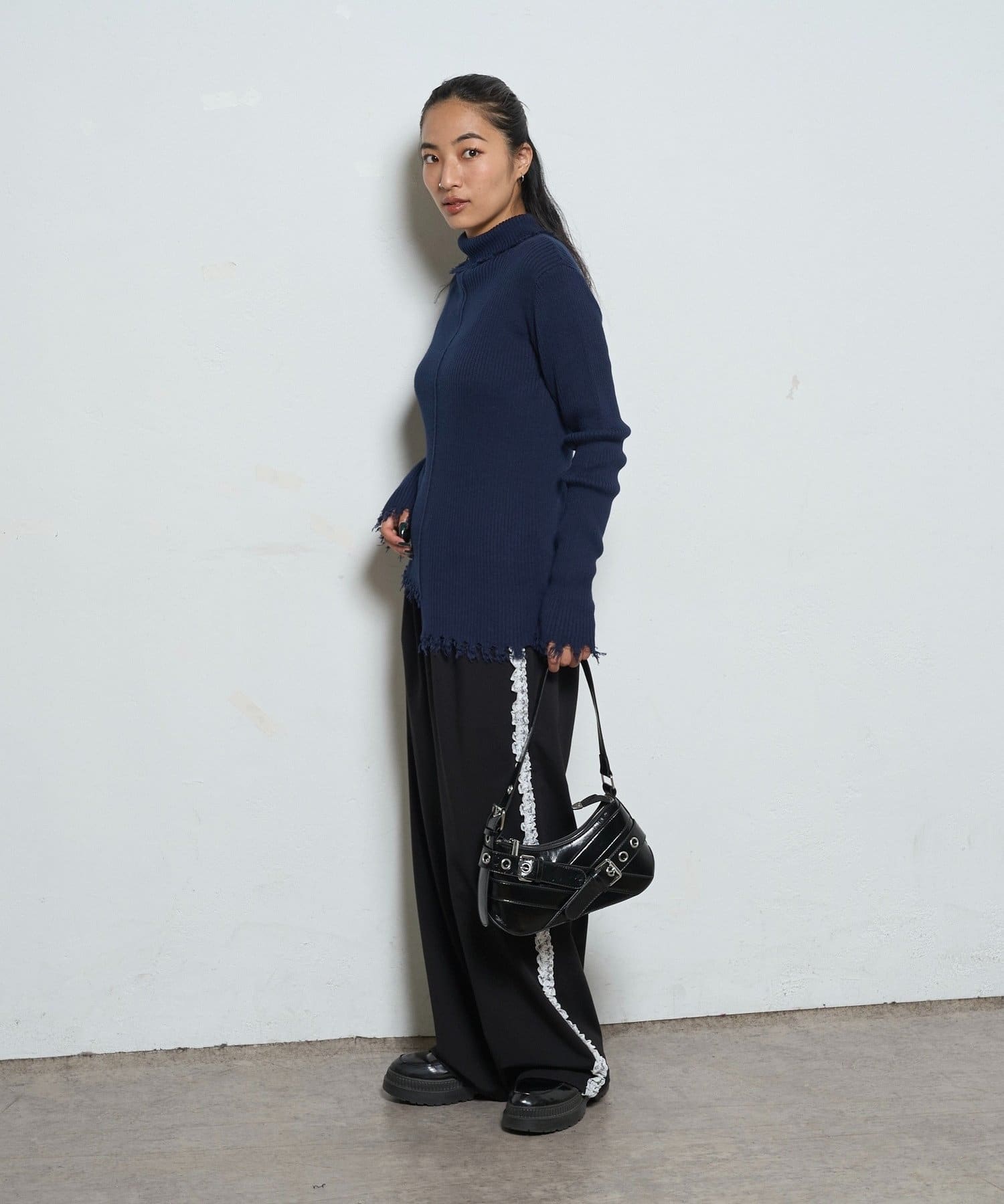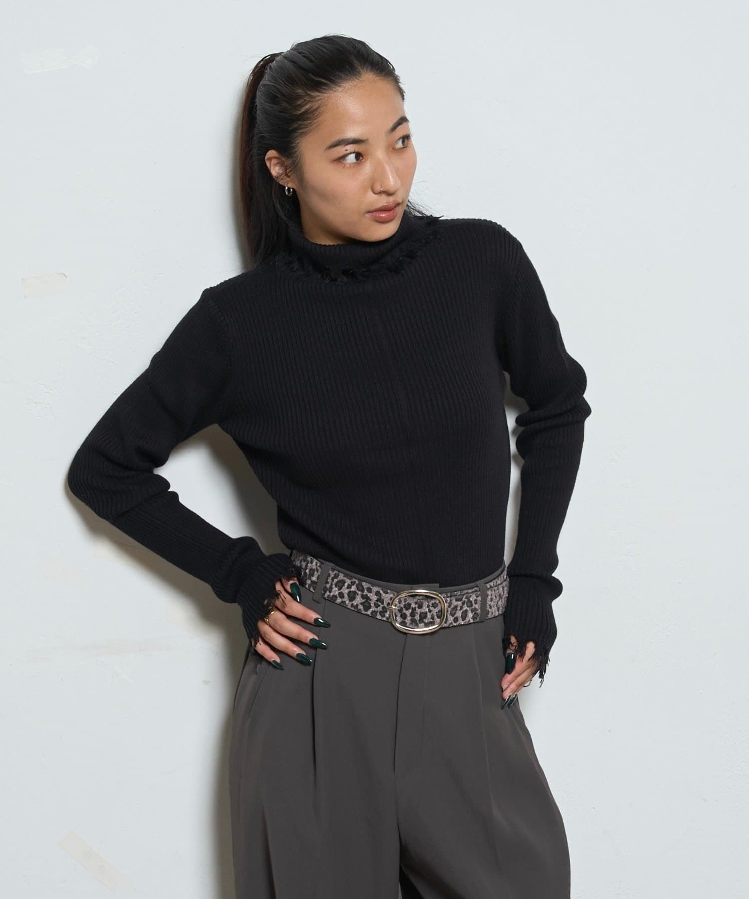 【WEB限定】エッジの効いたデザインが魅力!ダメージスライドリブニット