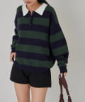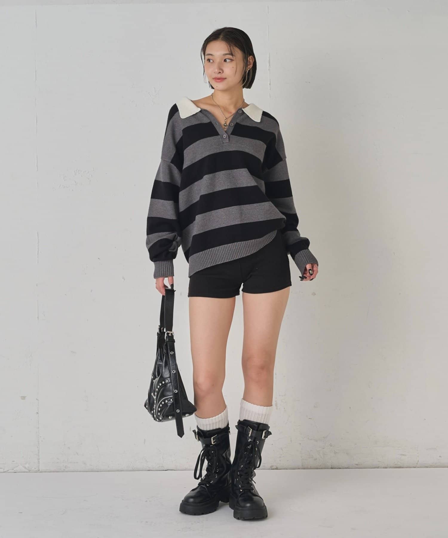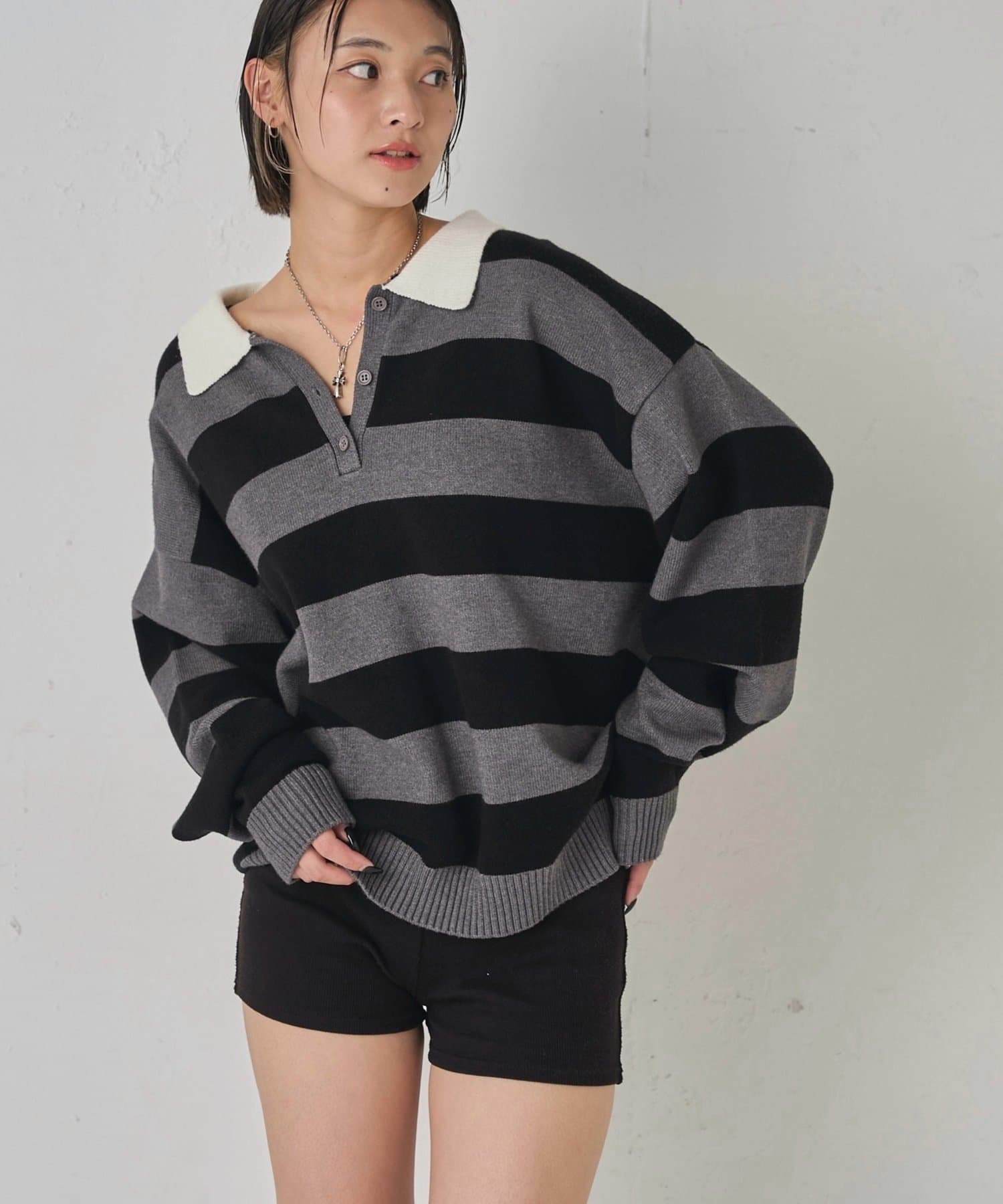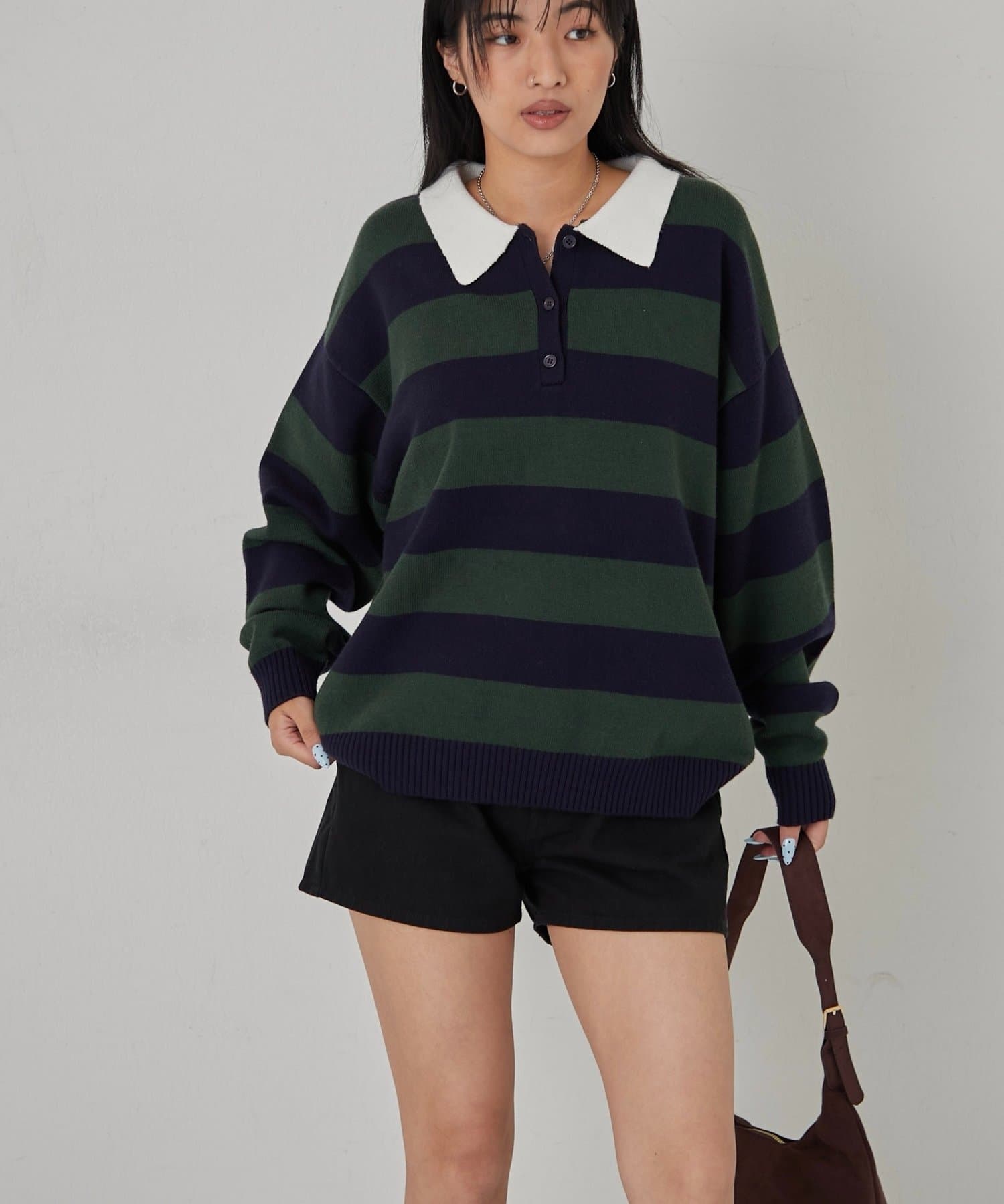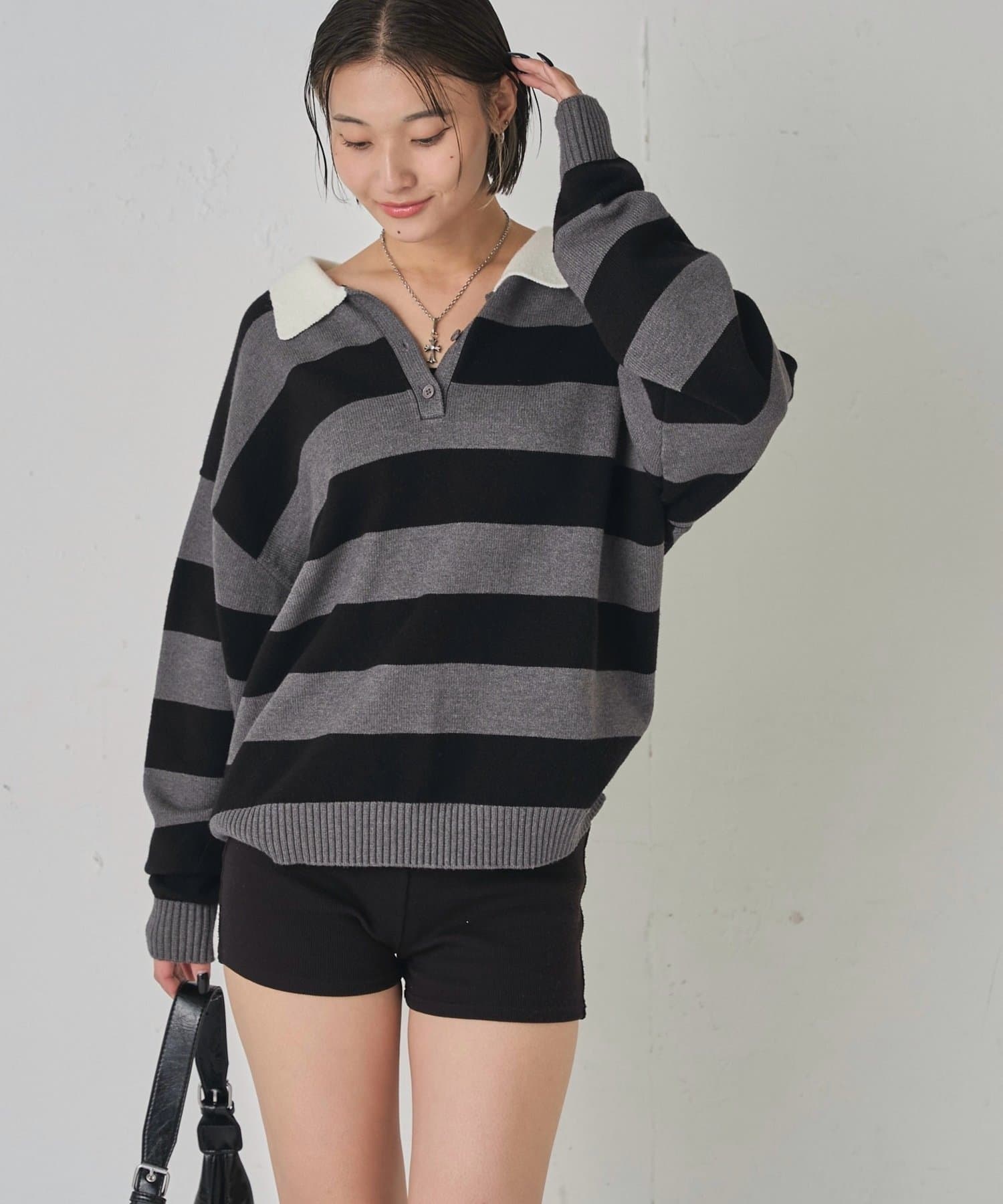 ・カジュアルながらも、ニット素材で上品さをプラスしたトップス。