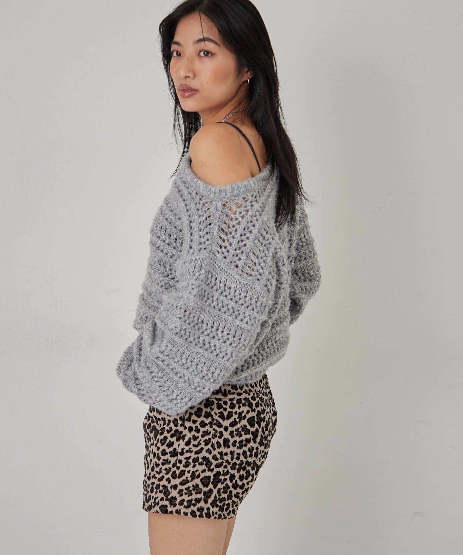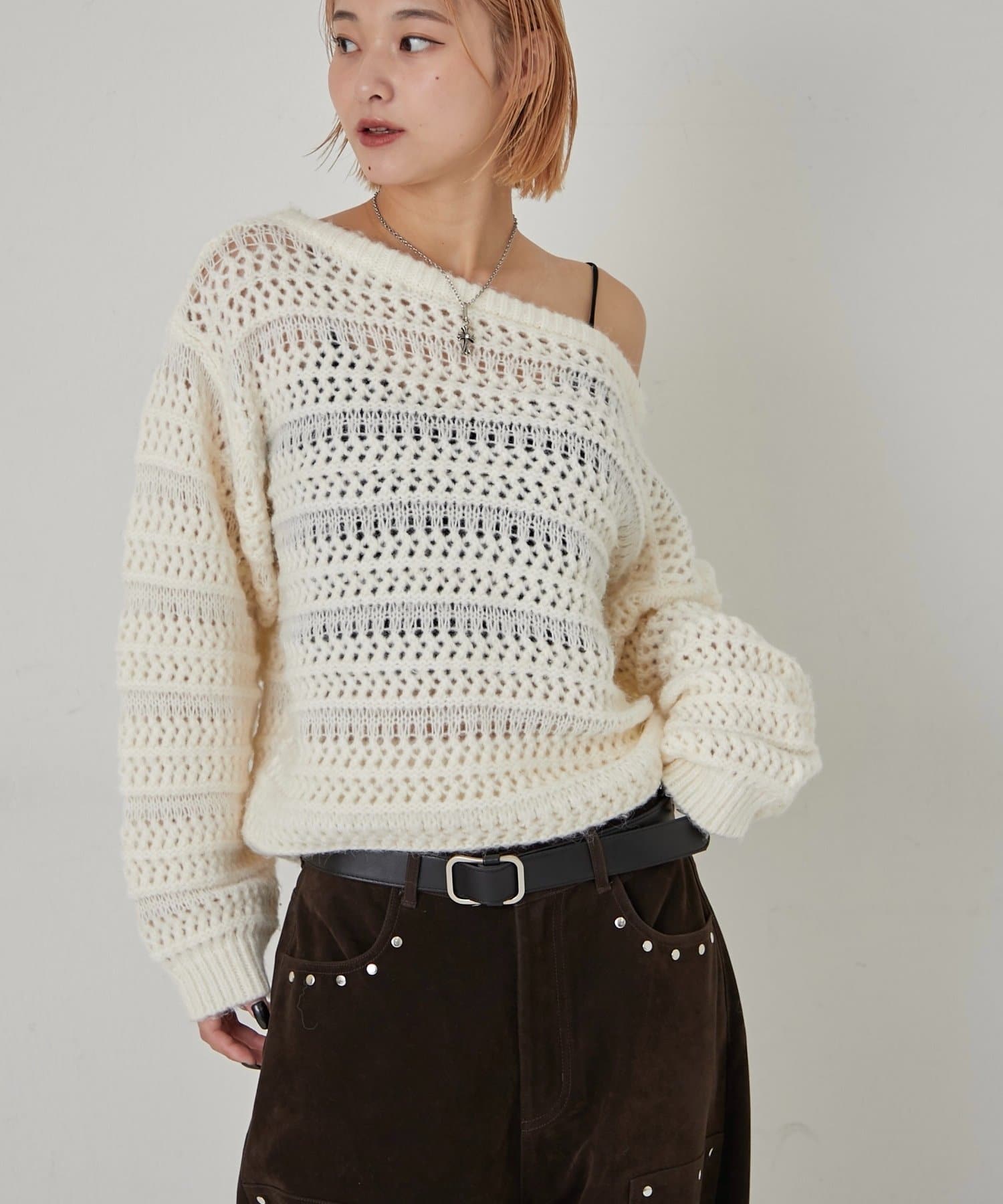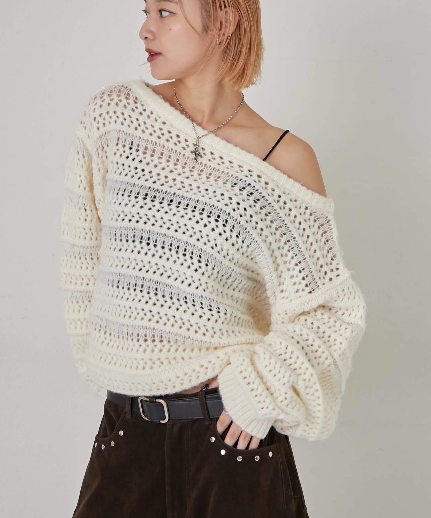 【WHO'S WHO gallery】メッシュボーダーオフショル2wayニット