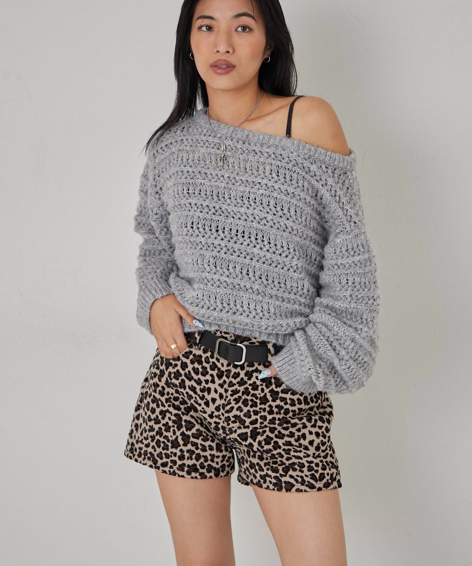・オフショルダーとしても、そのままでも着られる2way仕様で、着こなしの幅が広がるニットトップス。