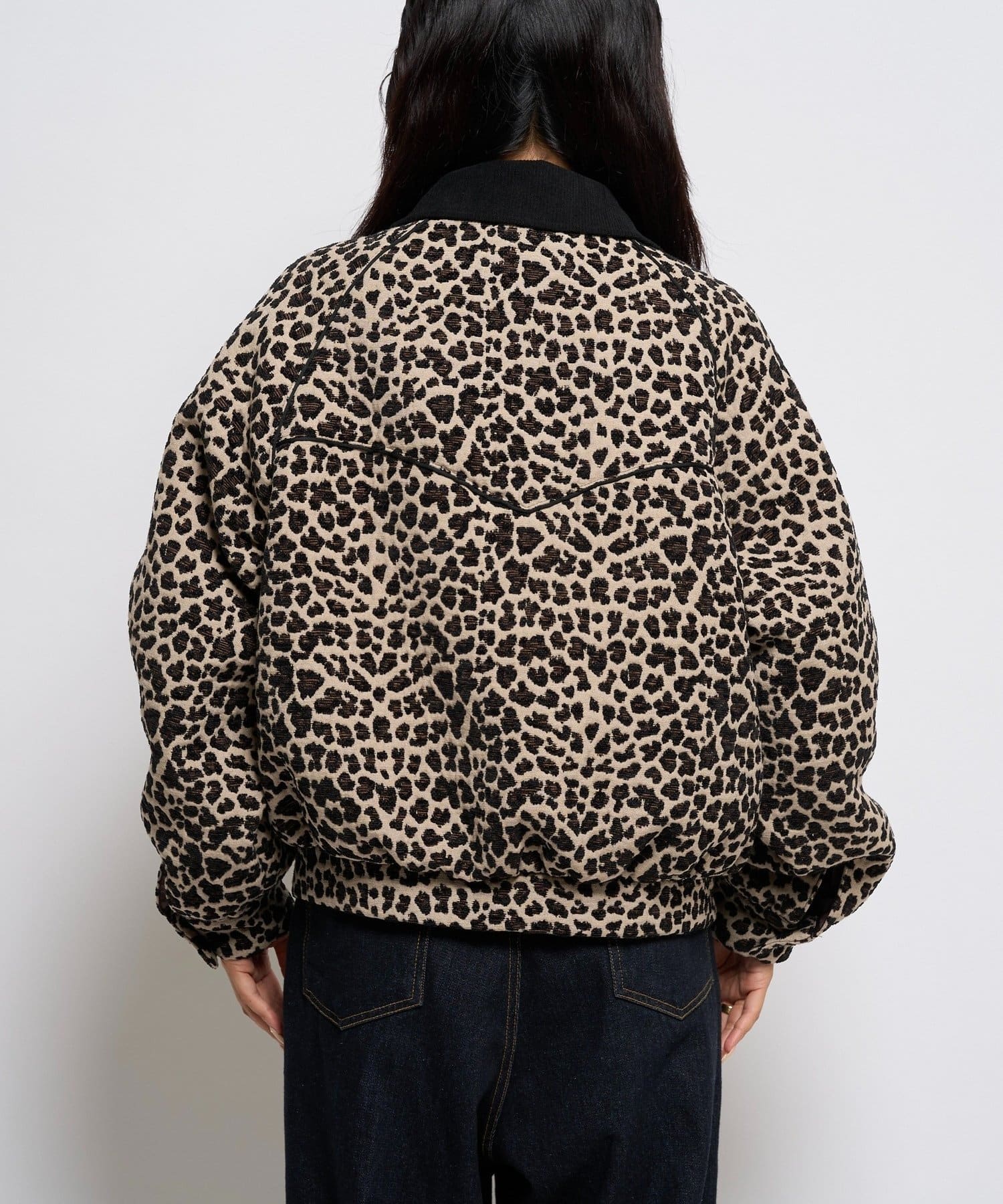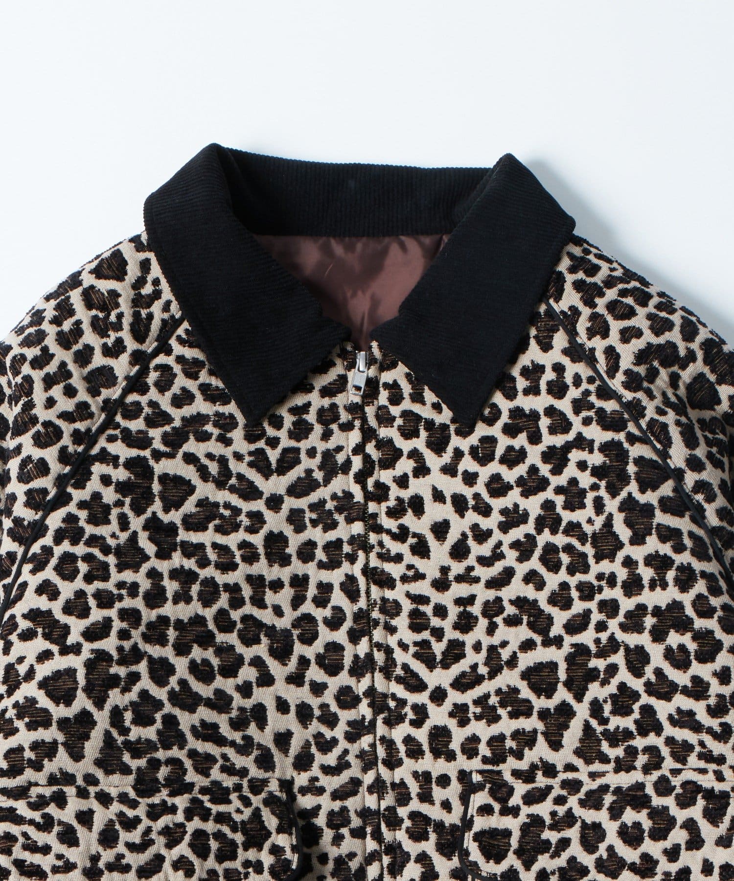 ・ジャガード織りによる立体的なレオパード柄が特徴のブルゾン。