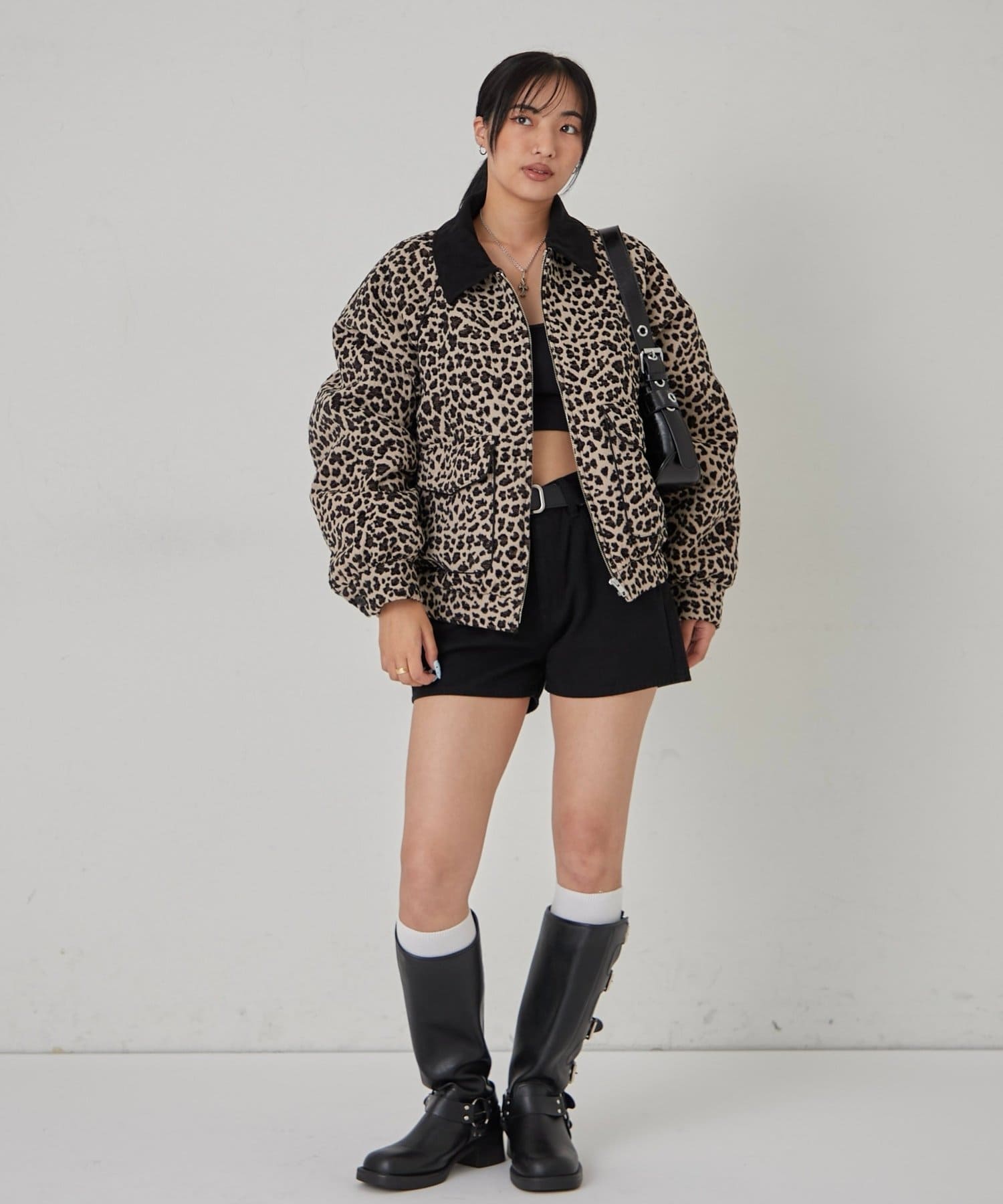 ・凹凸のあるジャガード素材を使用することで、レオパード柄に立体感が生まれ、より存在感のある一枚に仕上がっています。