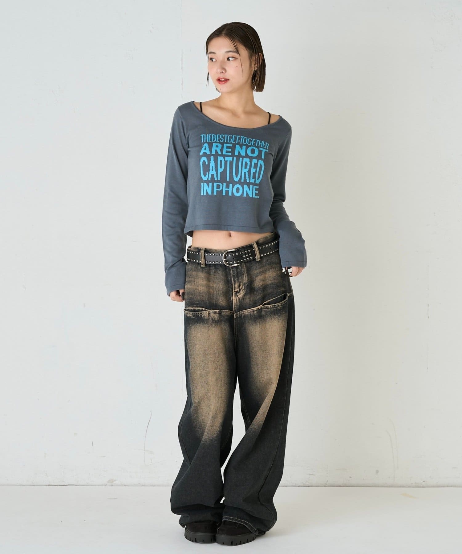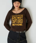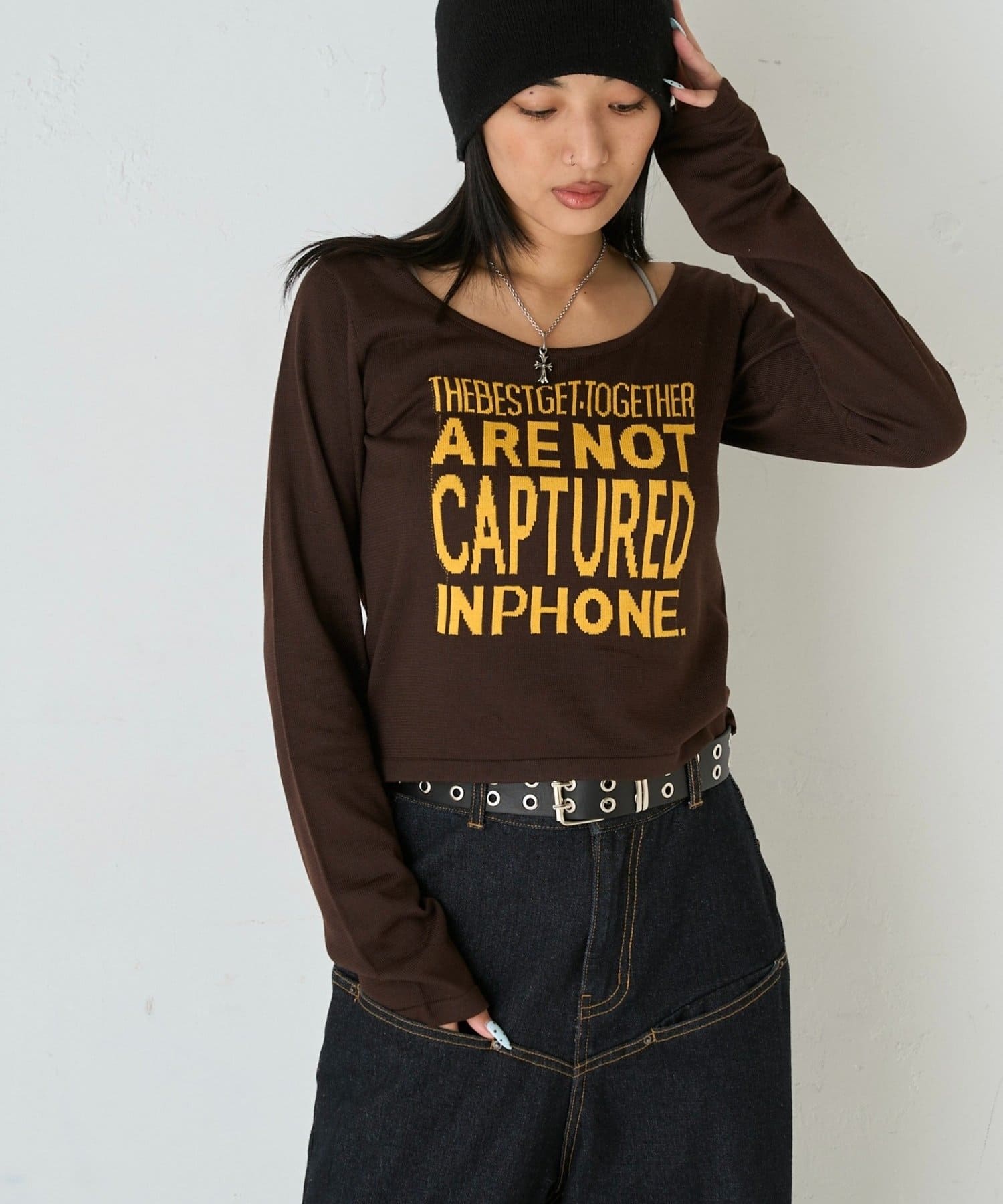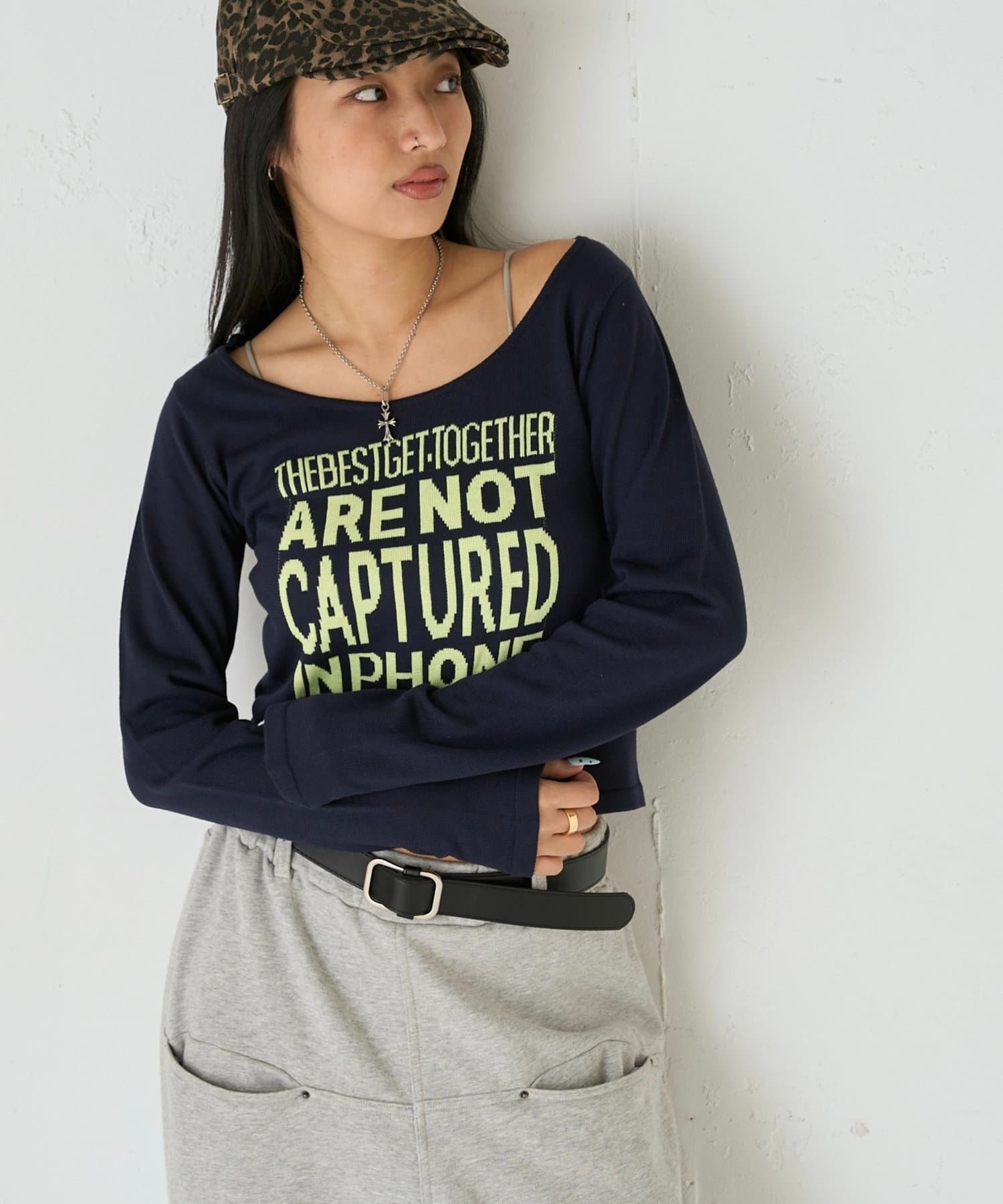 ・ジャケットやアウターのインナーとして着用すると、メッセージロゴがさりげなく見えて◎