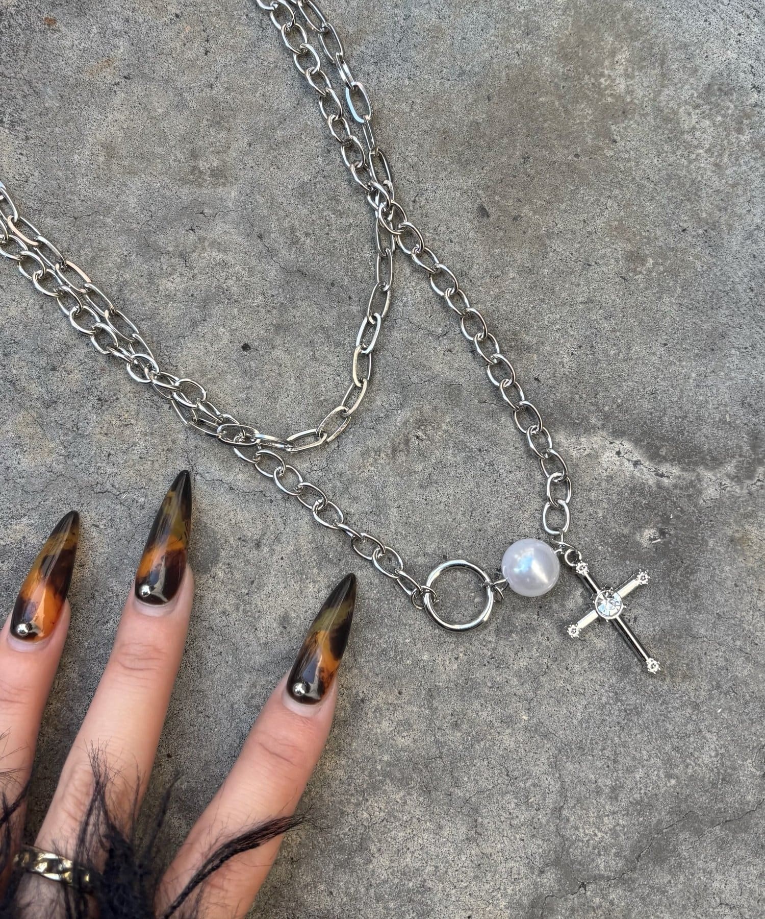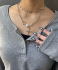 2連チェーンの輝きが目を引く、クールなクロスネックレス!