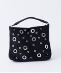 ・散りばめられたハトメが印象的な、コーディネートのアクセントになるショルダーバッグ。