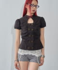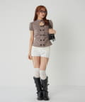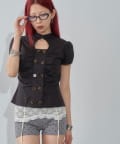 ダブルボタンでトレンド先取り!一枚で甘めカジュアルスタイルに!