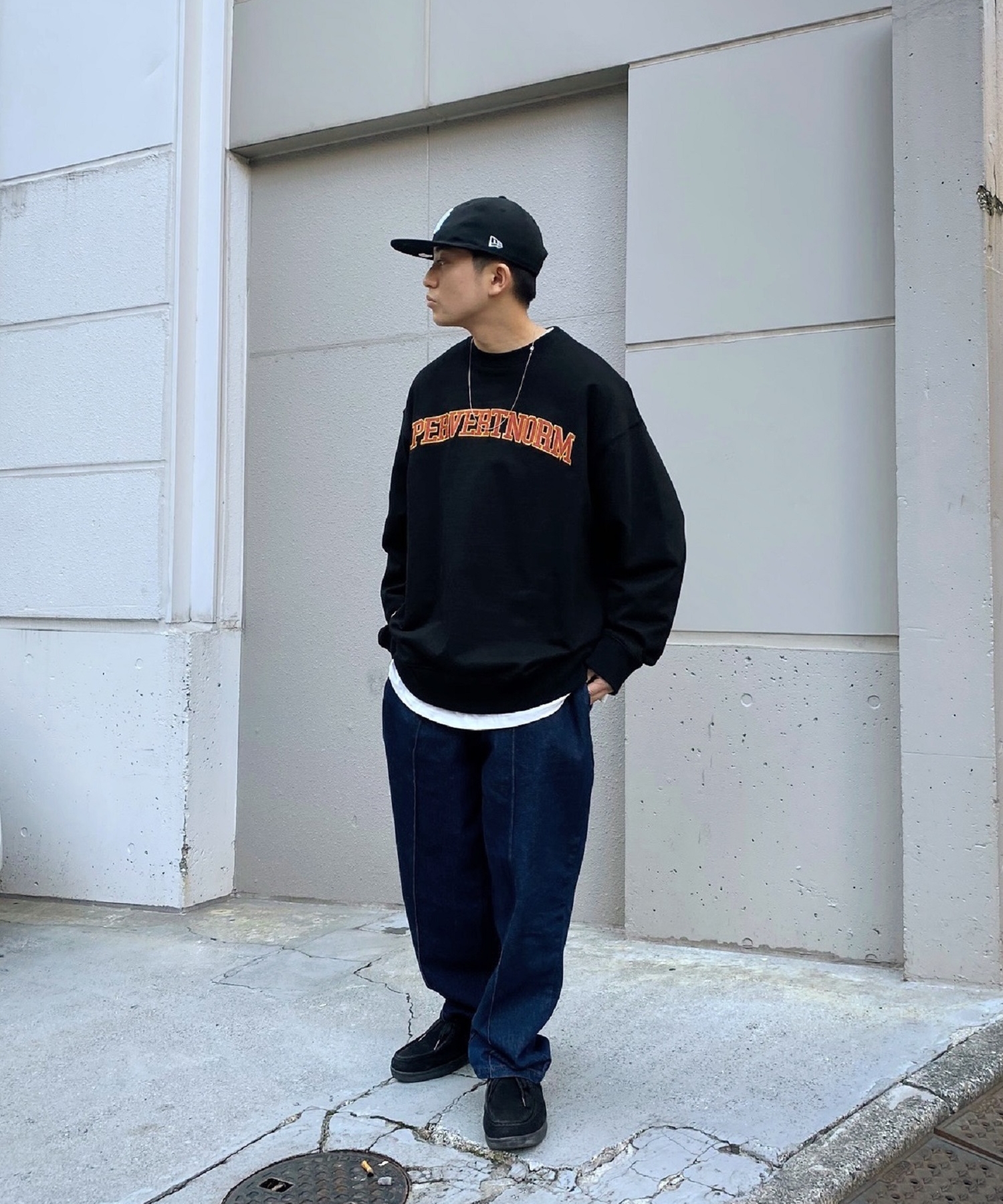 ・WWG定番のビッグなサイズ感。ドロップショルダーになっており、ボリューム感と落ち感がゆったりしたシルエットに。