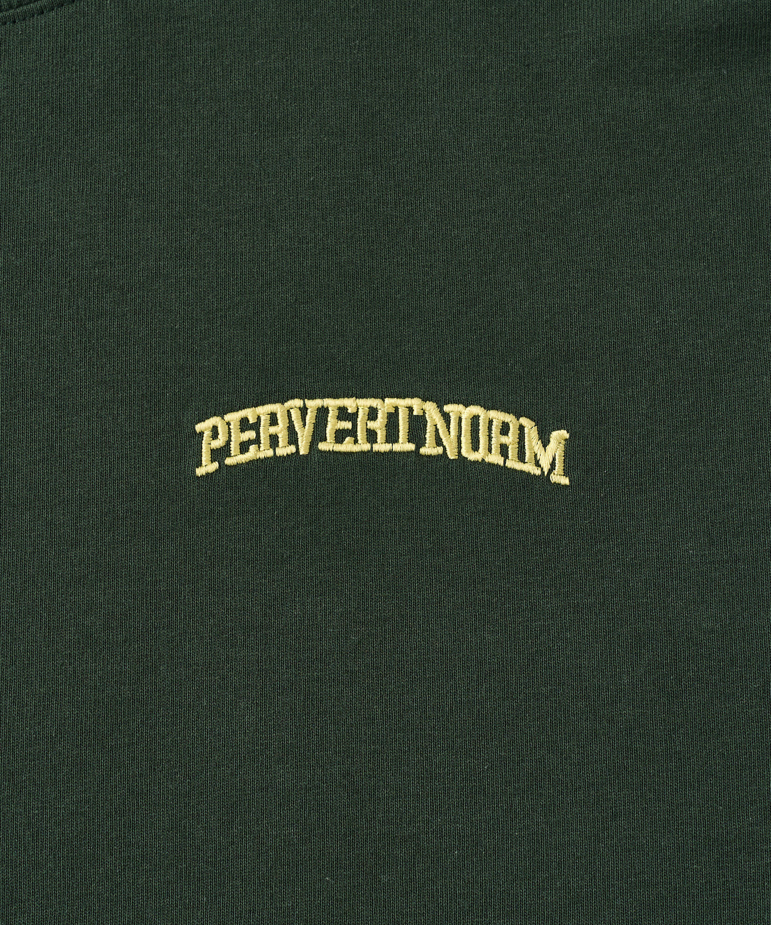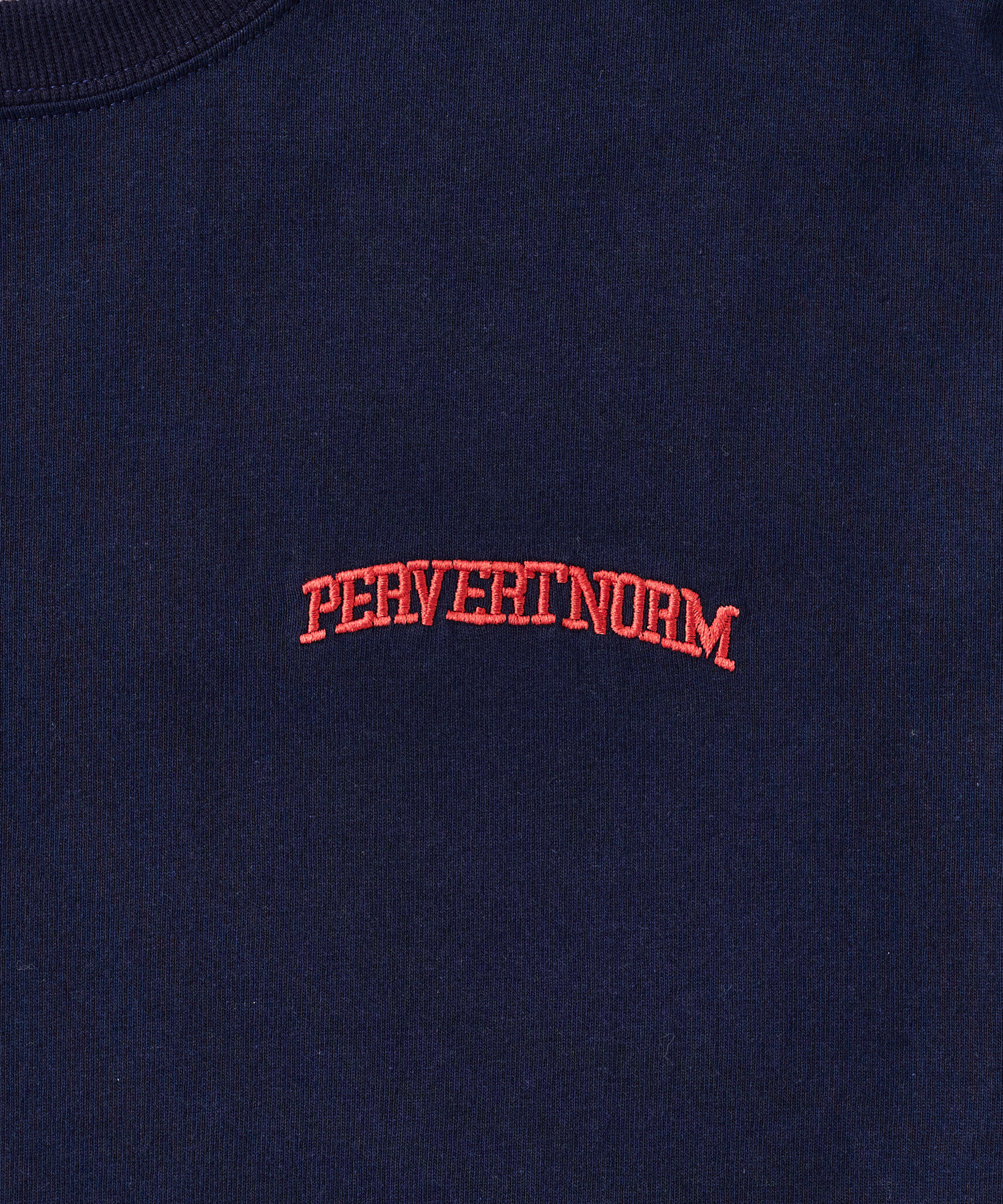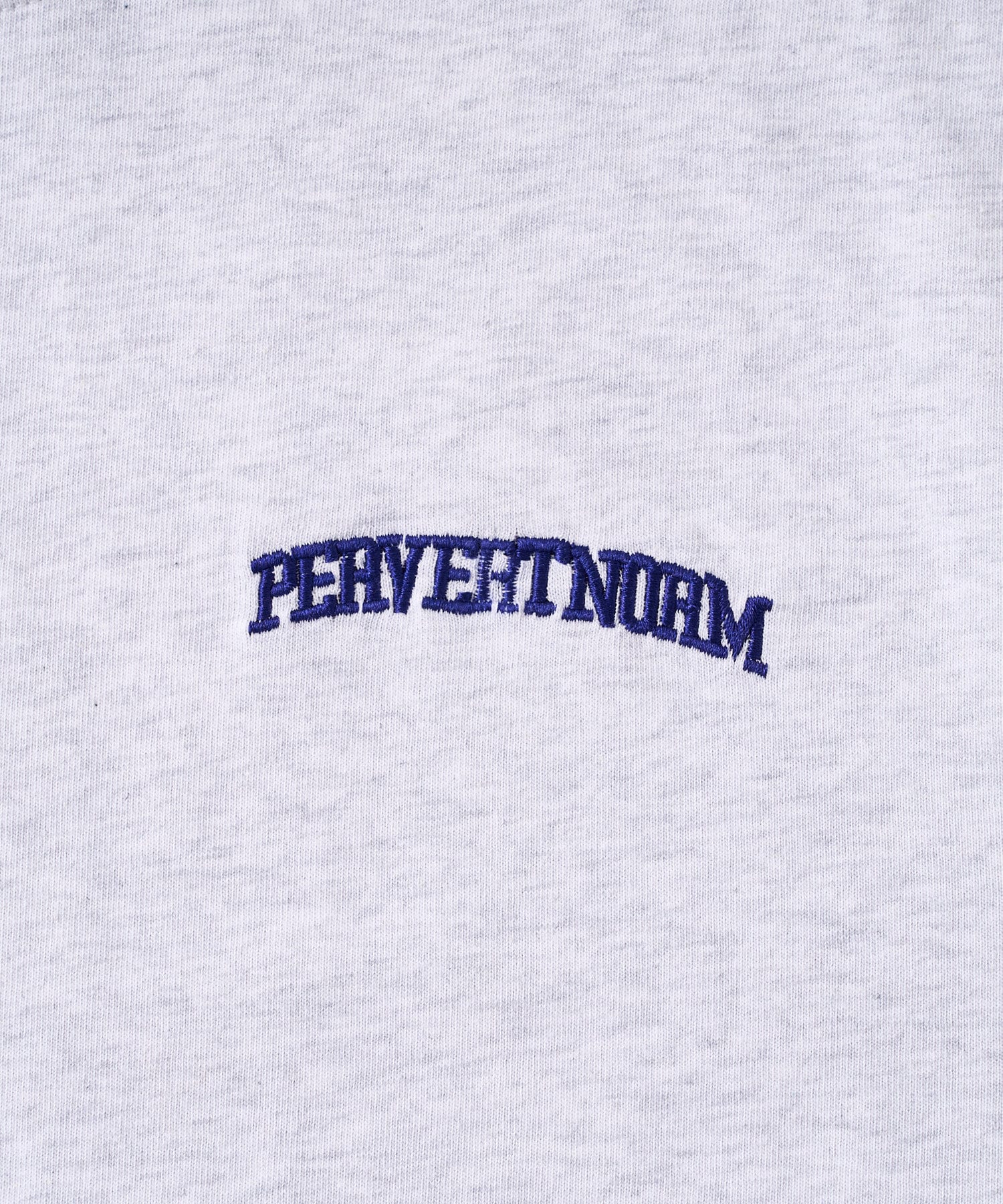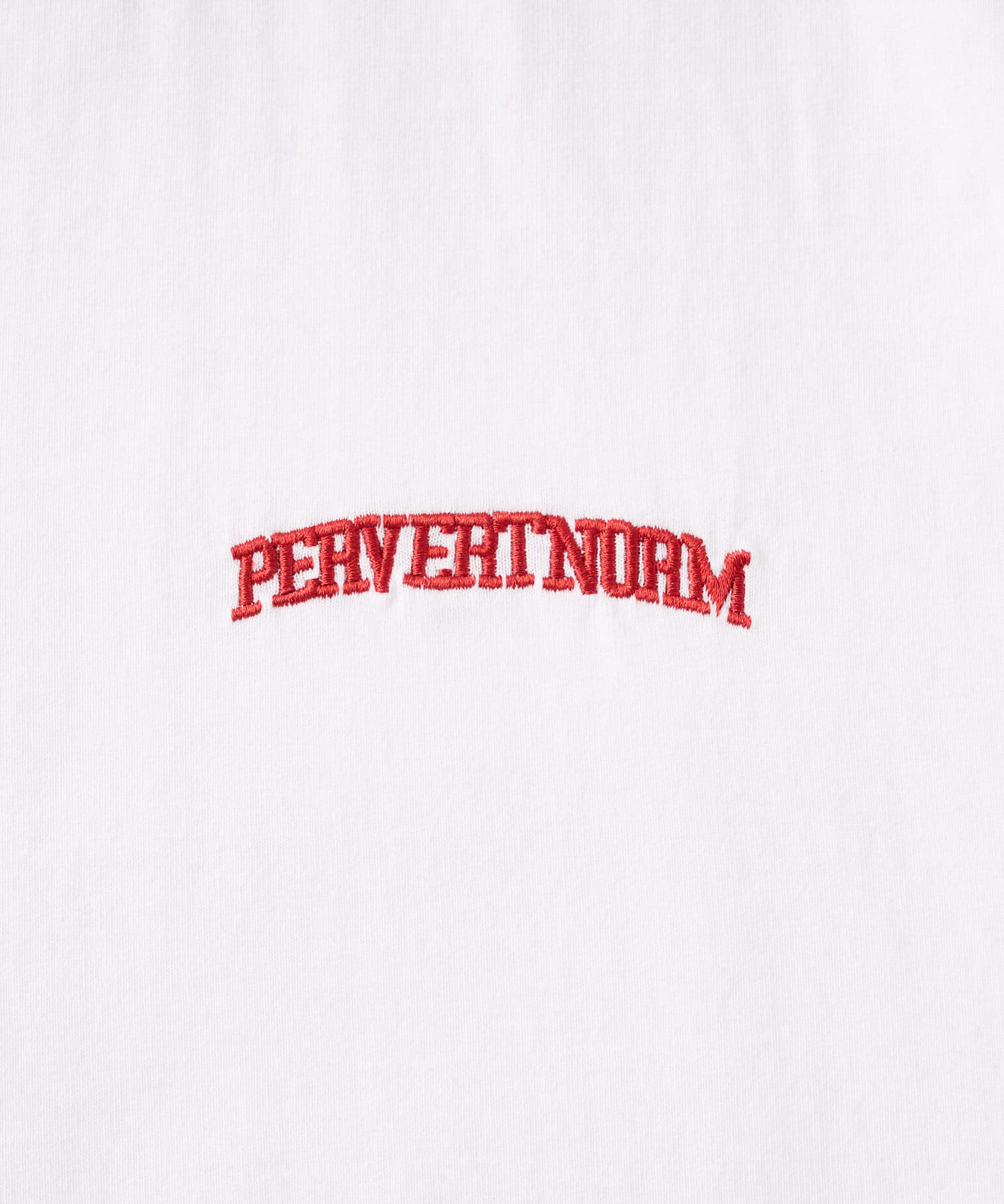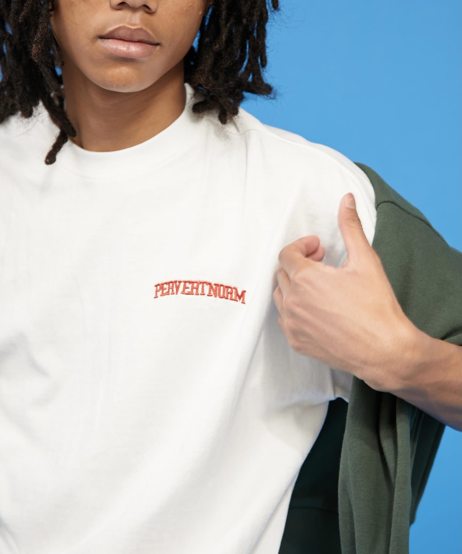 ・ボディーに映える配色の“PERVERTNORM”刺繍ロゴ。立体感があり、一枚着でもしっかりした印象に。