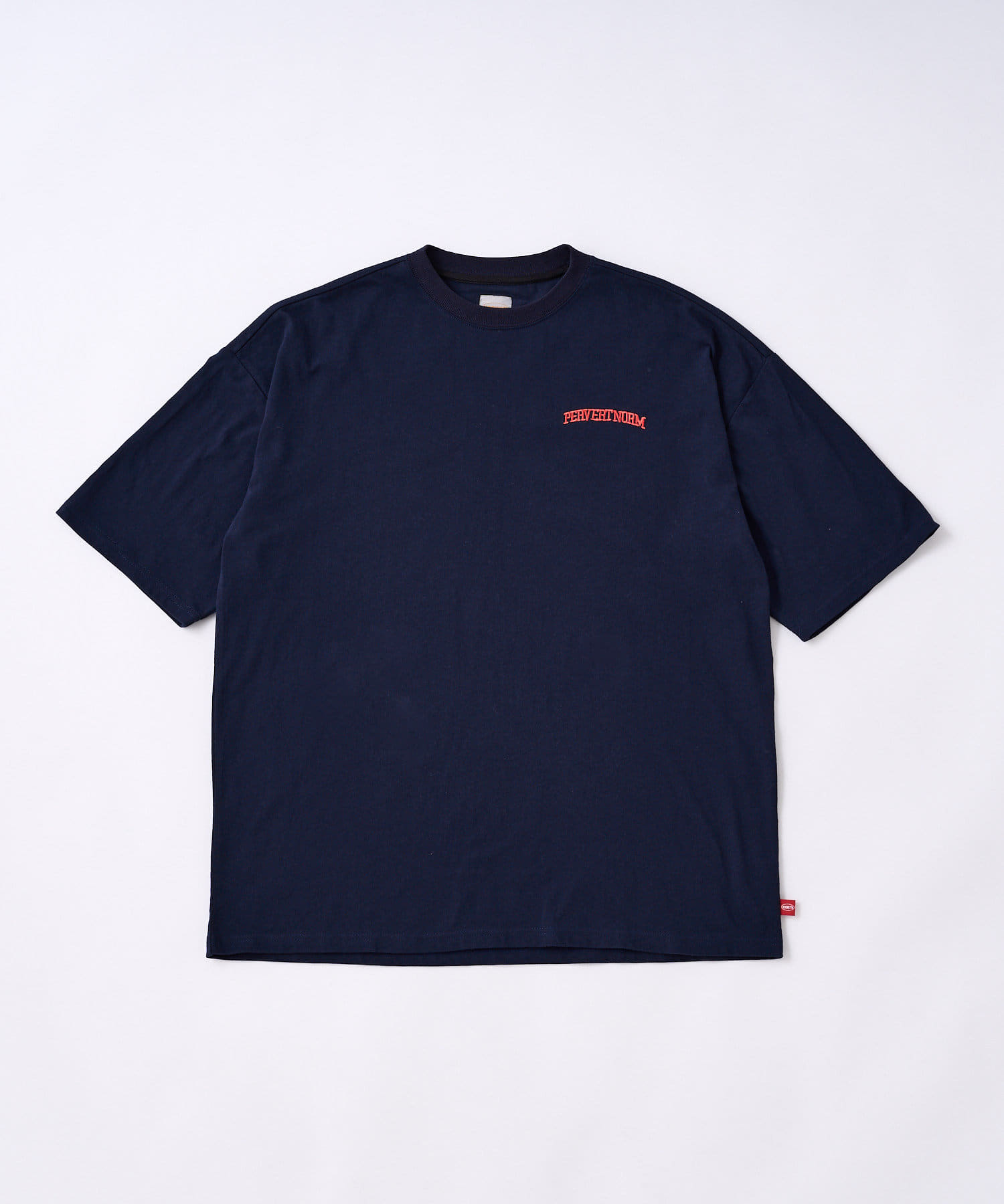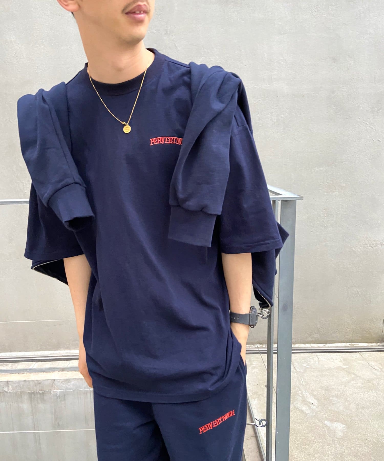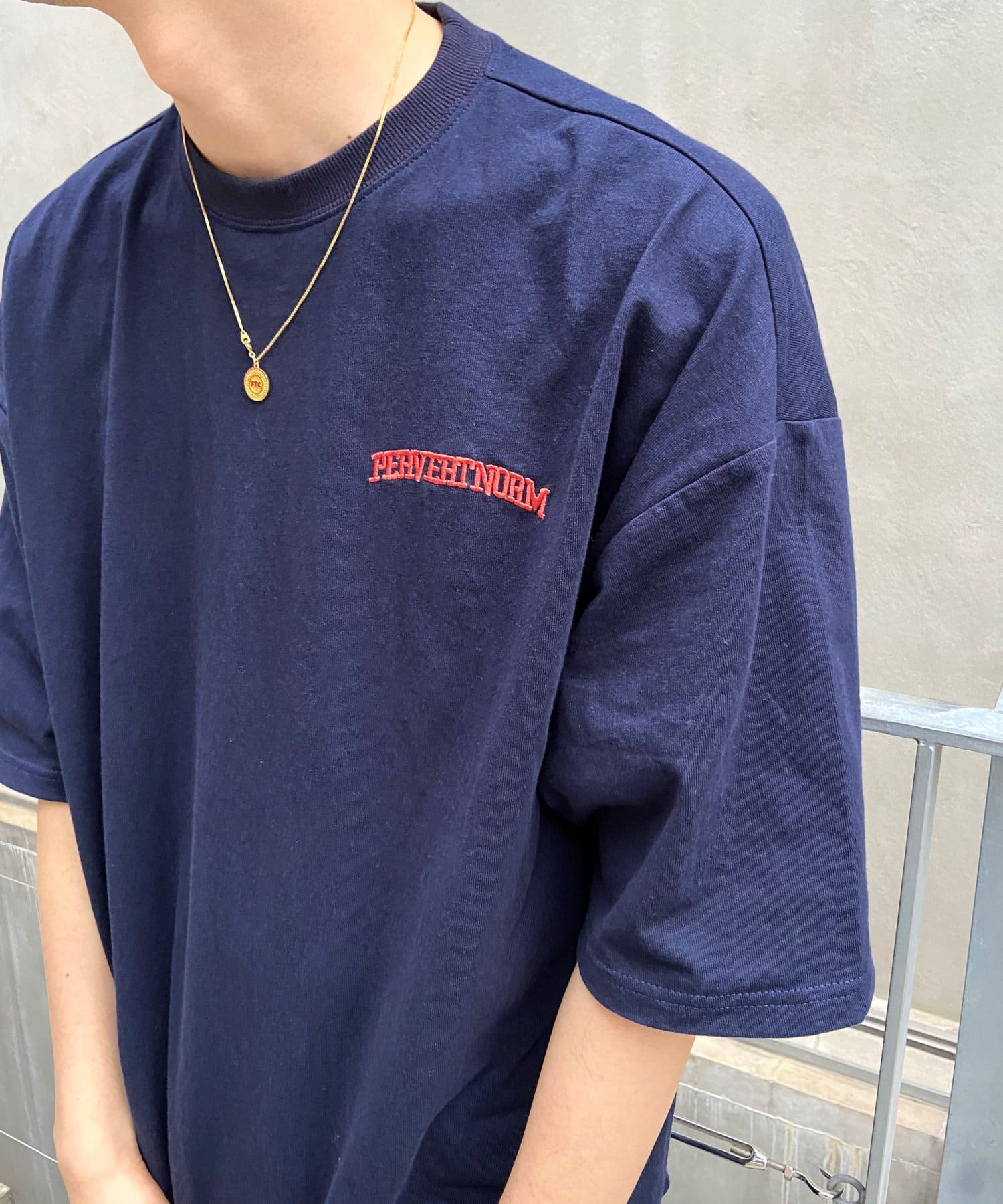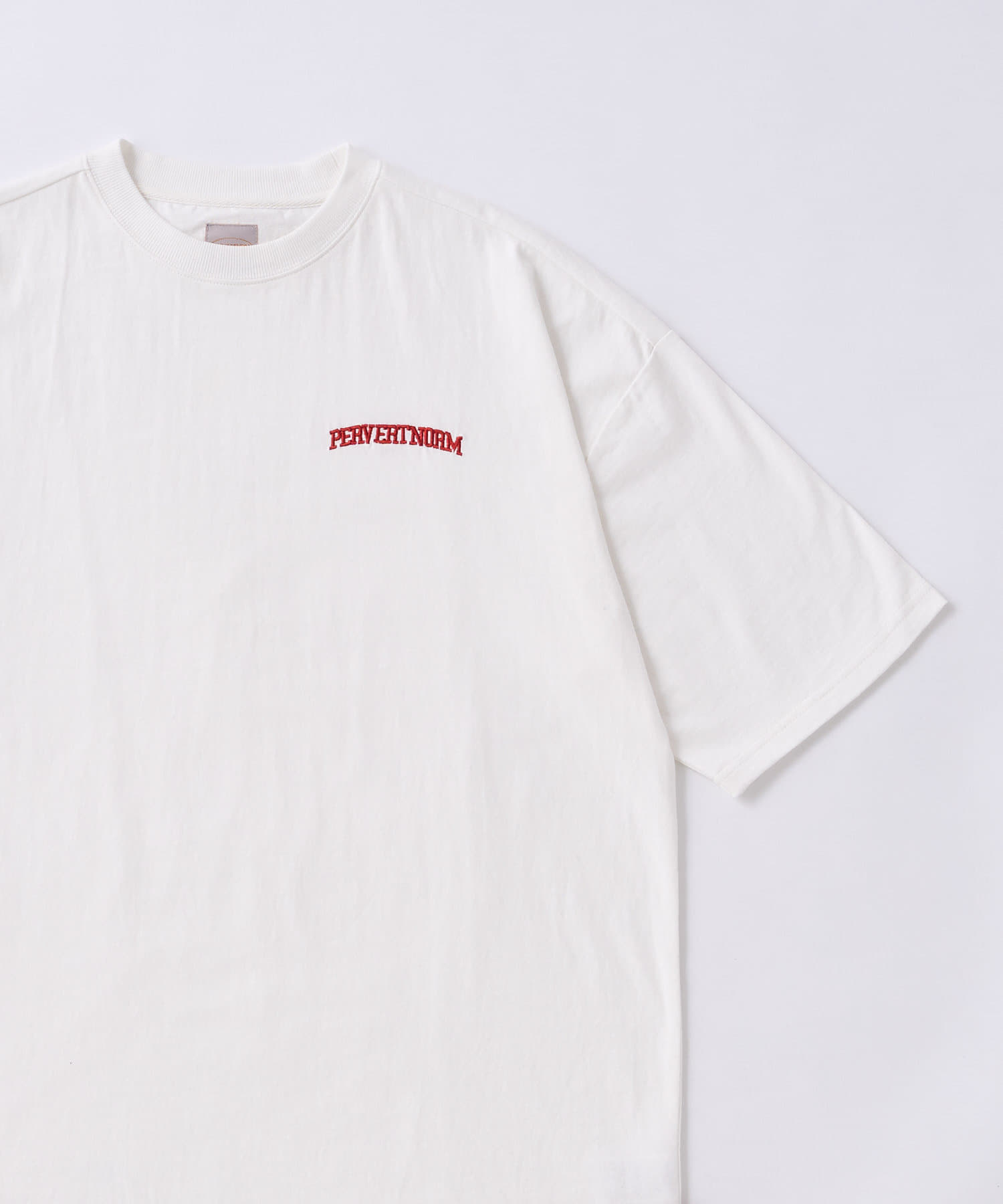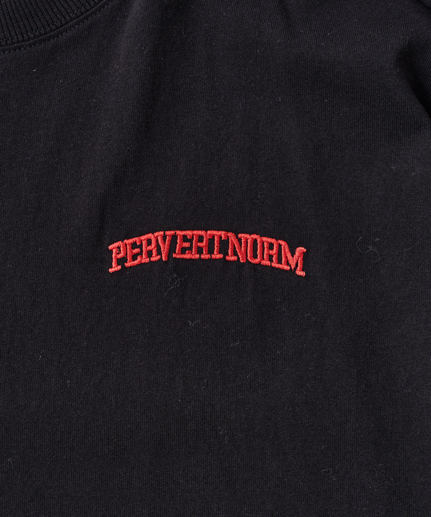 ・ボディーに映える配色の“PERVERTNORM”刺繍ロゴ。立体感があり、一枚着でもしっかりした印象に。