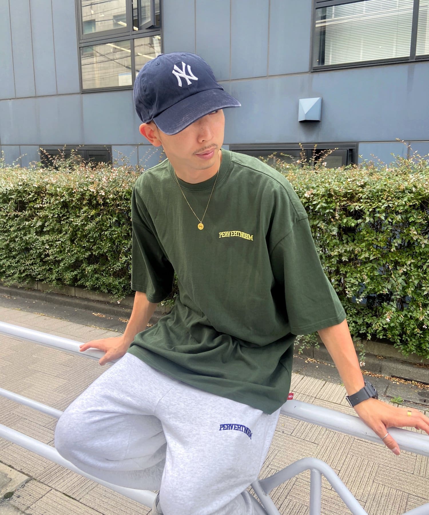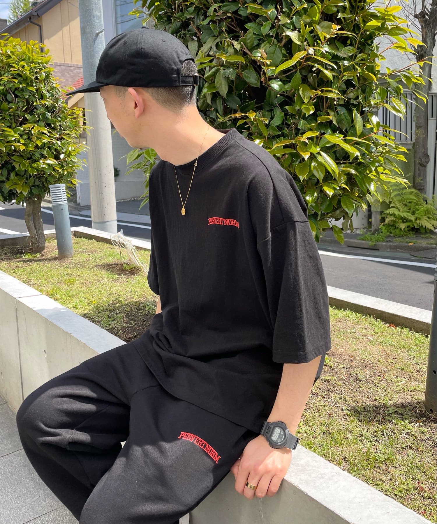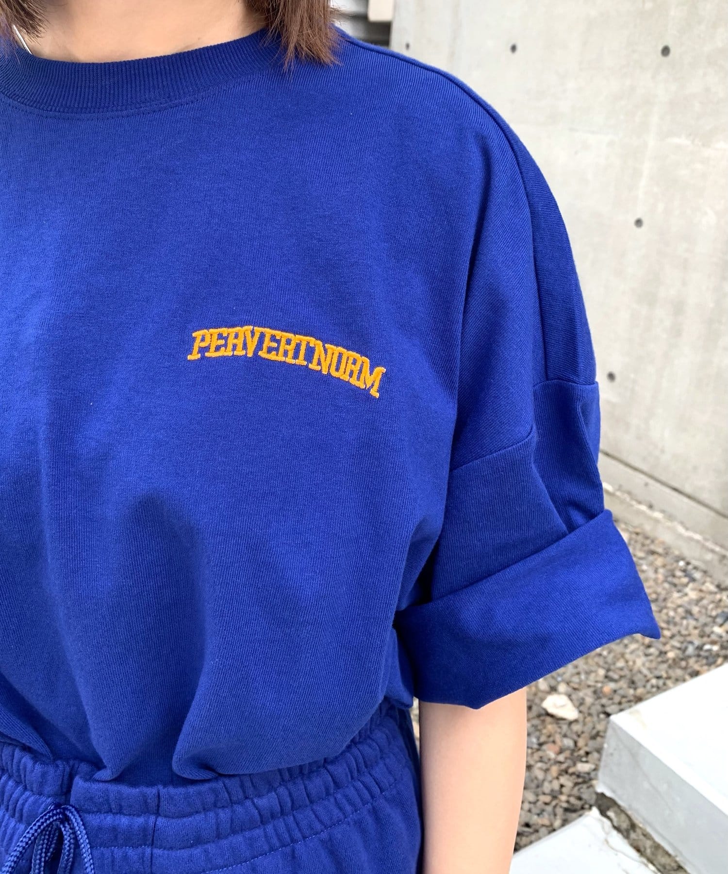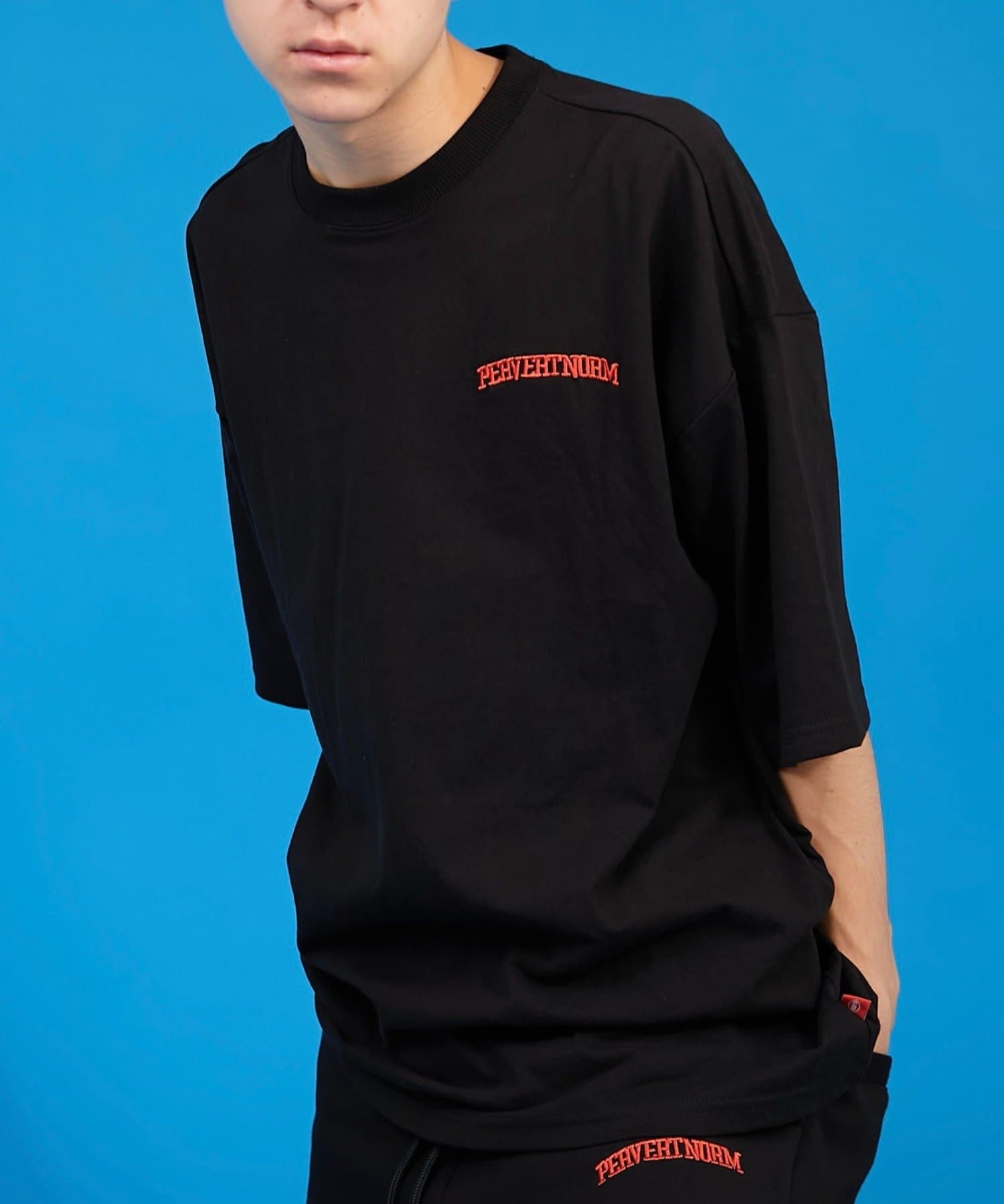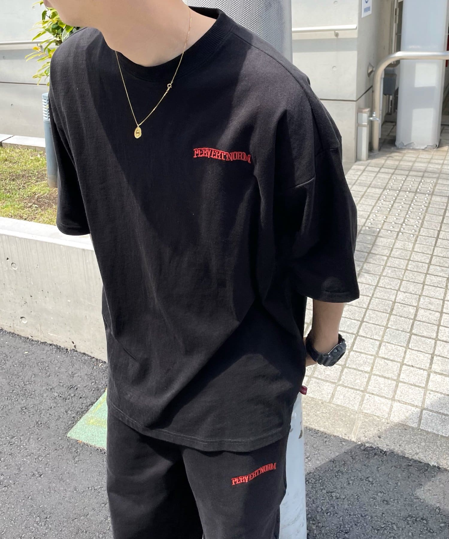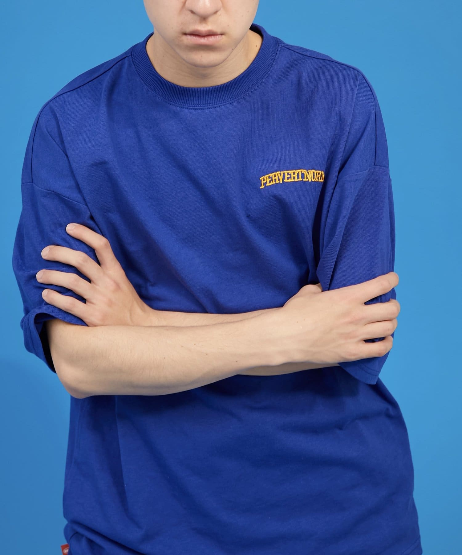 ・ボディーに映える配色の“PERVERTNORM”刺繍ロゴ。立体感があり、一枚着でもしっかりした印象に。