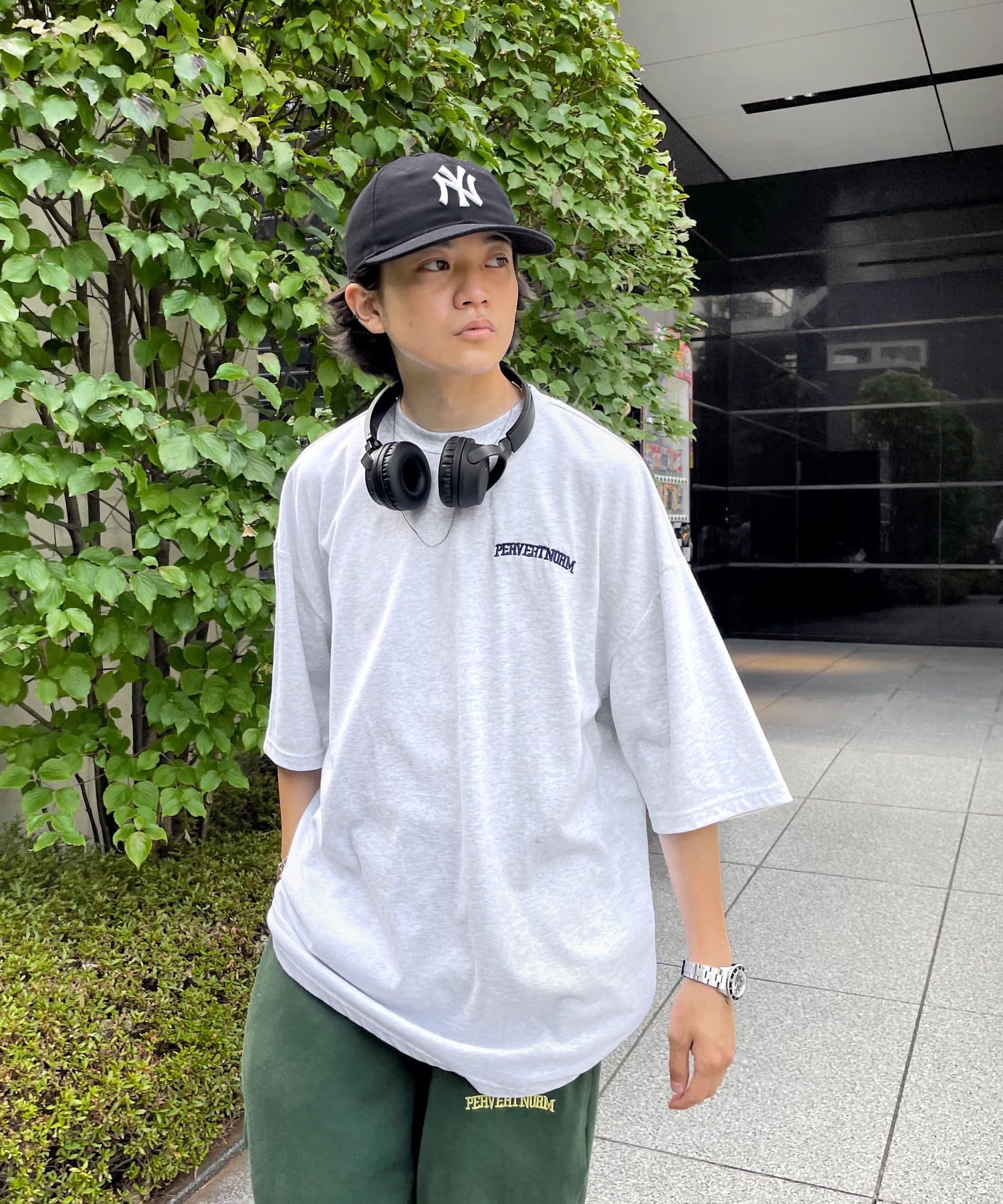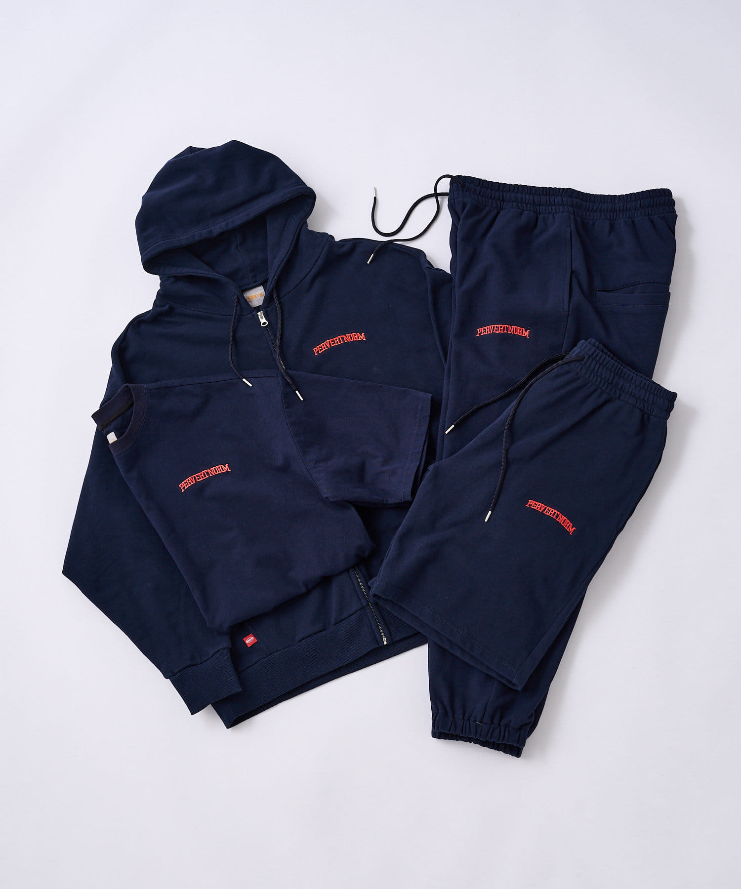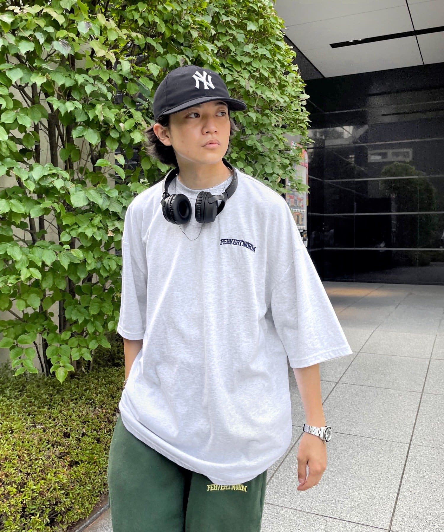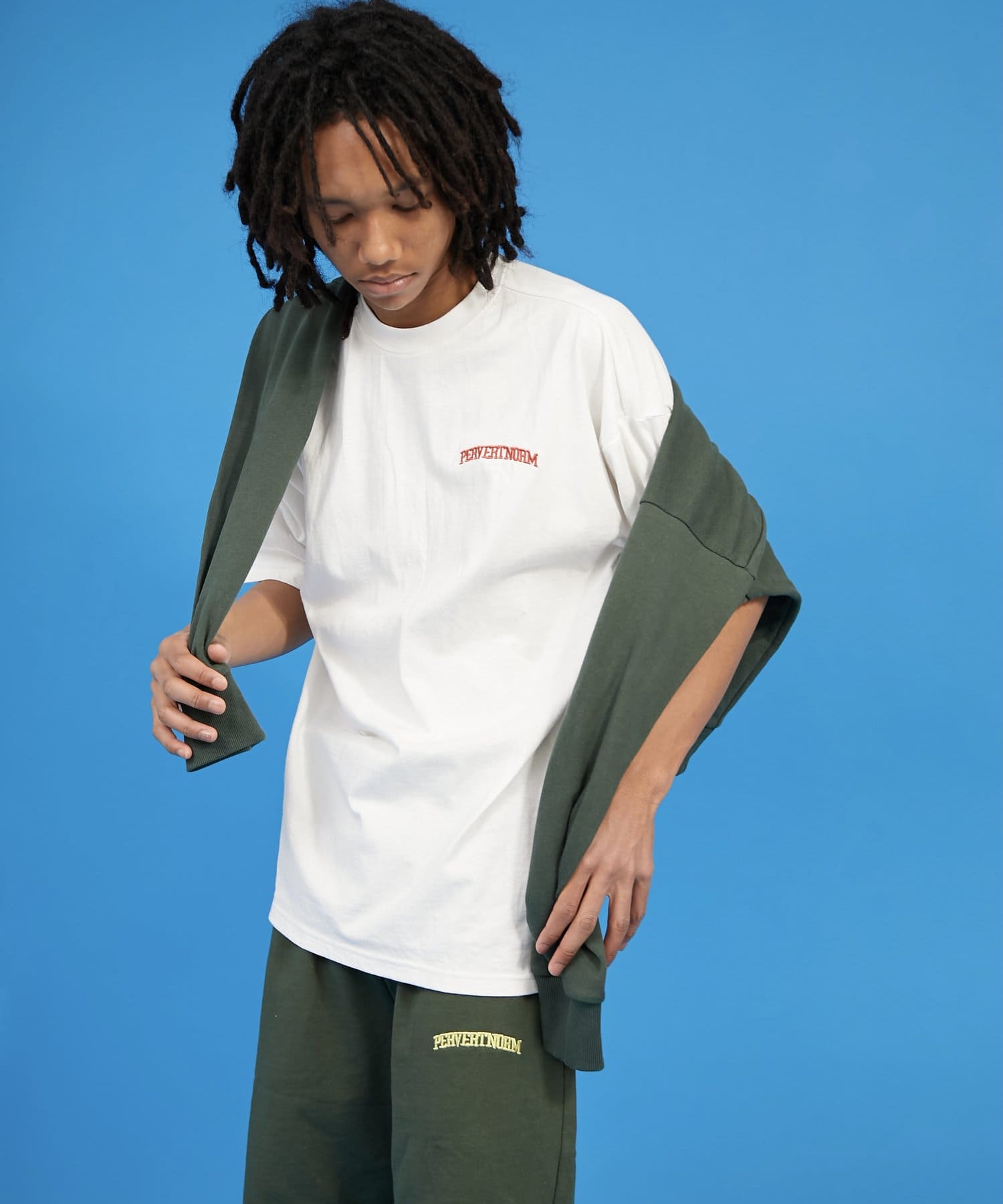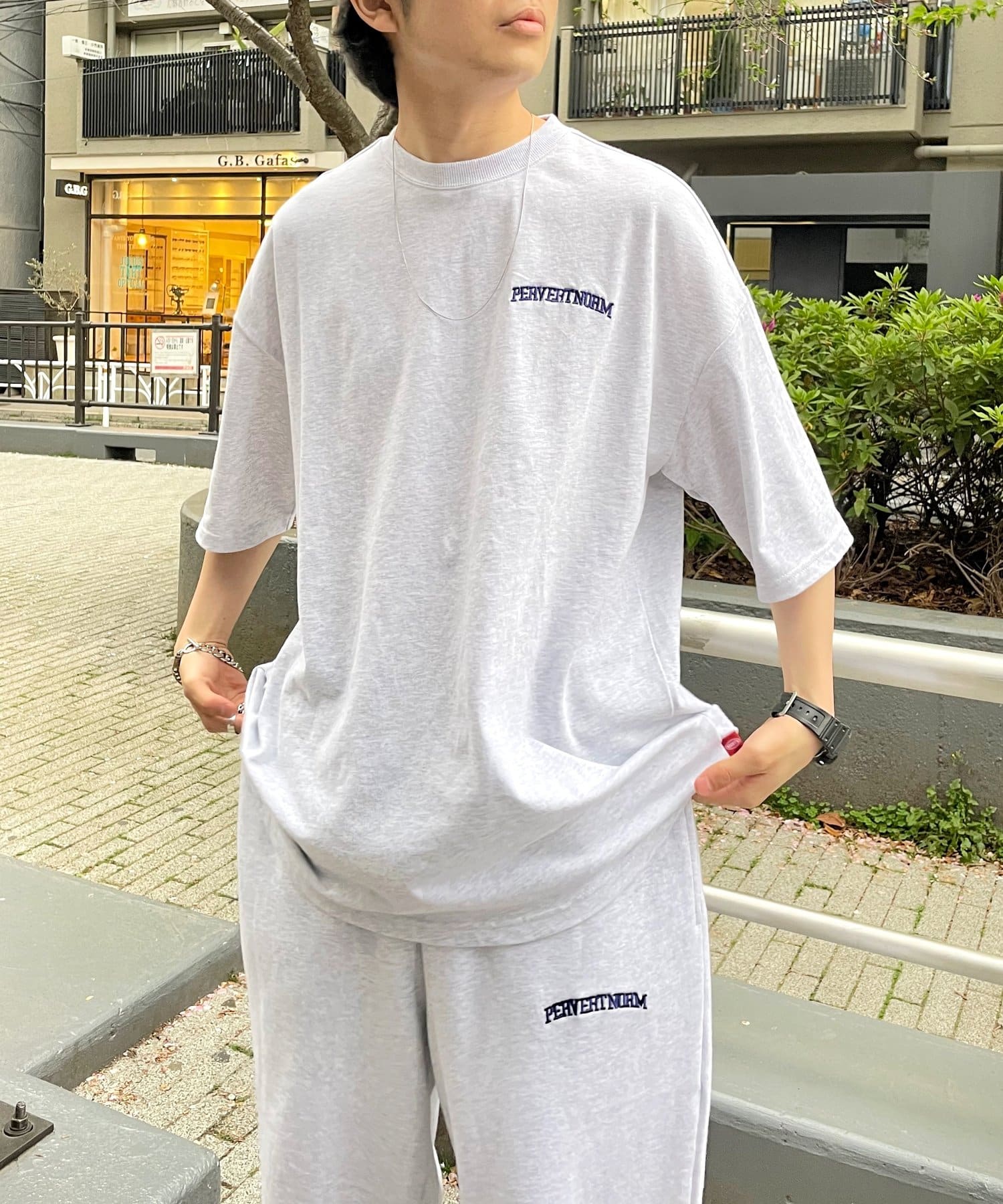・ボディーに映える配色の“PERVERTNORM”刺繍ロゴ。立体感があり、一枚着でもしっかりした印象に。
