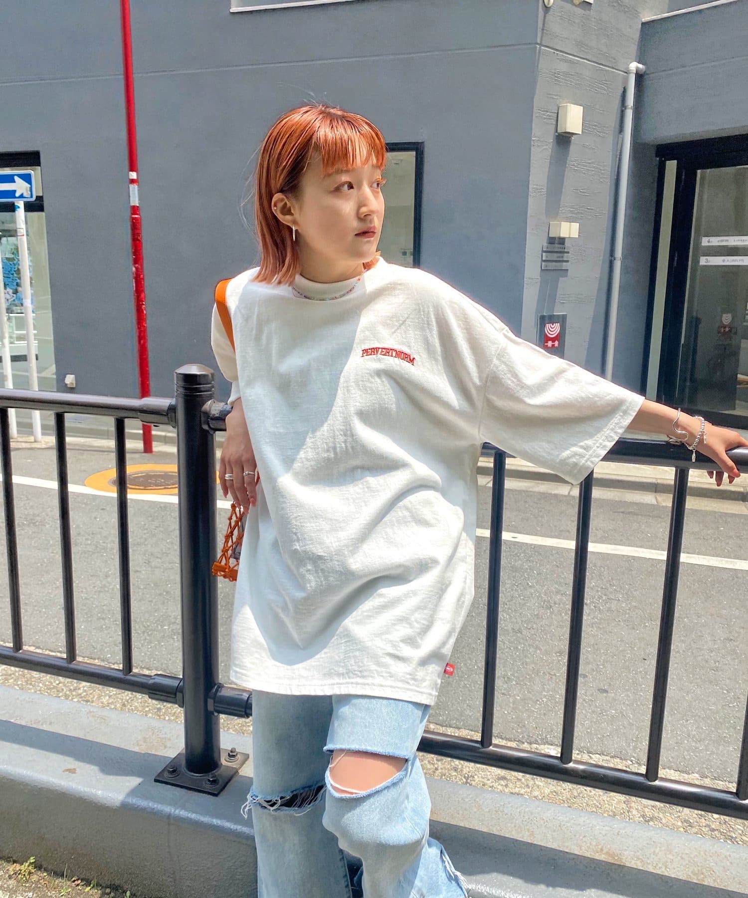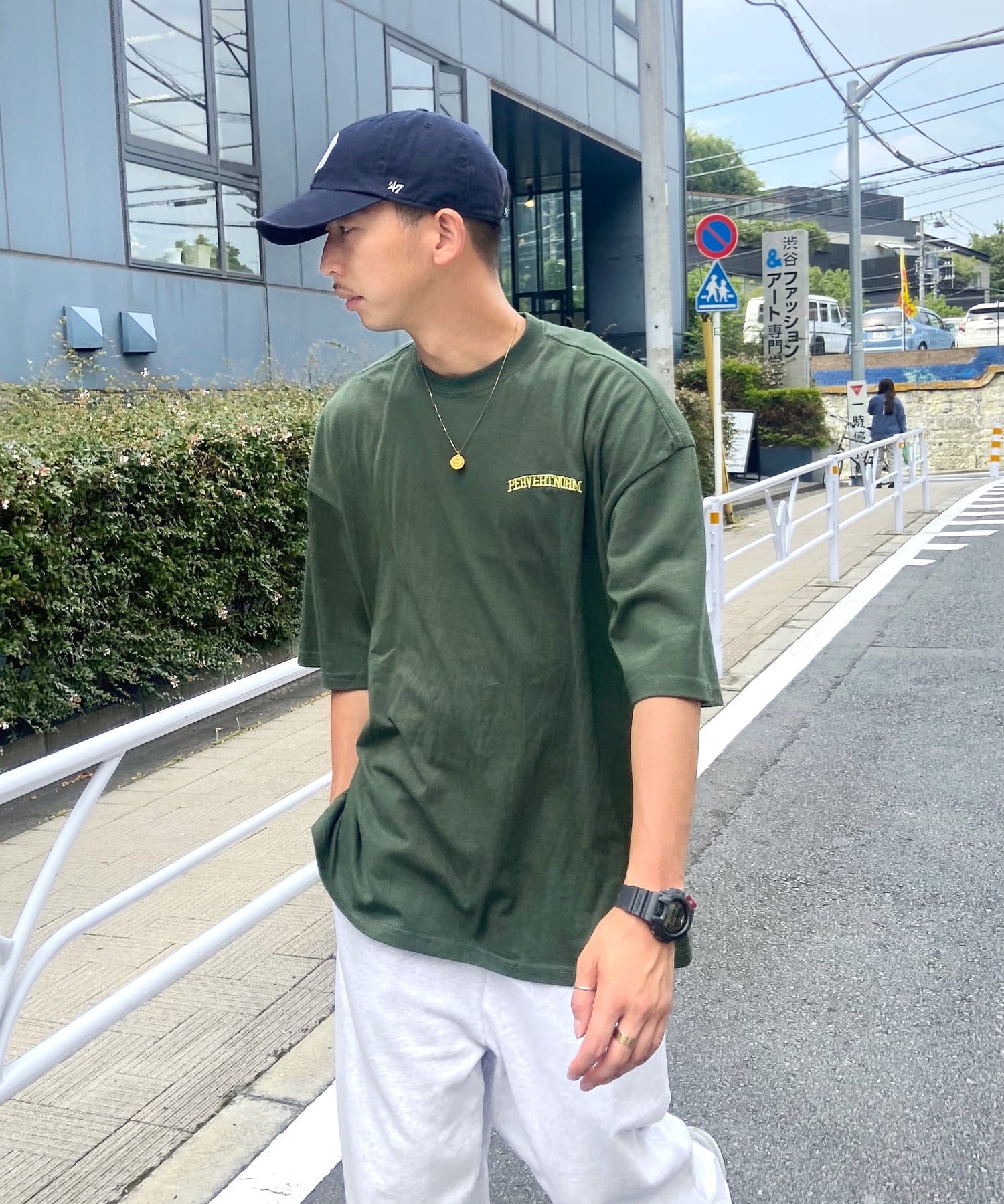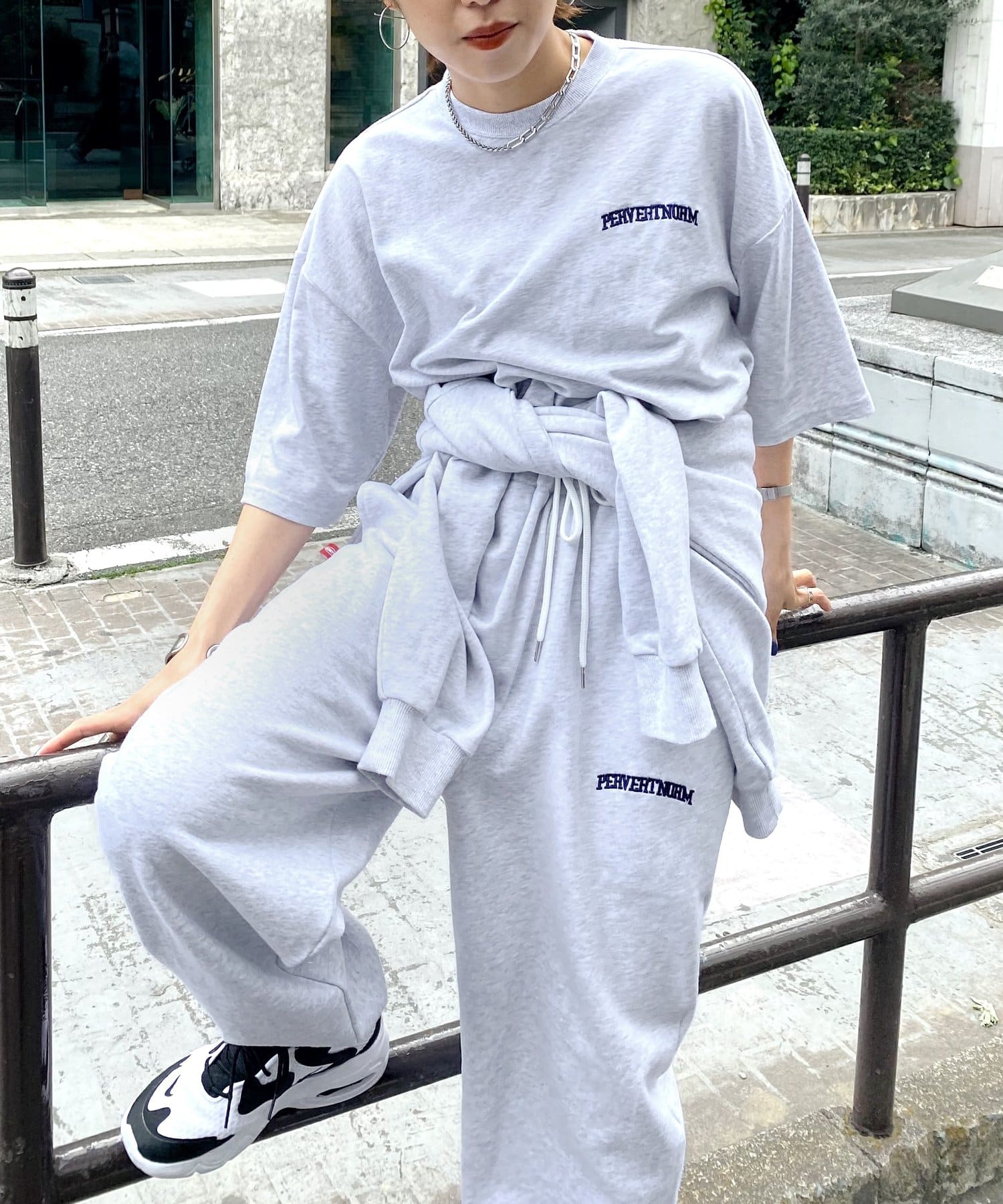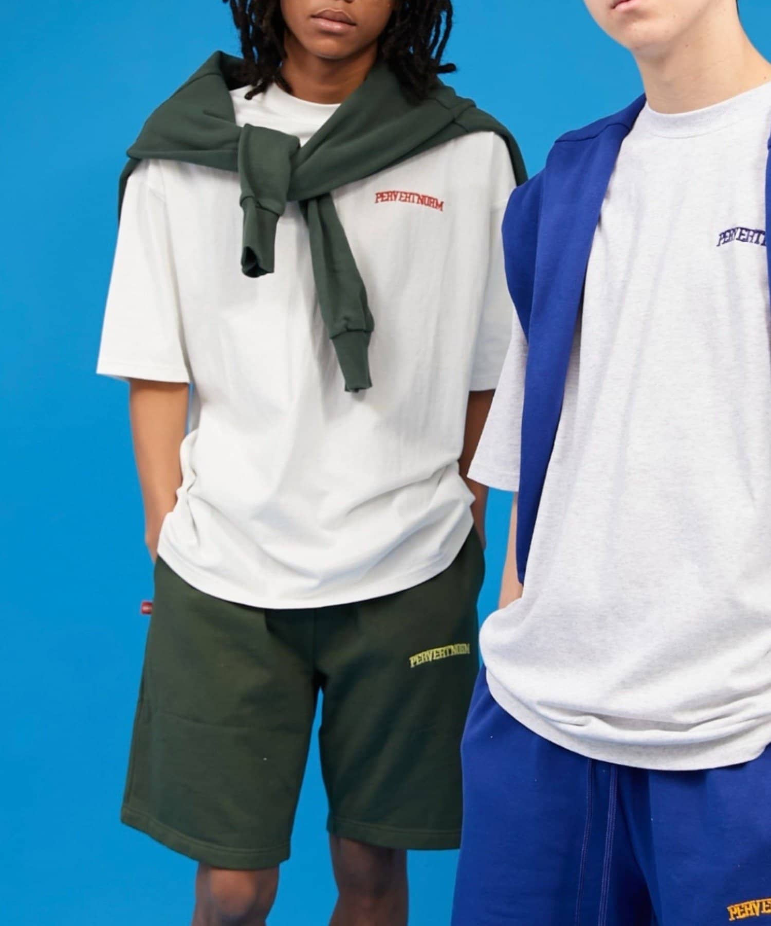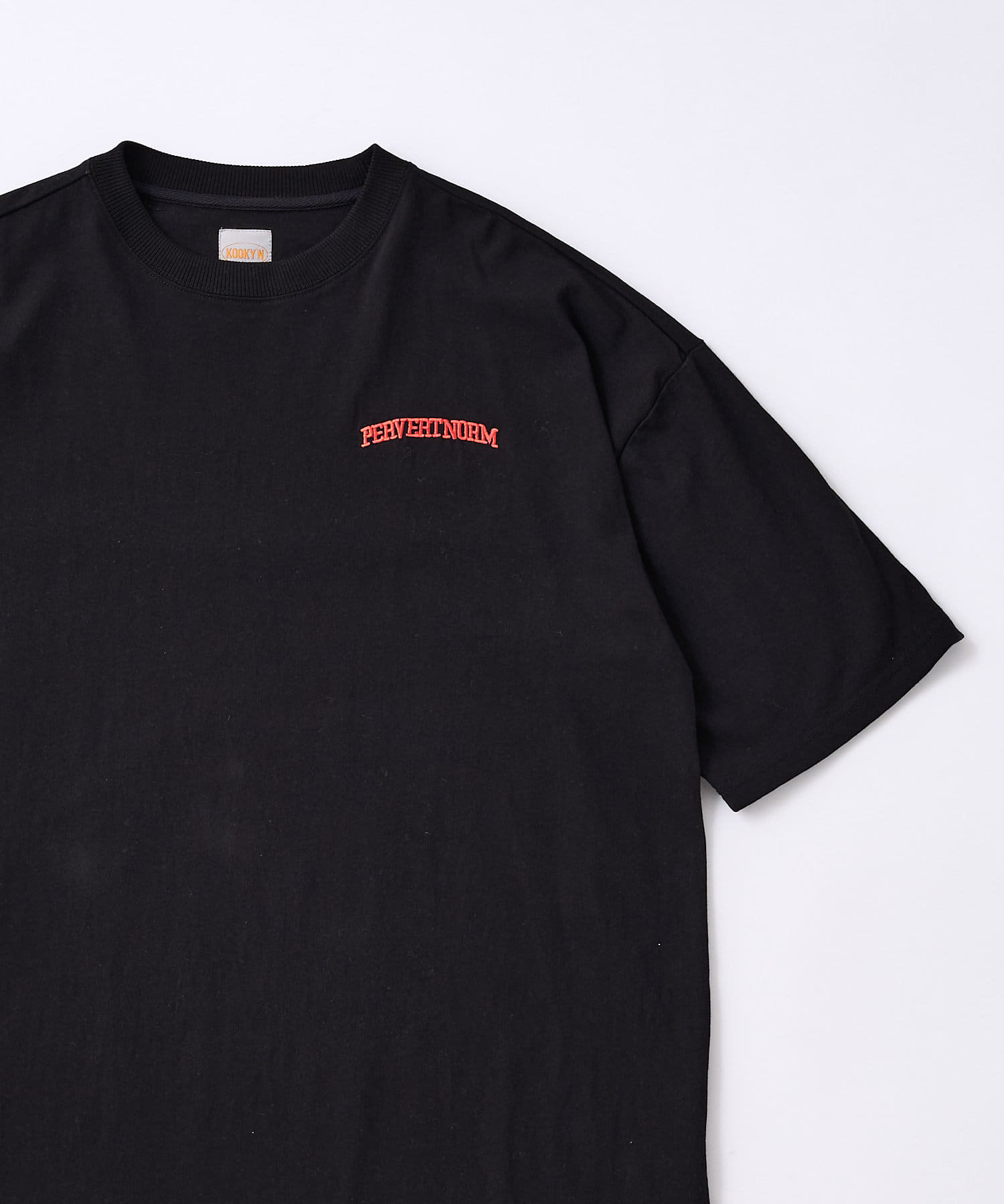 ・ボディーに映える配色の“PERVERTNORM”刺繍ロゴ。立体感があり、一枚着でもしっかりした印象に。
