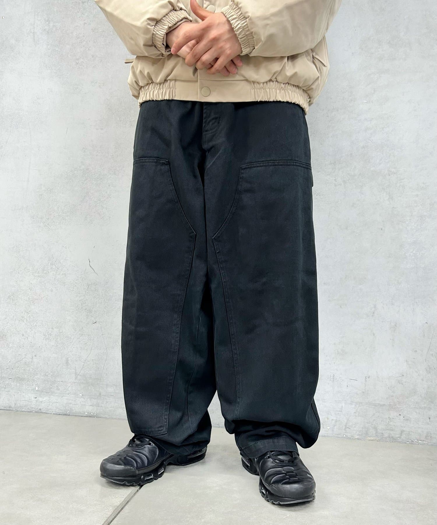 ワークパンツ定番のダブルニーパンツ。