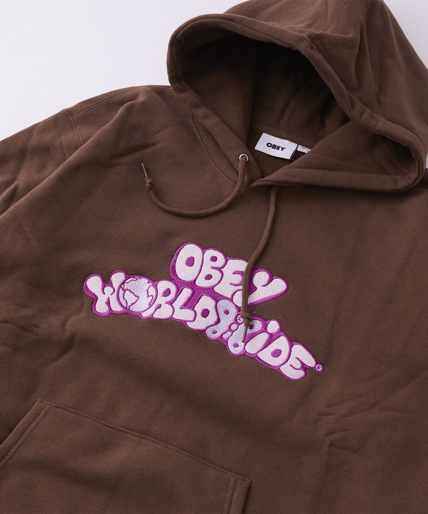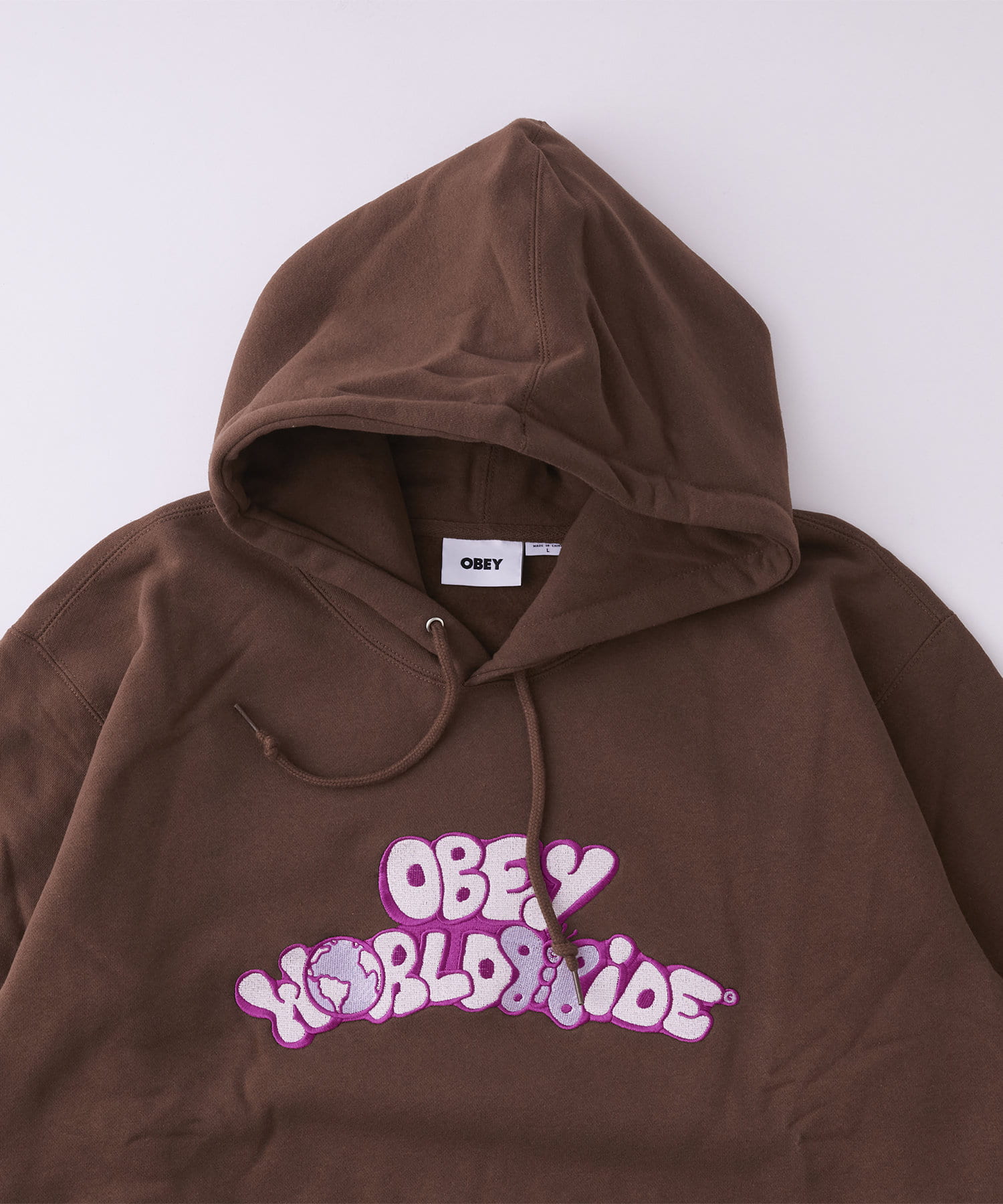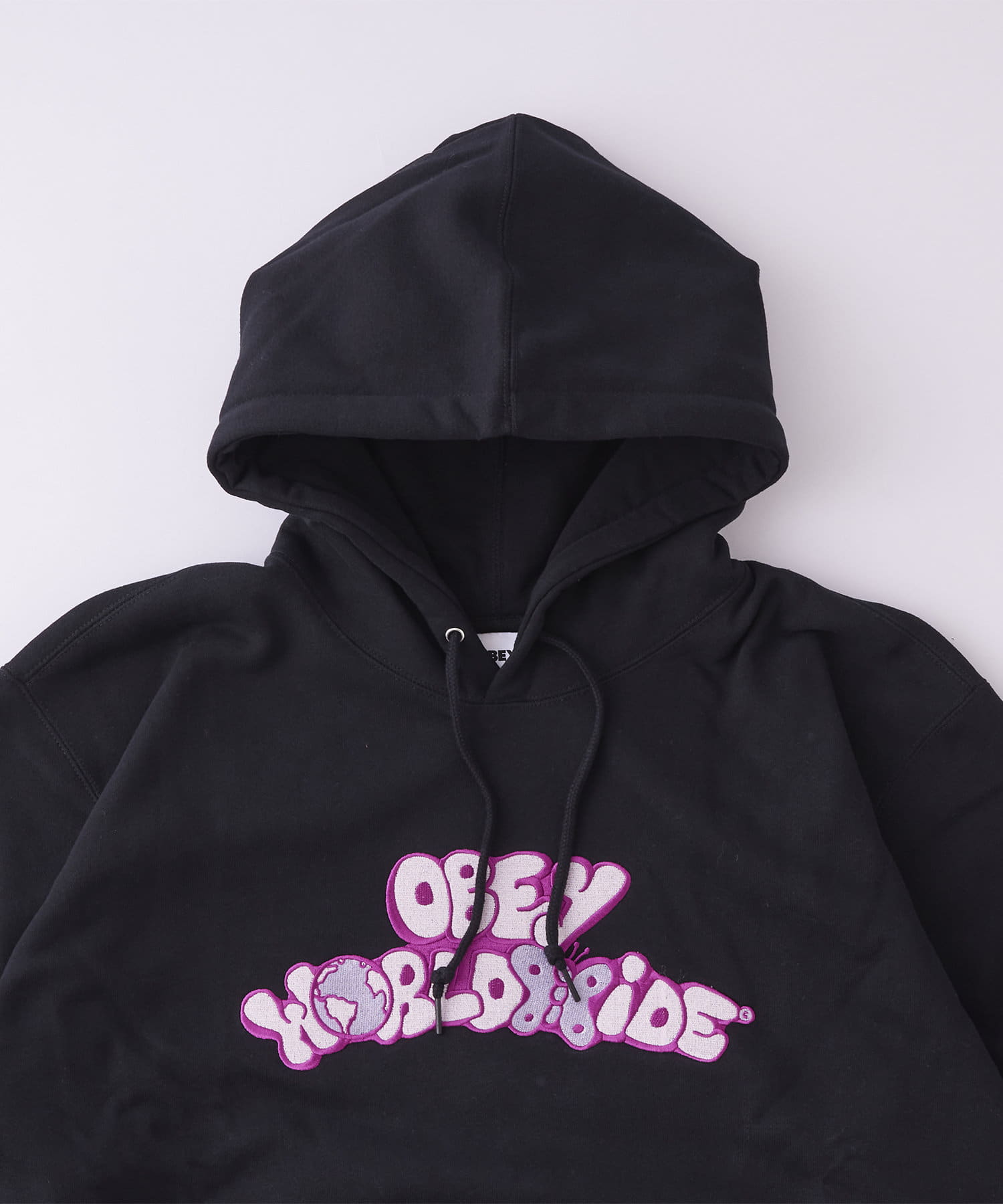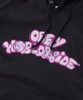ポップなデザインで"OBEY WORLD WIDE"の文字を大きく刺繍したHOODIEです。