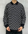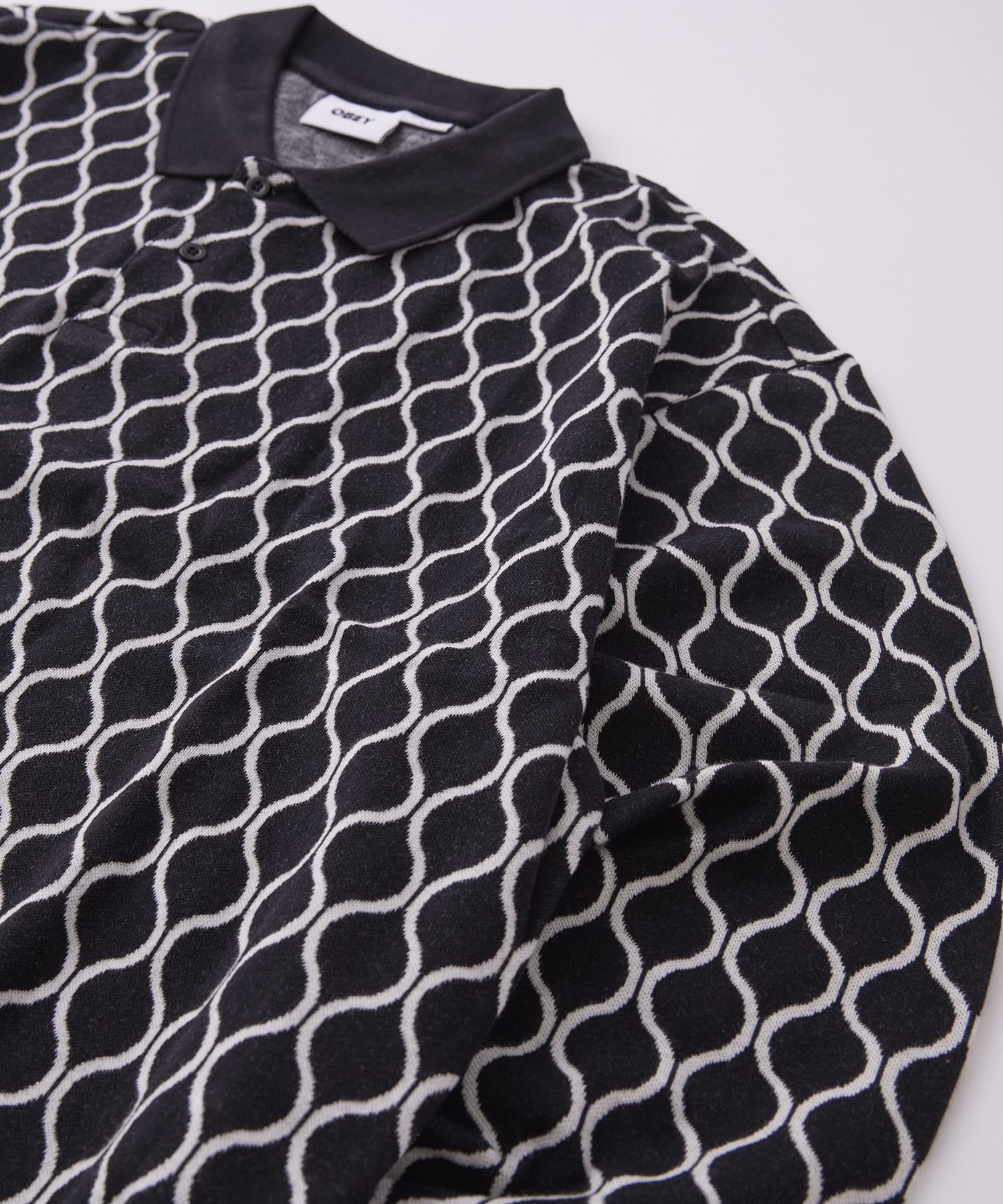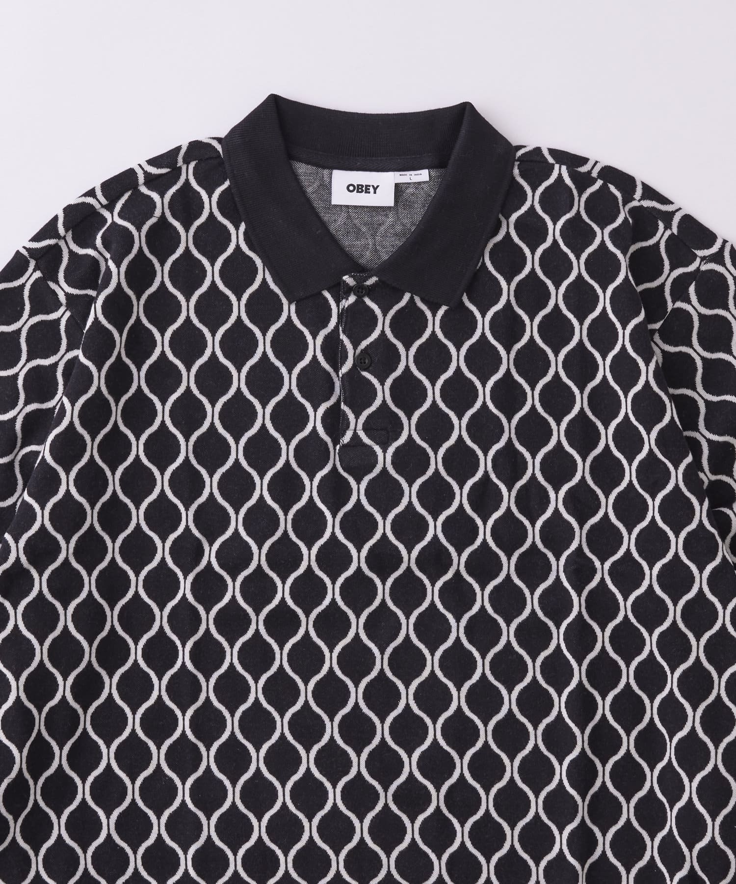 特徴的な縦のストライプが全体に施されたジャガードポロ。