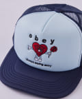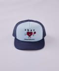 ハートのグラフィックを落とし込んだスナップバックの6パネル。