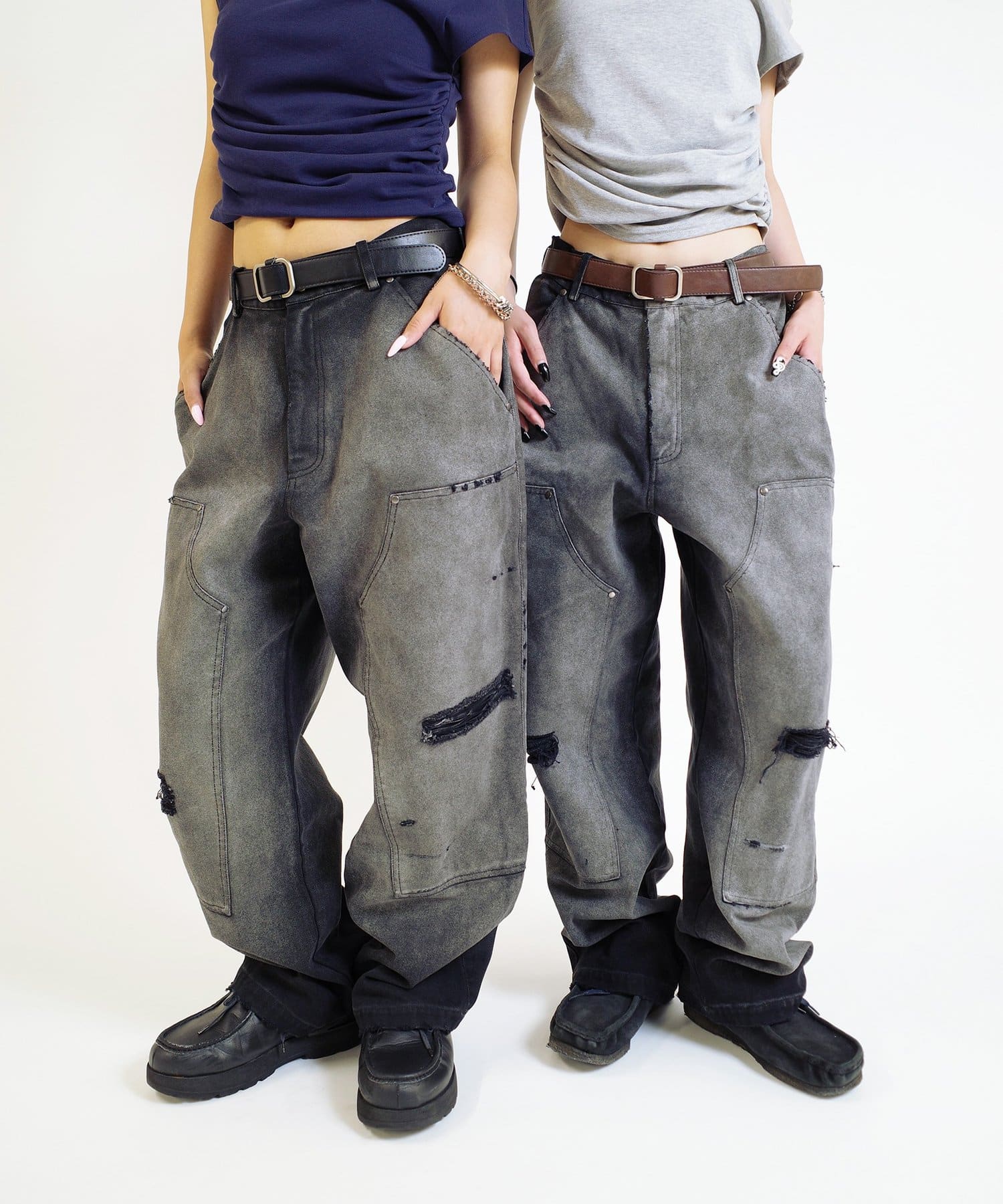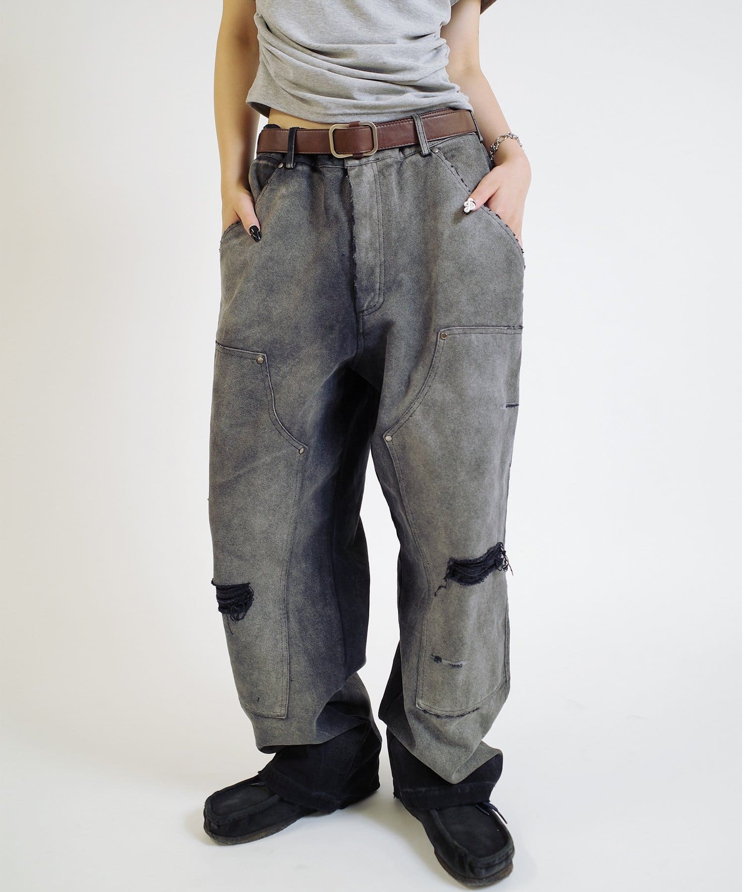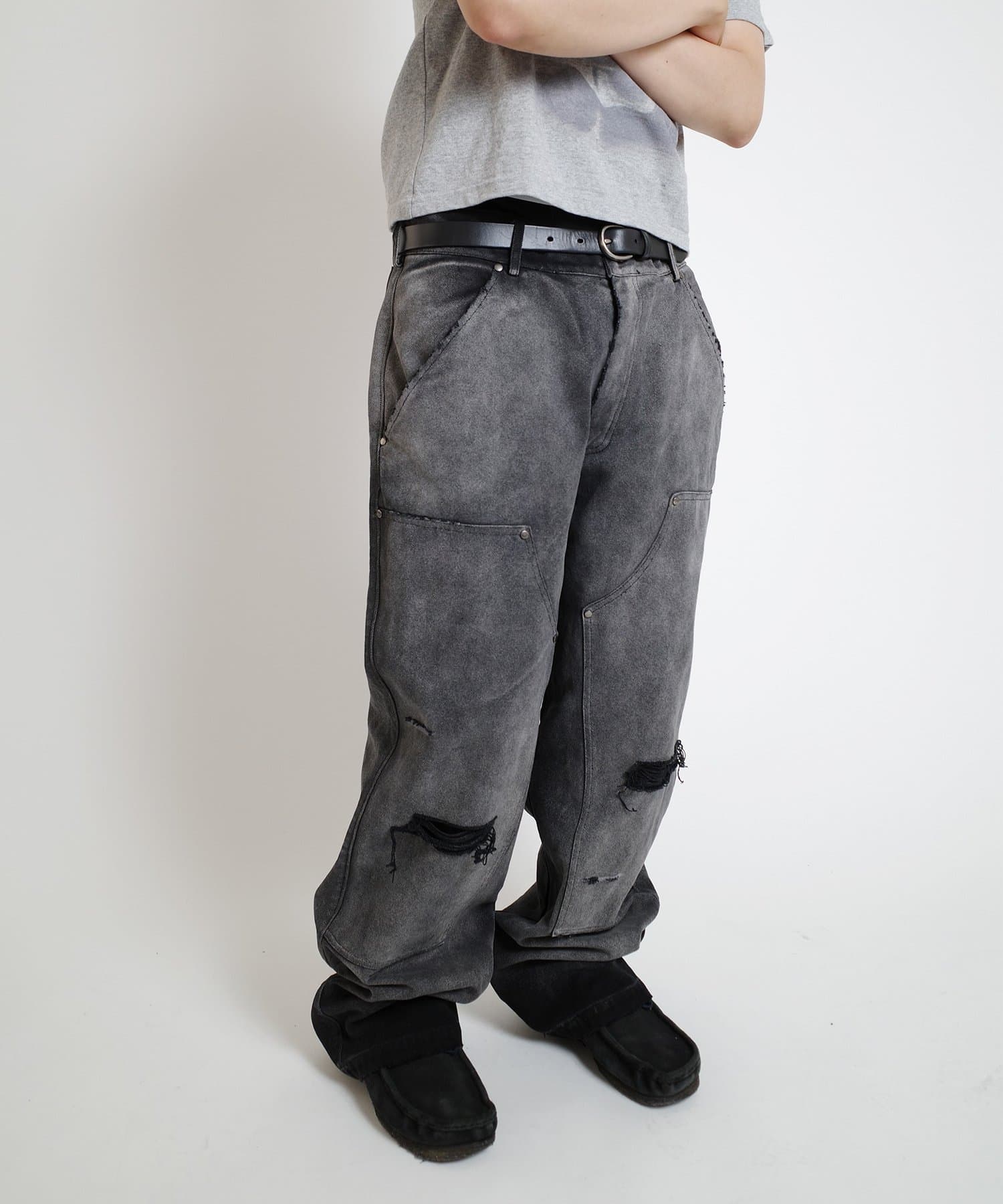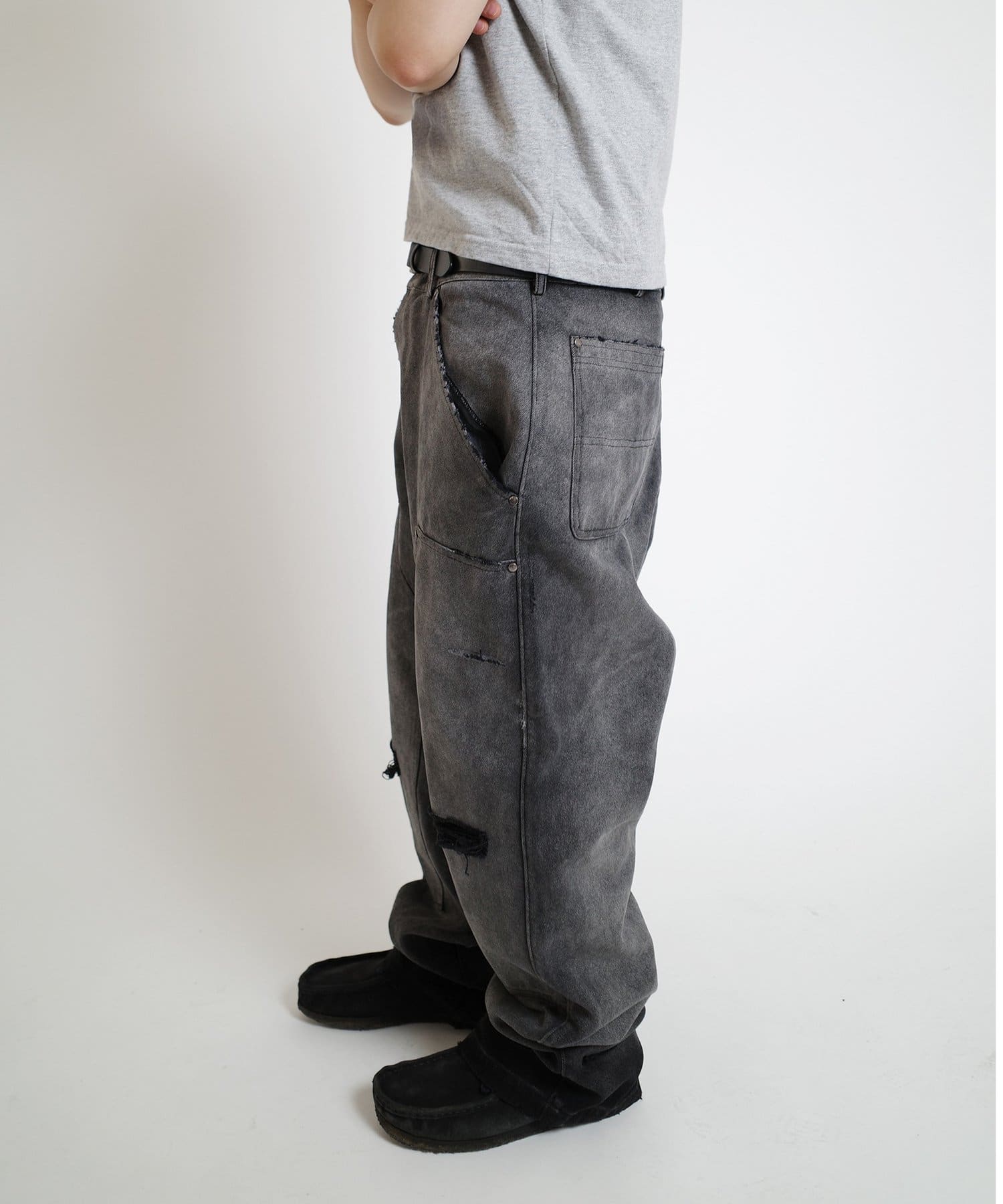 ・長年履きつぶしたかのようなフェード加工に細部までこだわったダメージ加工。