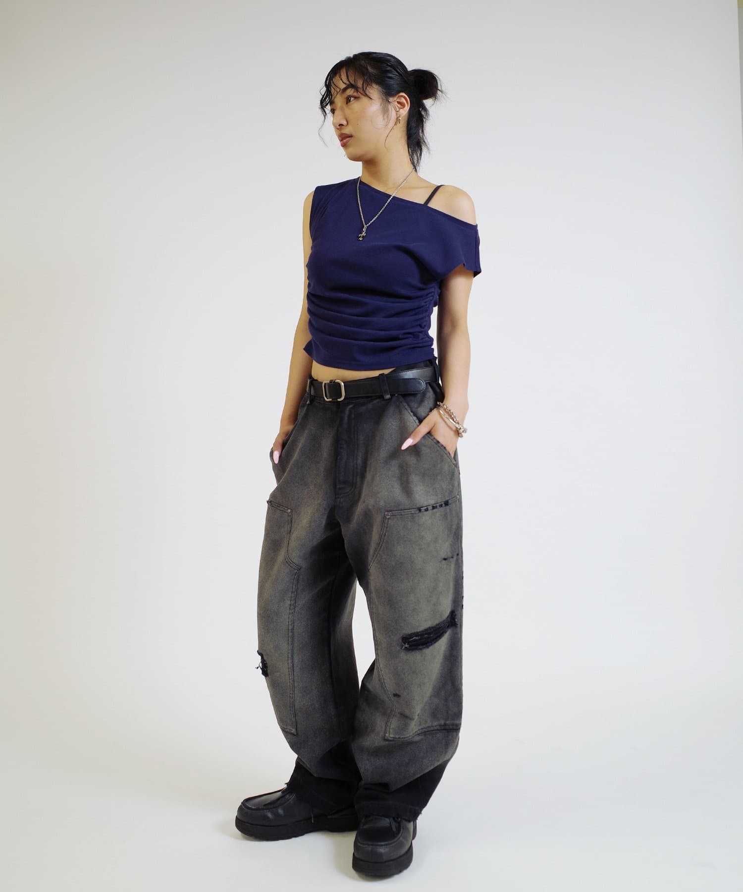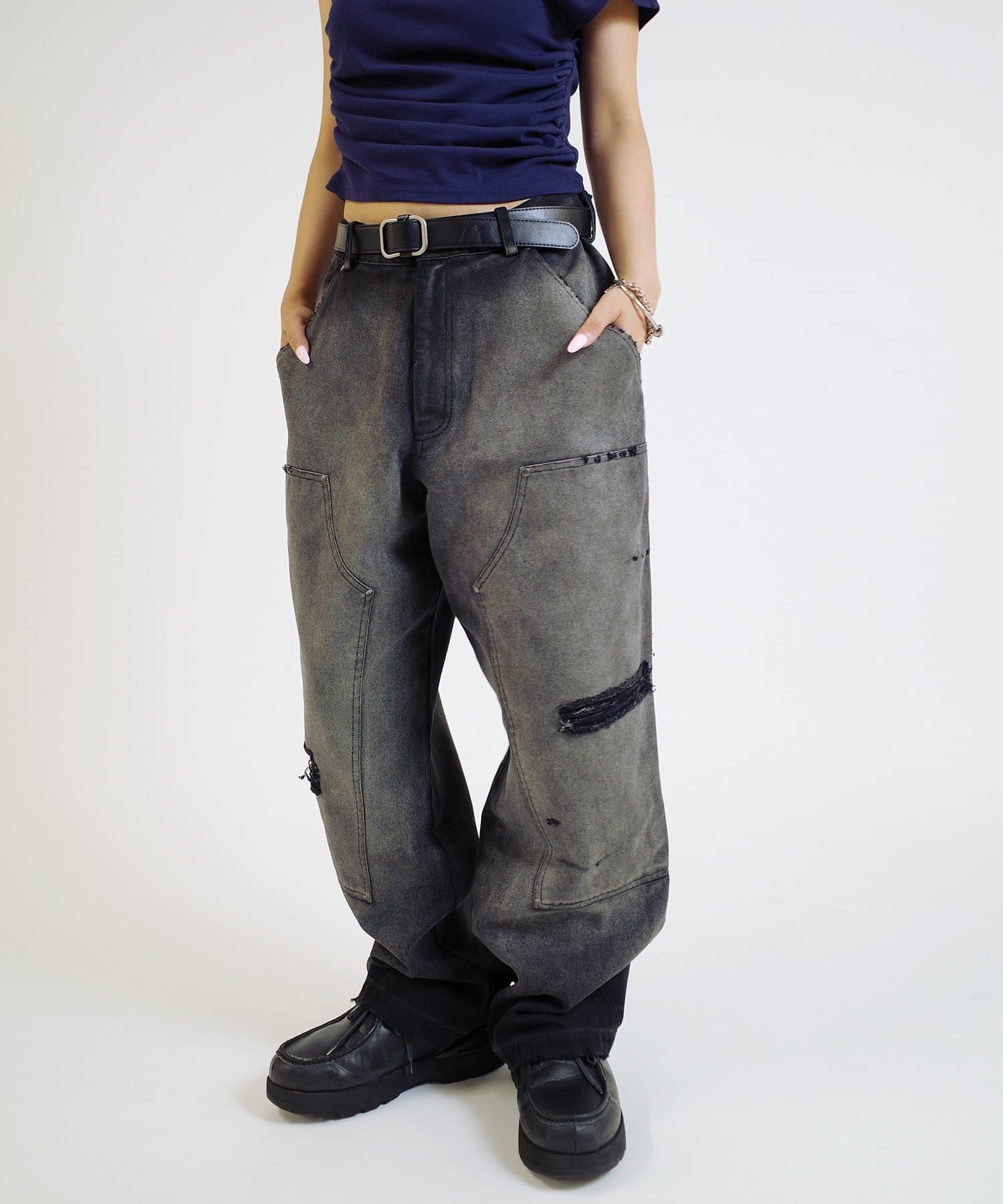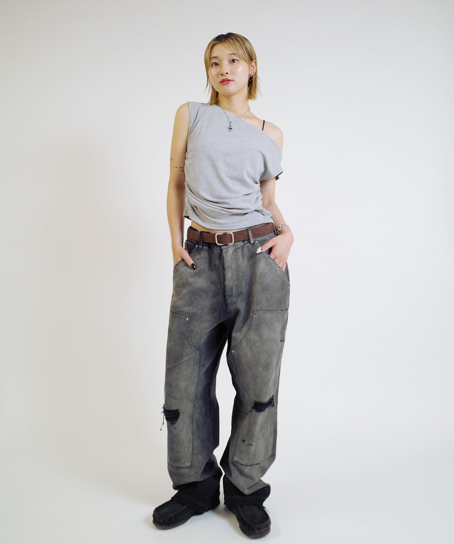 トレンドのワークパンツも他と被らないデザインになっています