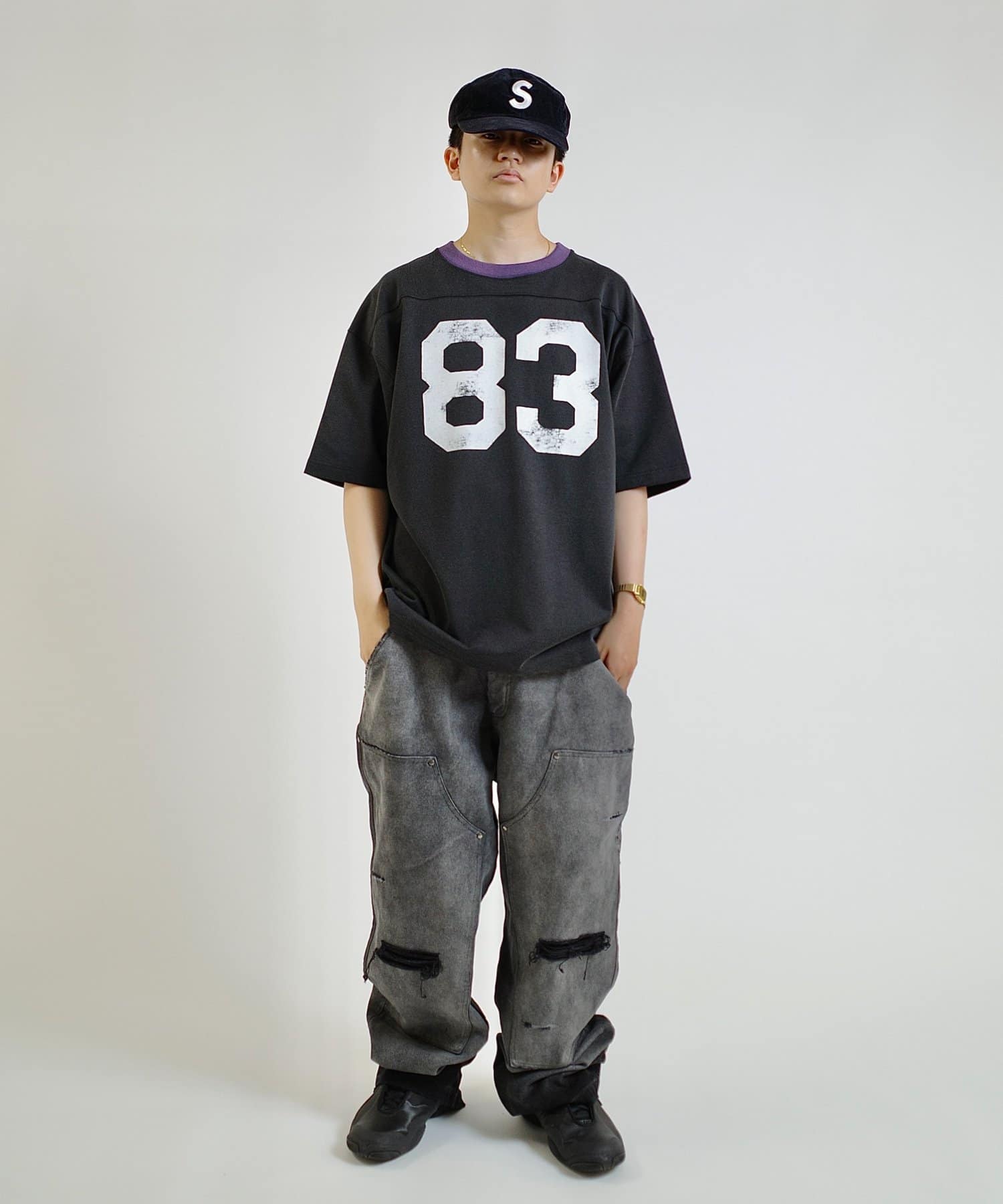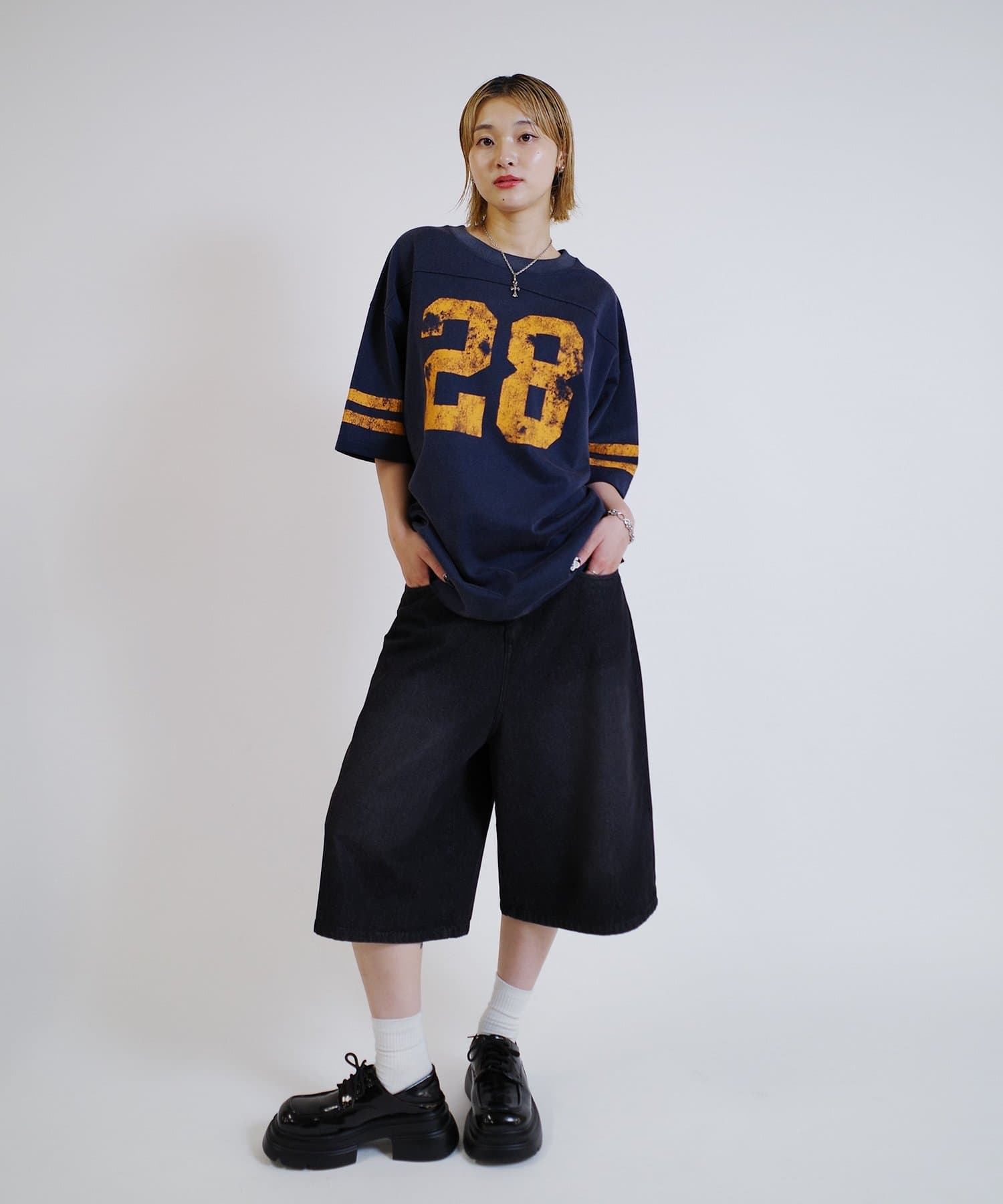 ・オーバーサイズなので、ハーフパンツで少し足元を出すと抜け感が出てバランス良く着れます。