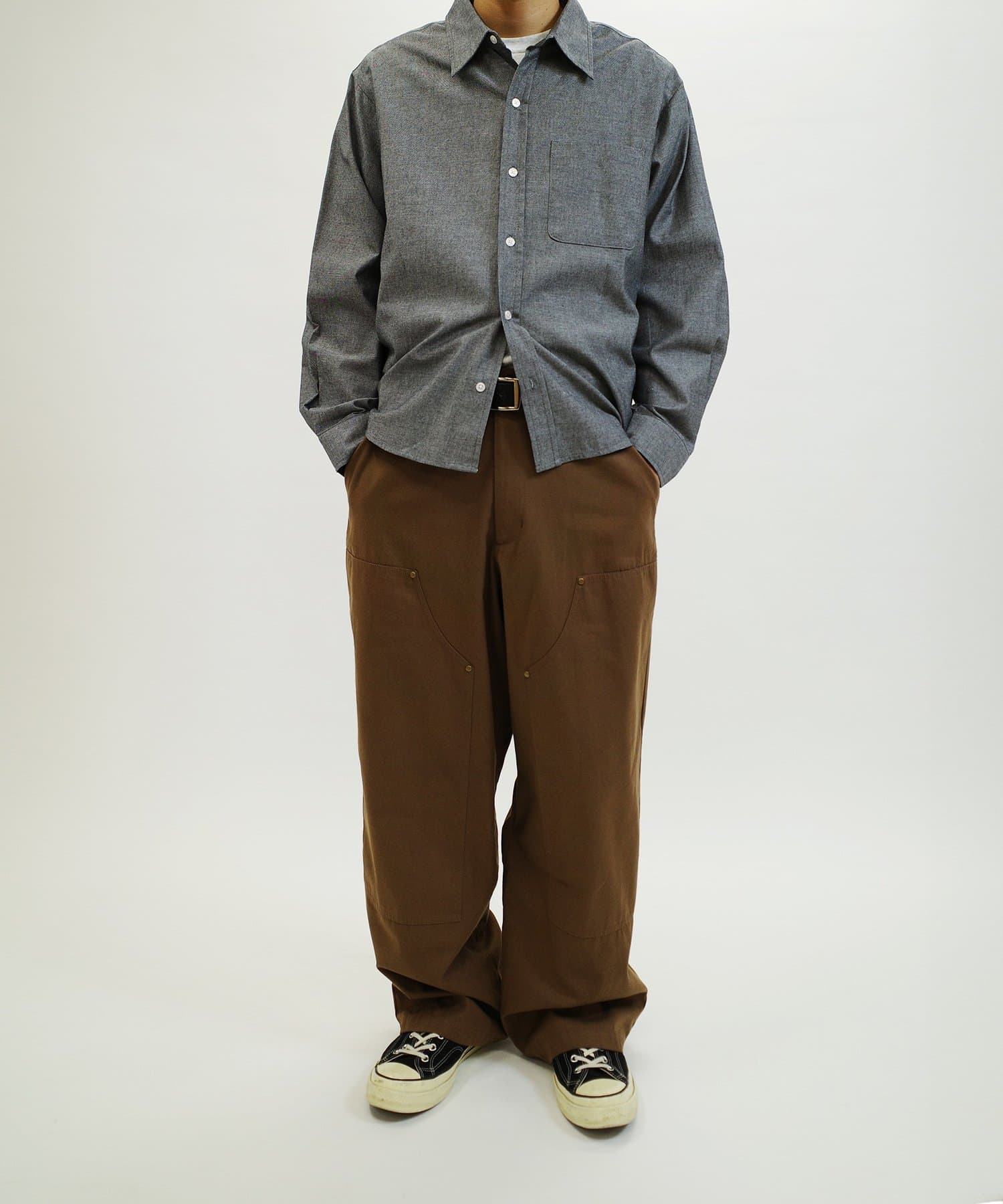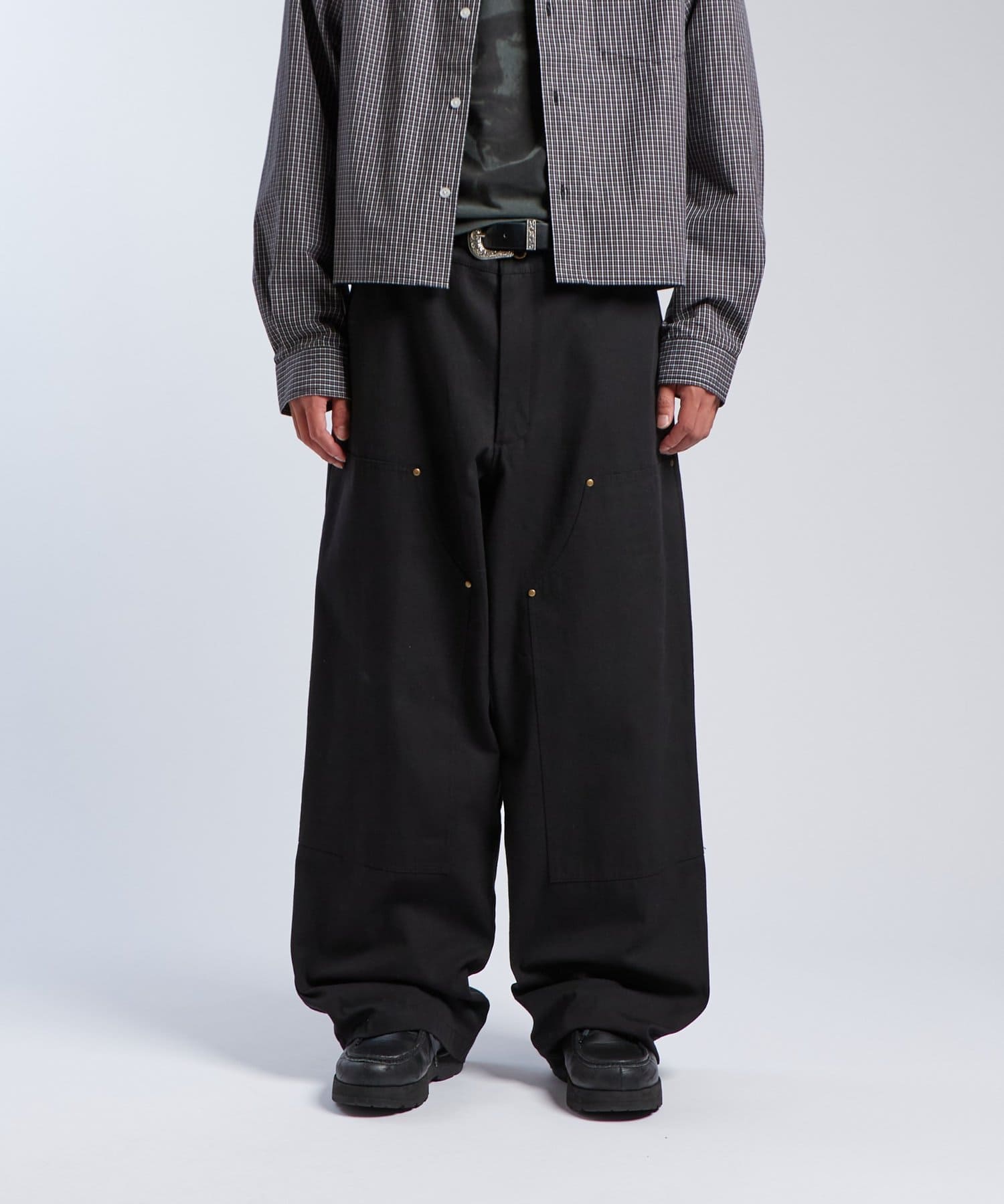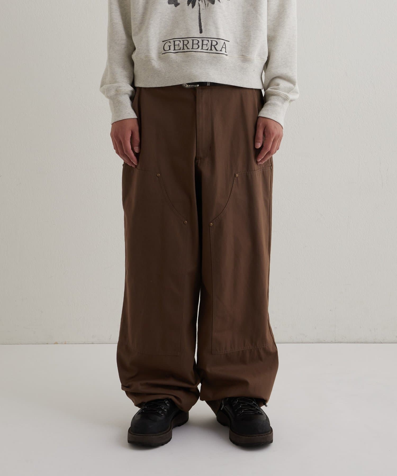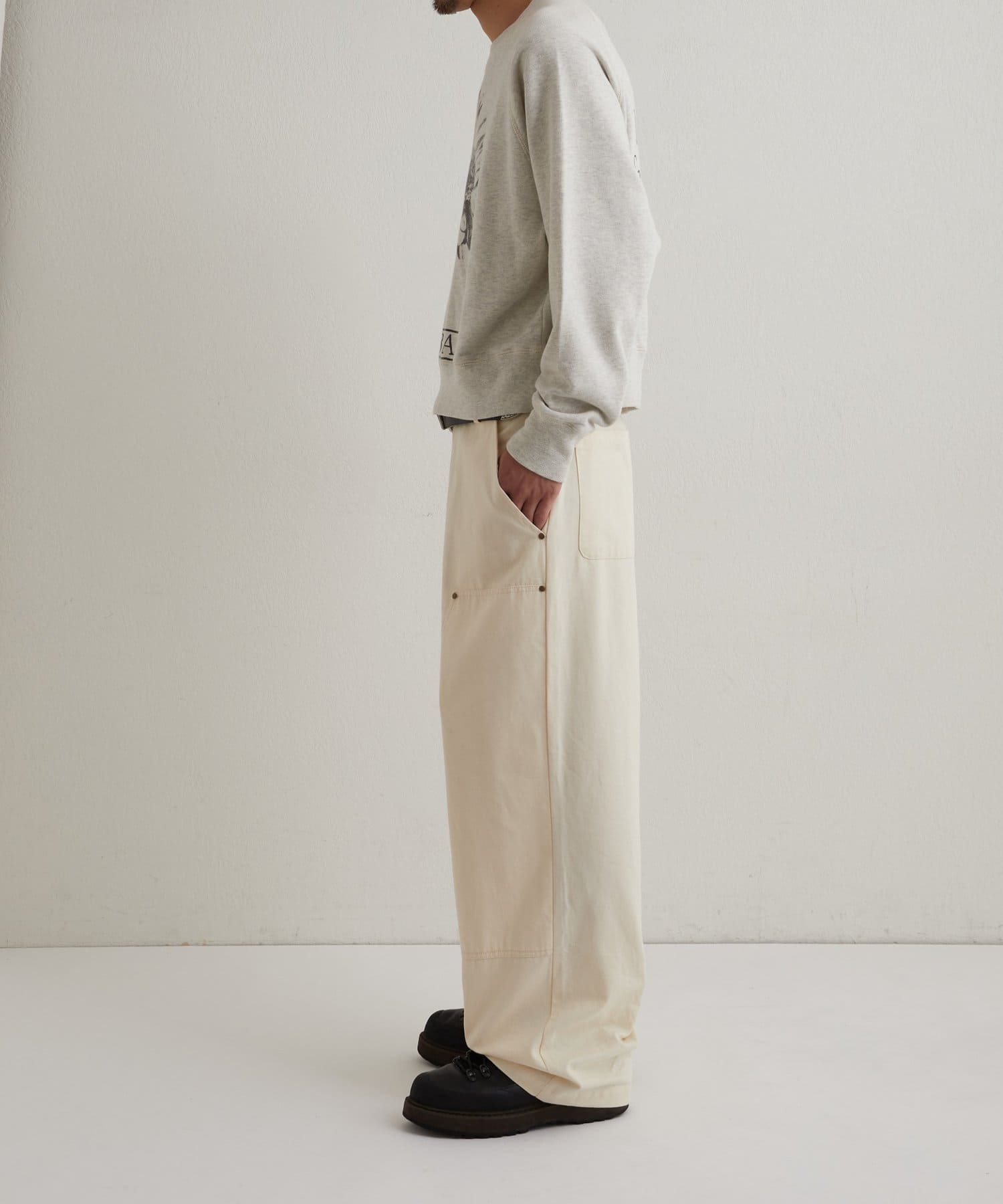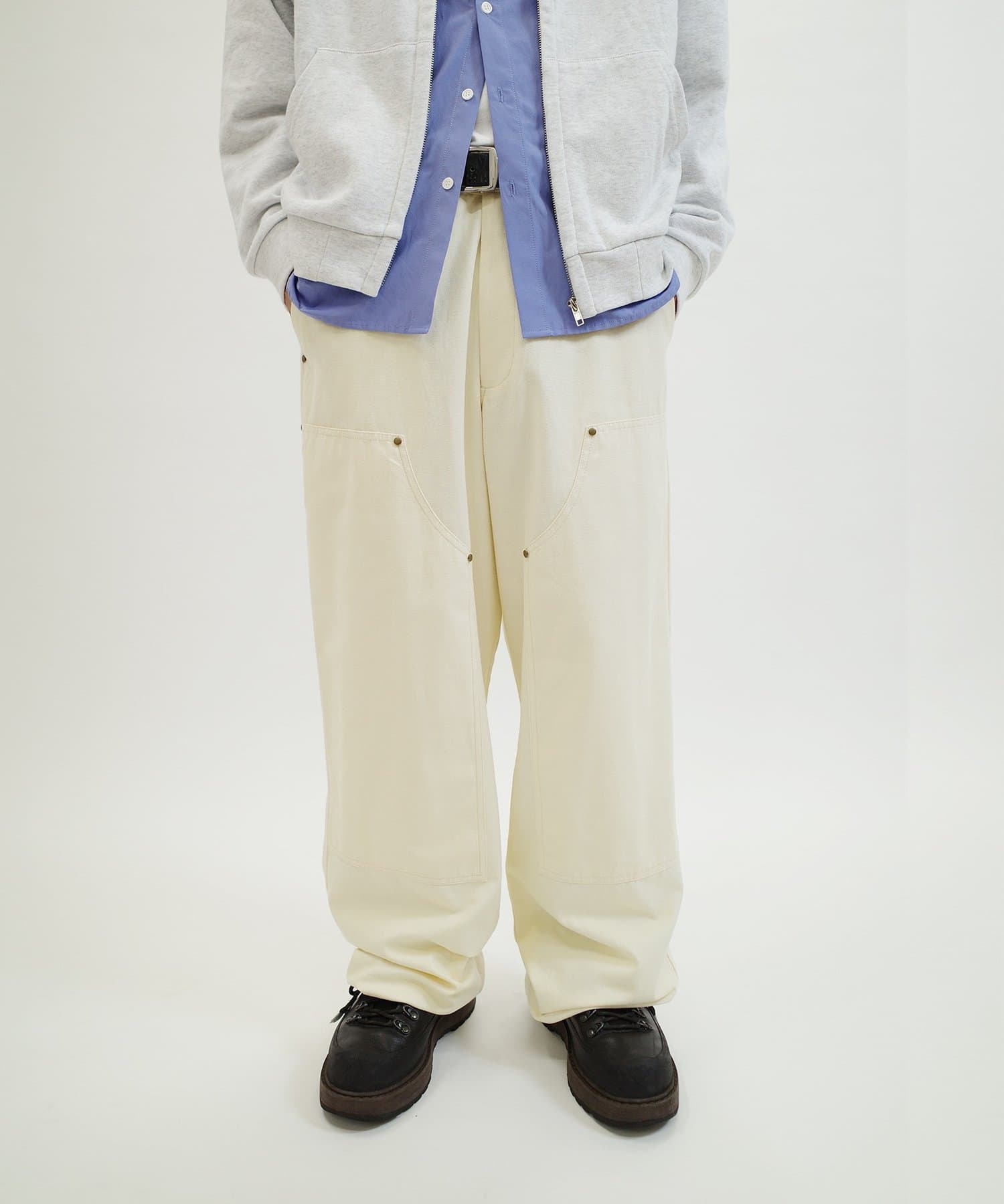 ダック素材のダブルニーパンツ