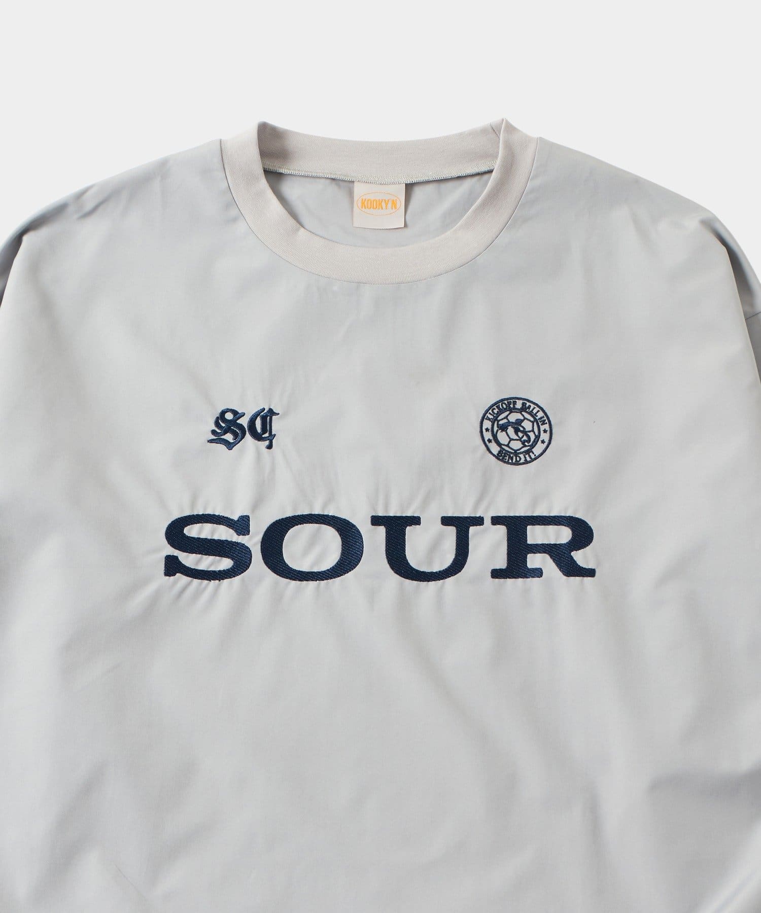 ・フロントに配されたサワークリームのロゴが目を引く、ナイロンサッカープルオーバー。