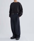 ・程よくゆとりのあるシルエットで、リラックスした履き心地ながらも、だらしなく見えないスラックス。