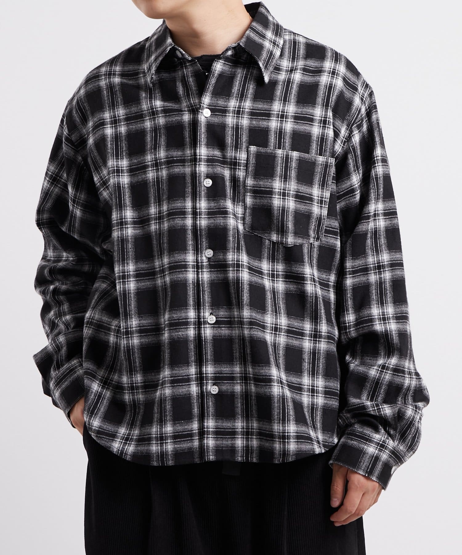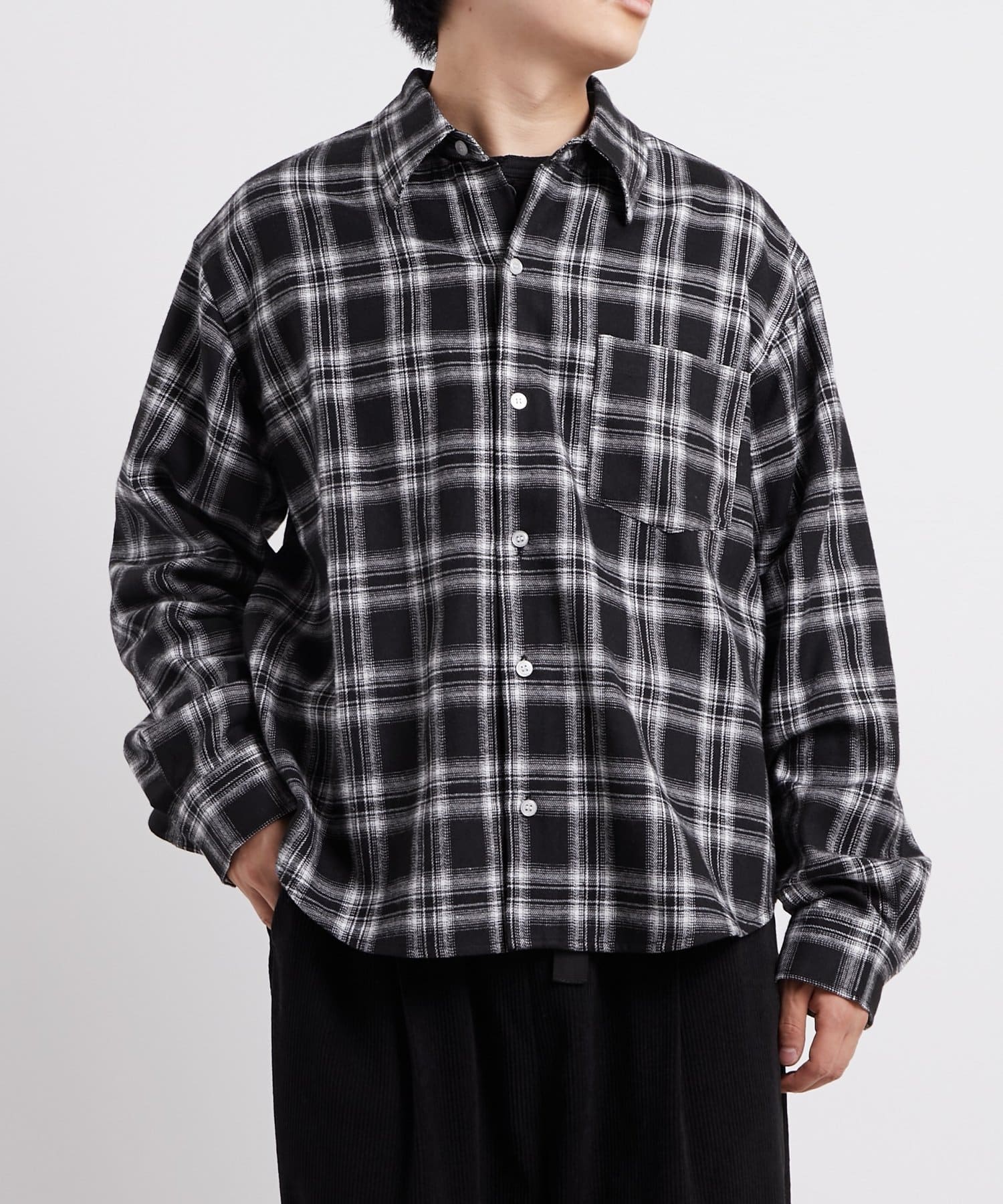 ・定番のネルチェックを現代風にアレンジ。カジュアルながらも洗練された印象を与えます。