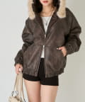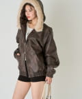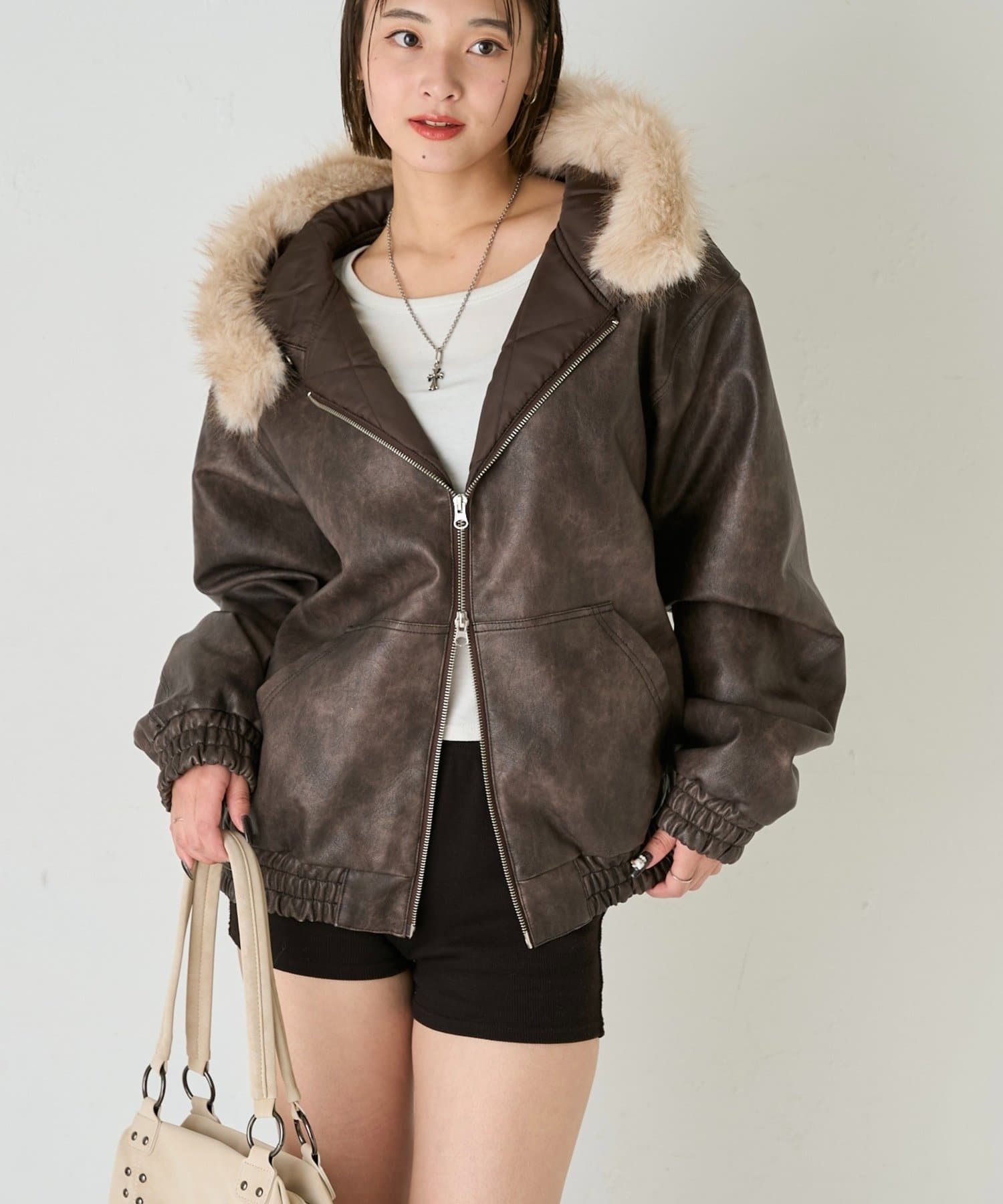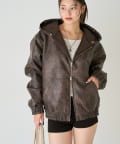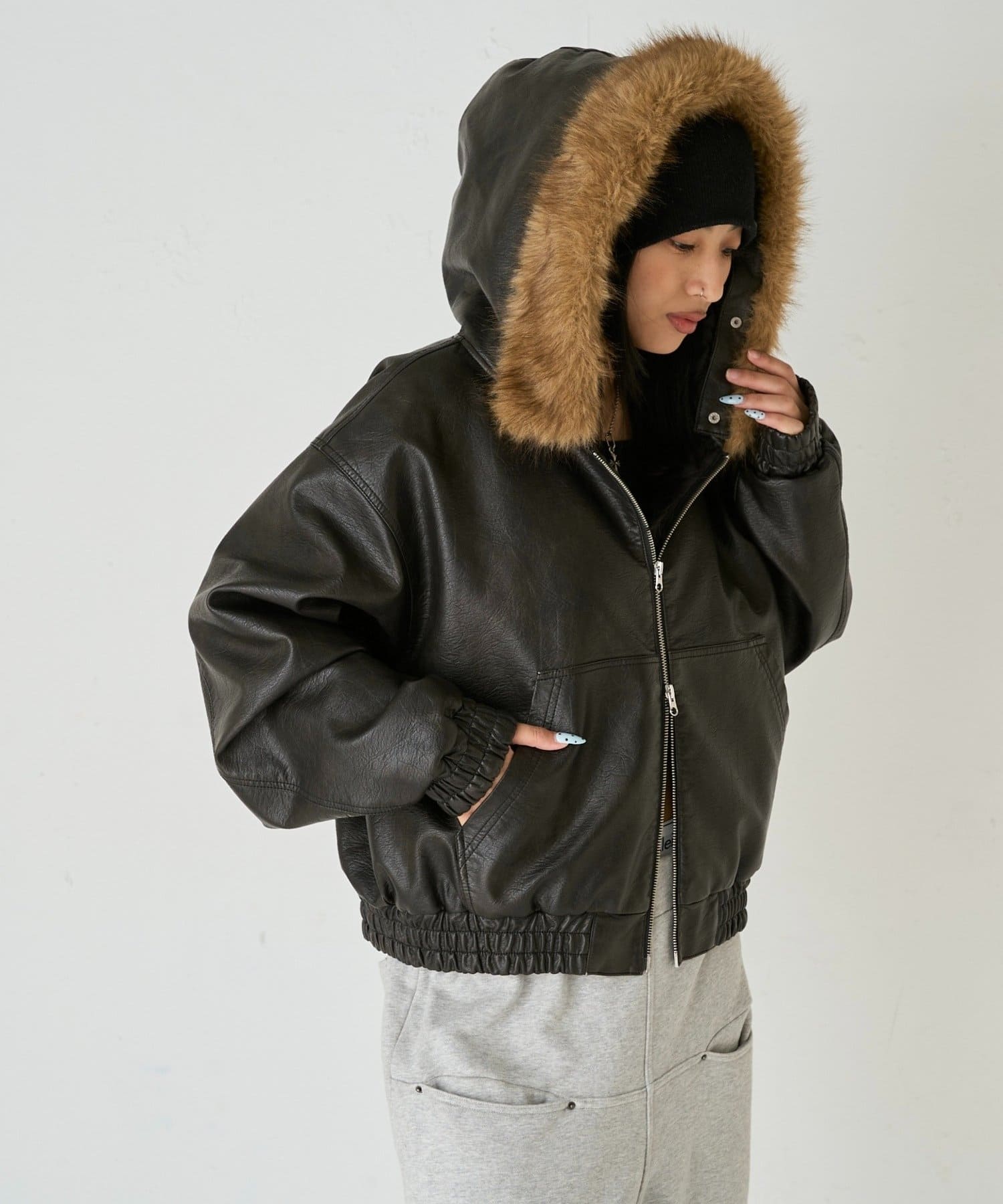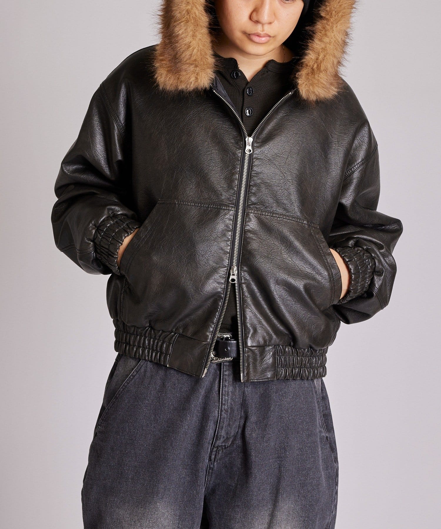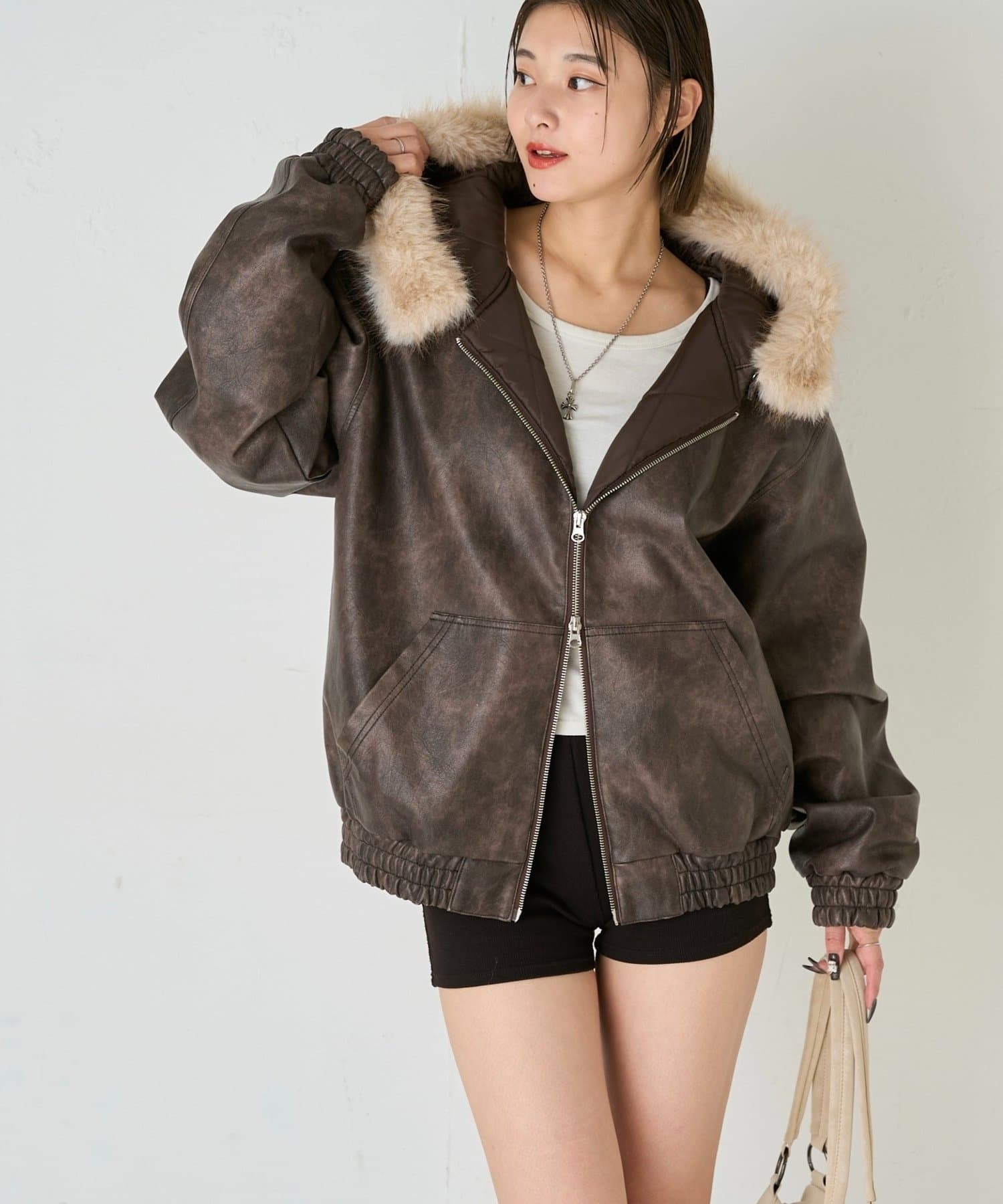 【2way/ファー取り外し可能】ヴィンテージライクレザーファーフードブルゾン