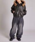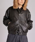 ・ヴィンテージライクな風合いが魅力のレザーファーフードブルゾン。