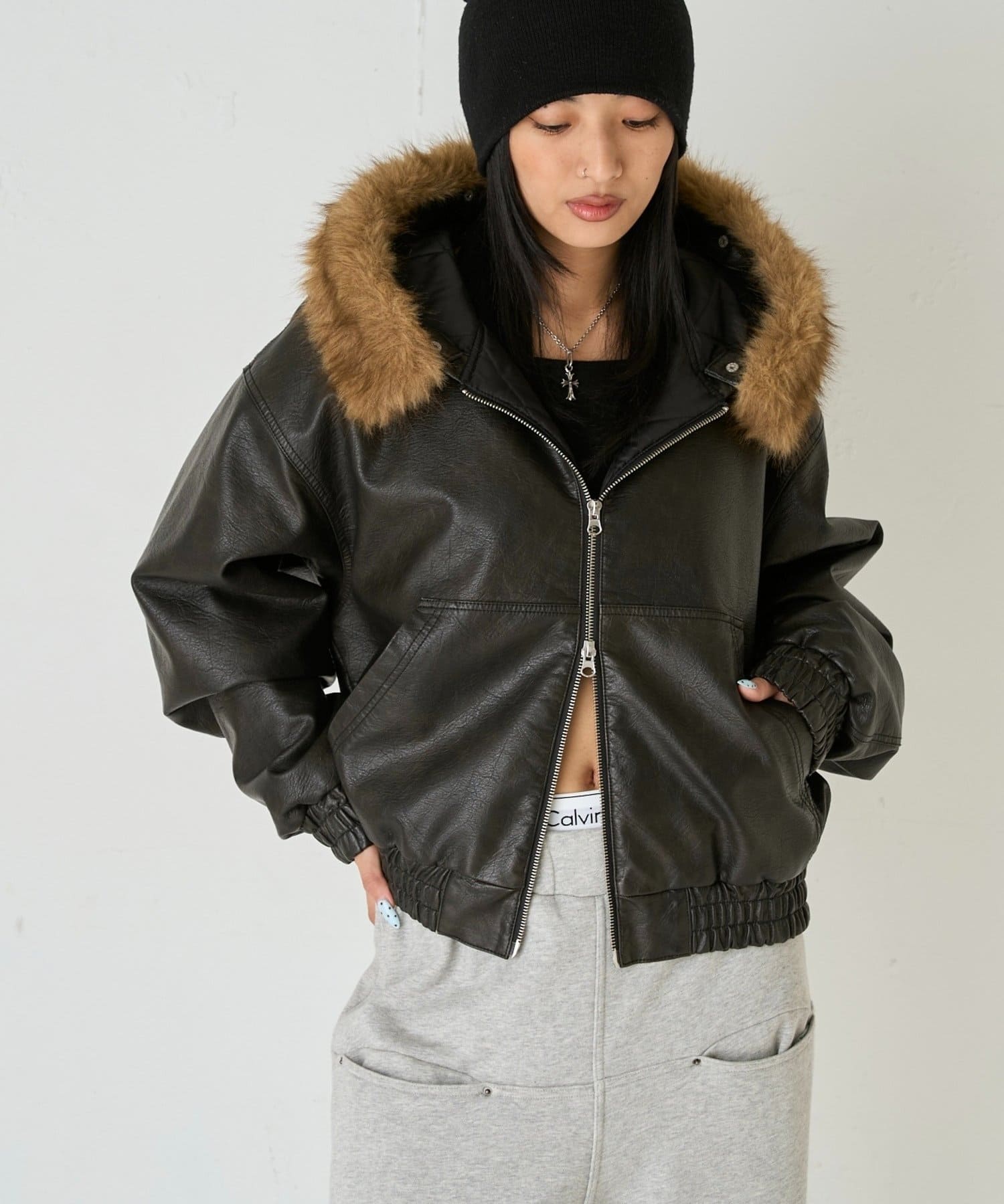 今年トレンドのファーとヴィンテージライクなレザーブルゾン。