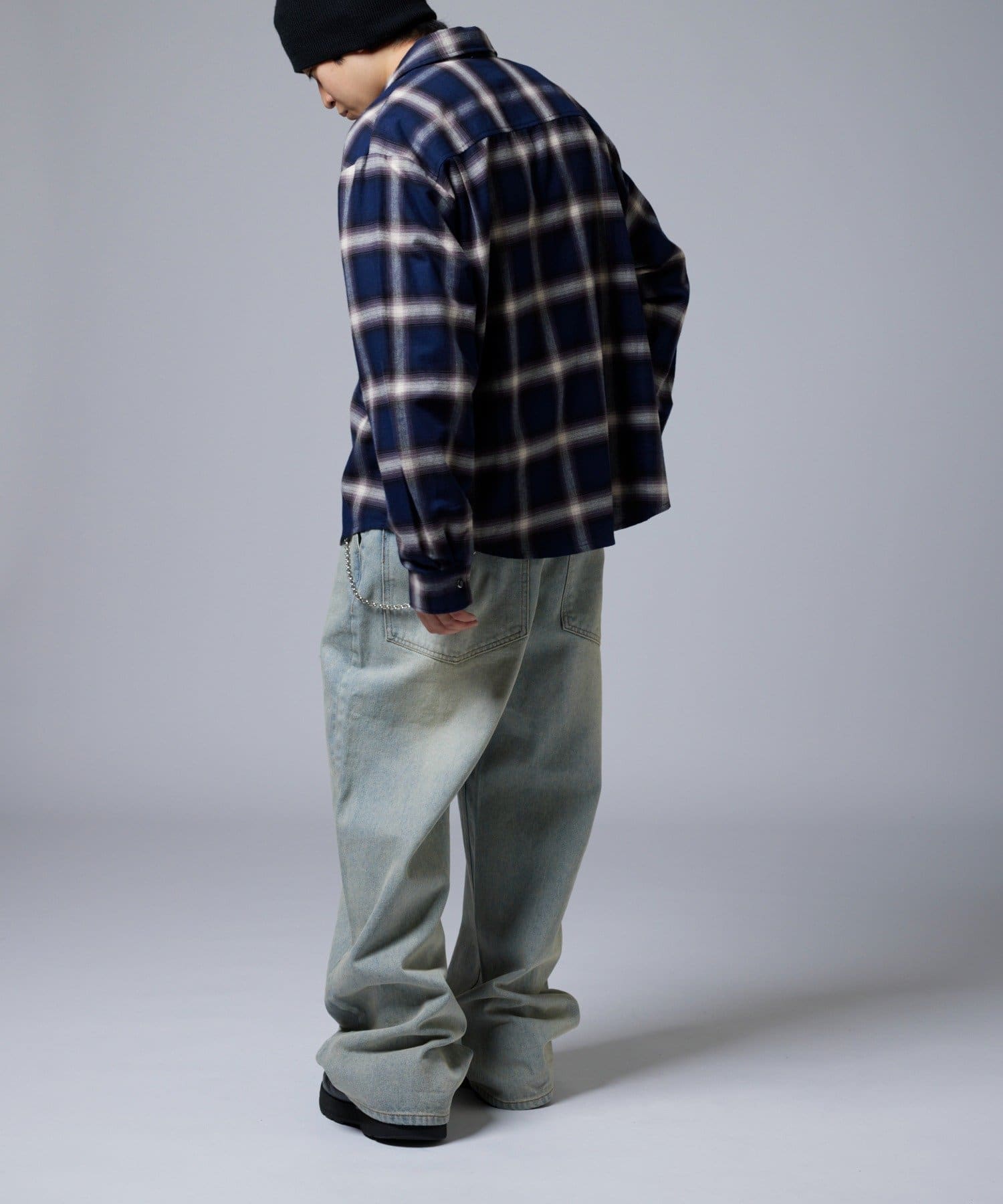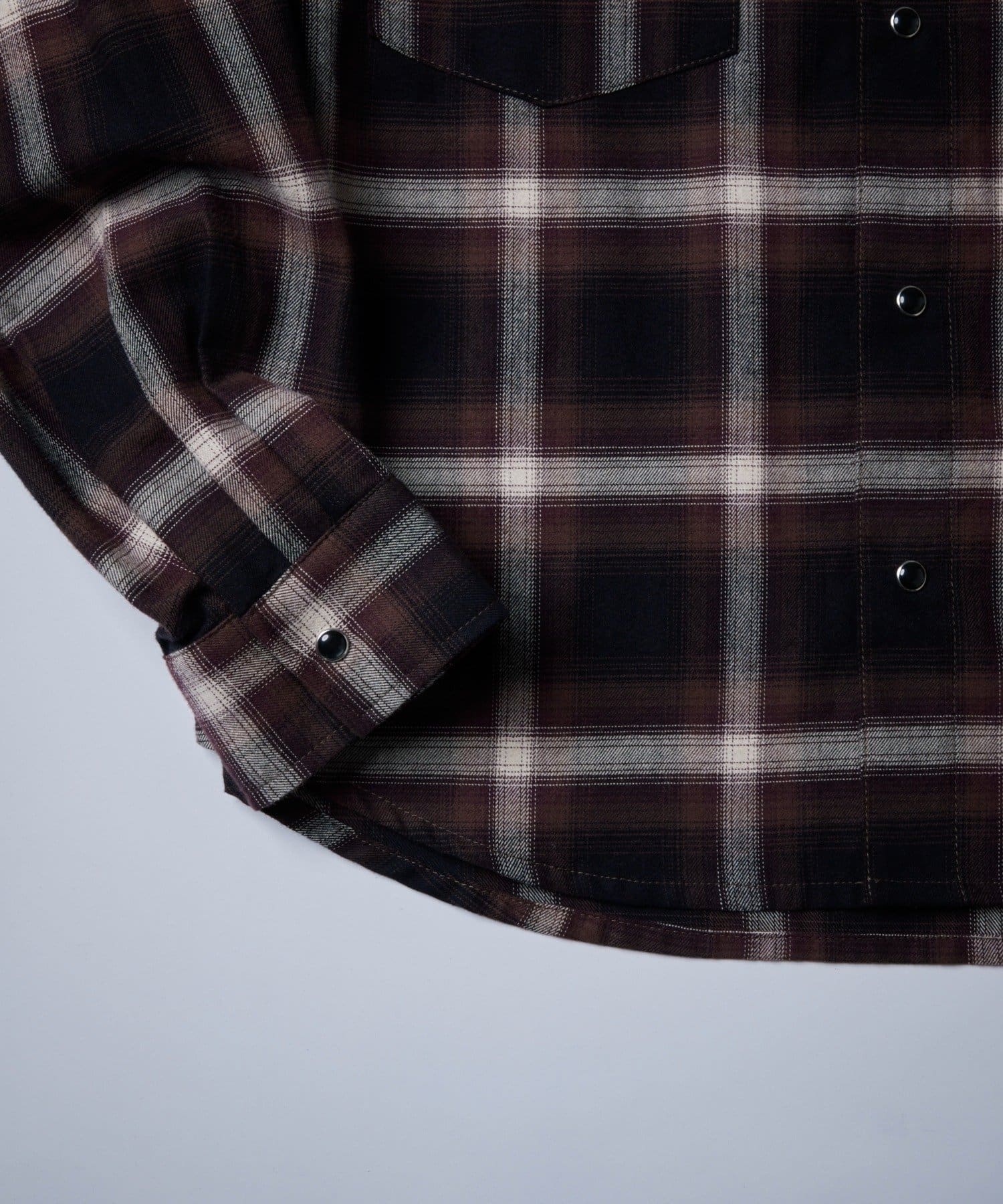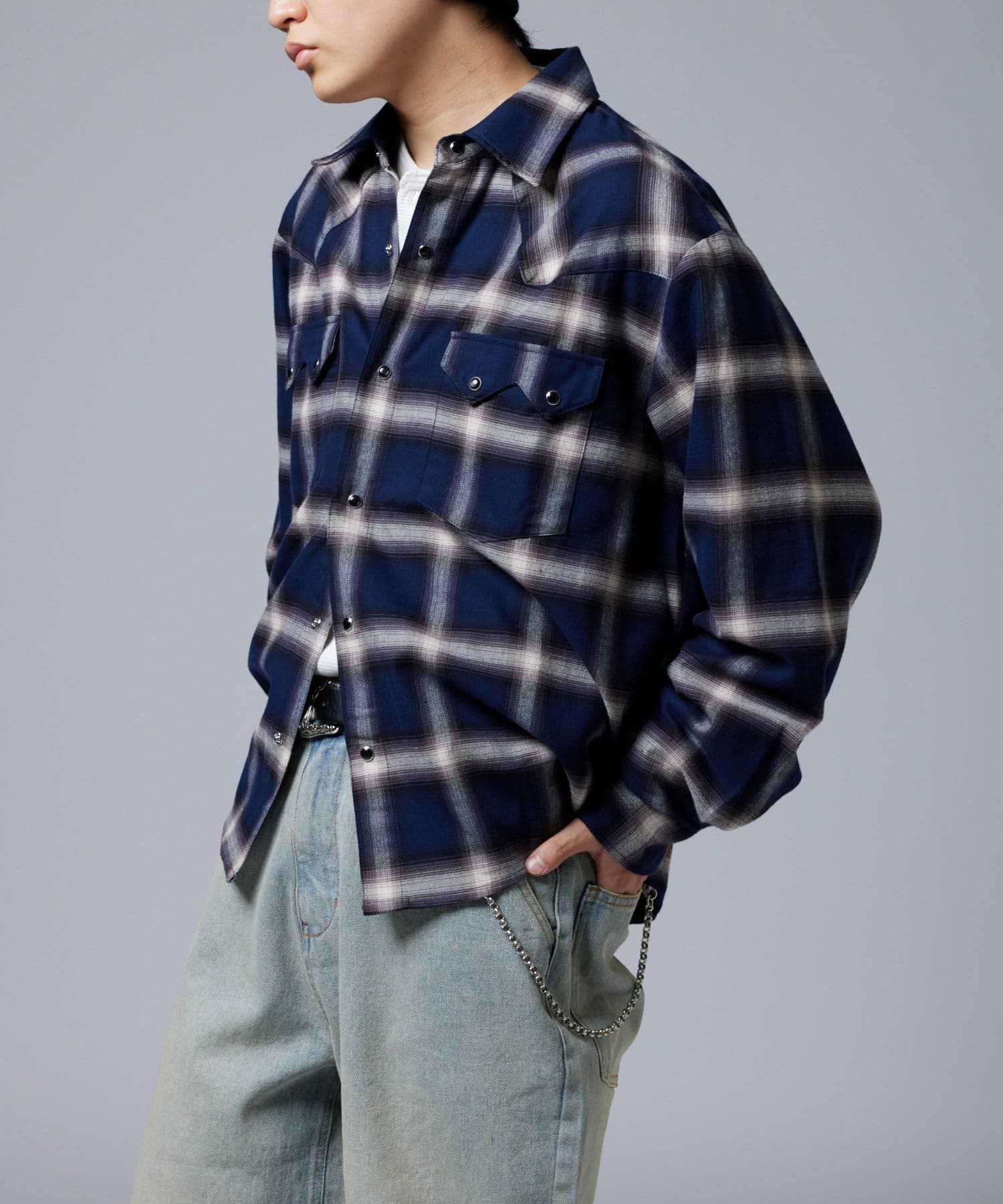 ・落ち着いたトーンのオンブレチェックとウエスタンディティールが普段のコーディネートをワンランク引き上げます。