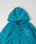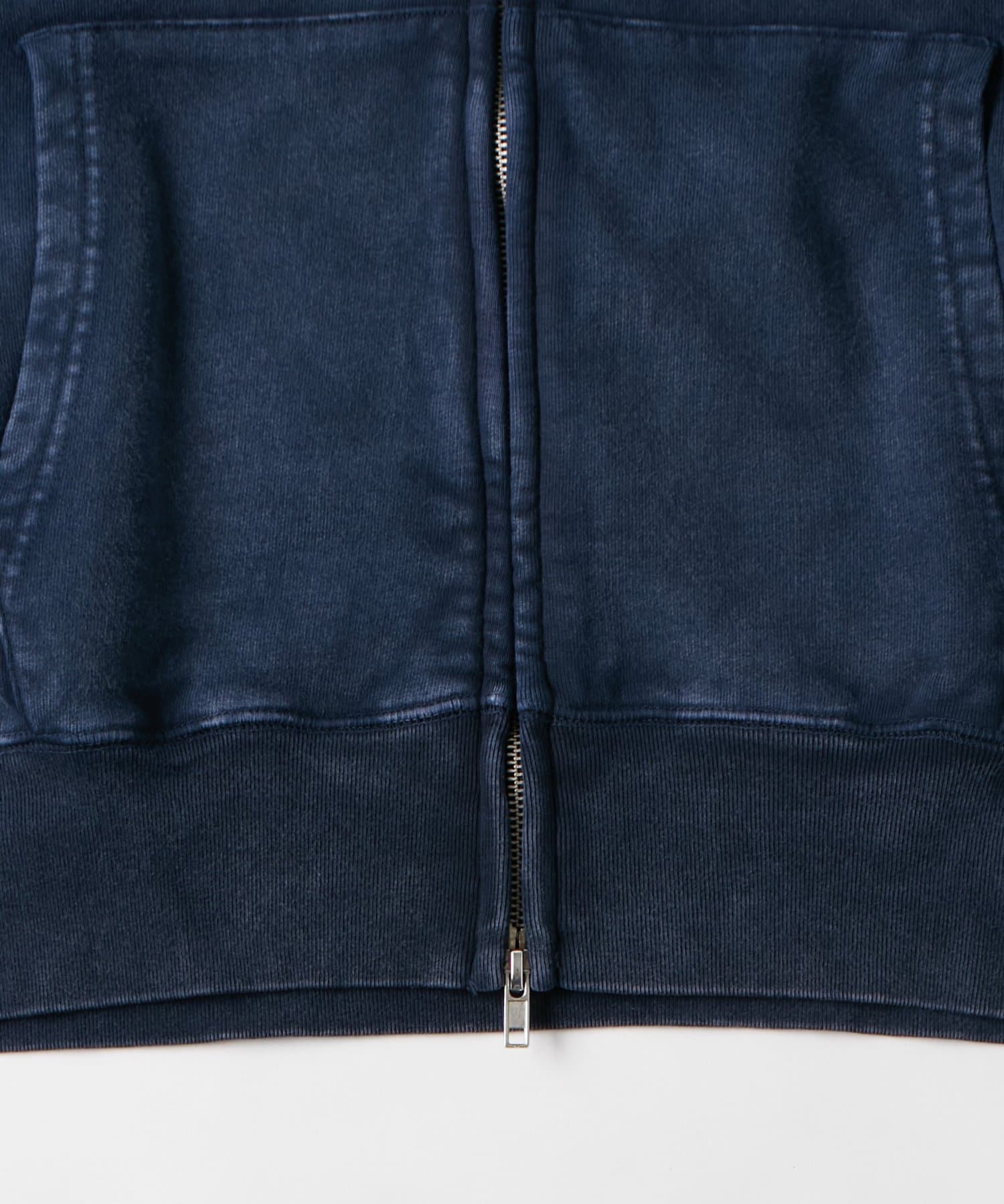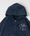 ・胸元の「KY」ロゴが目を引く、ケミカルウォッシュ加工を施したジップパーカー。