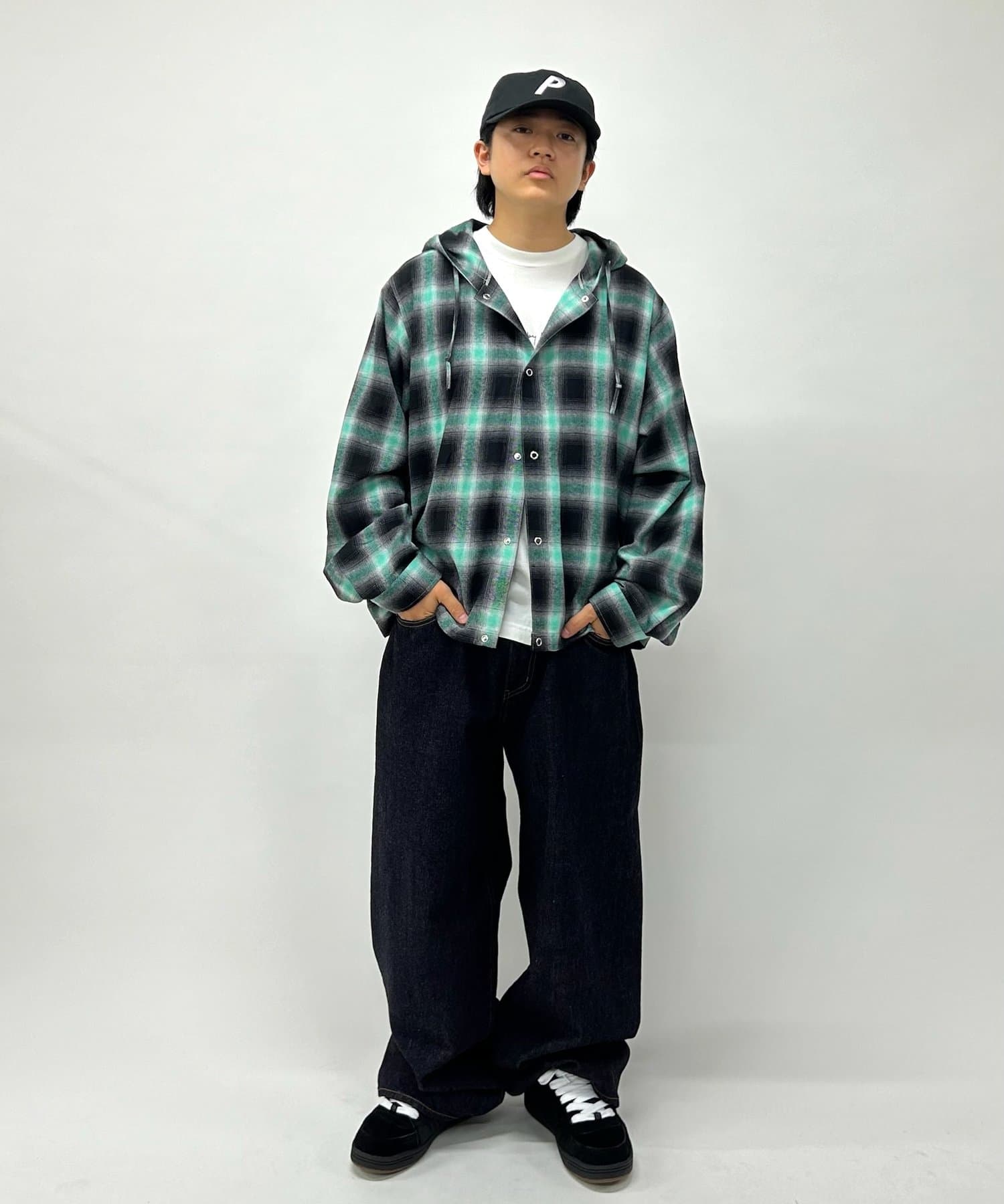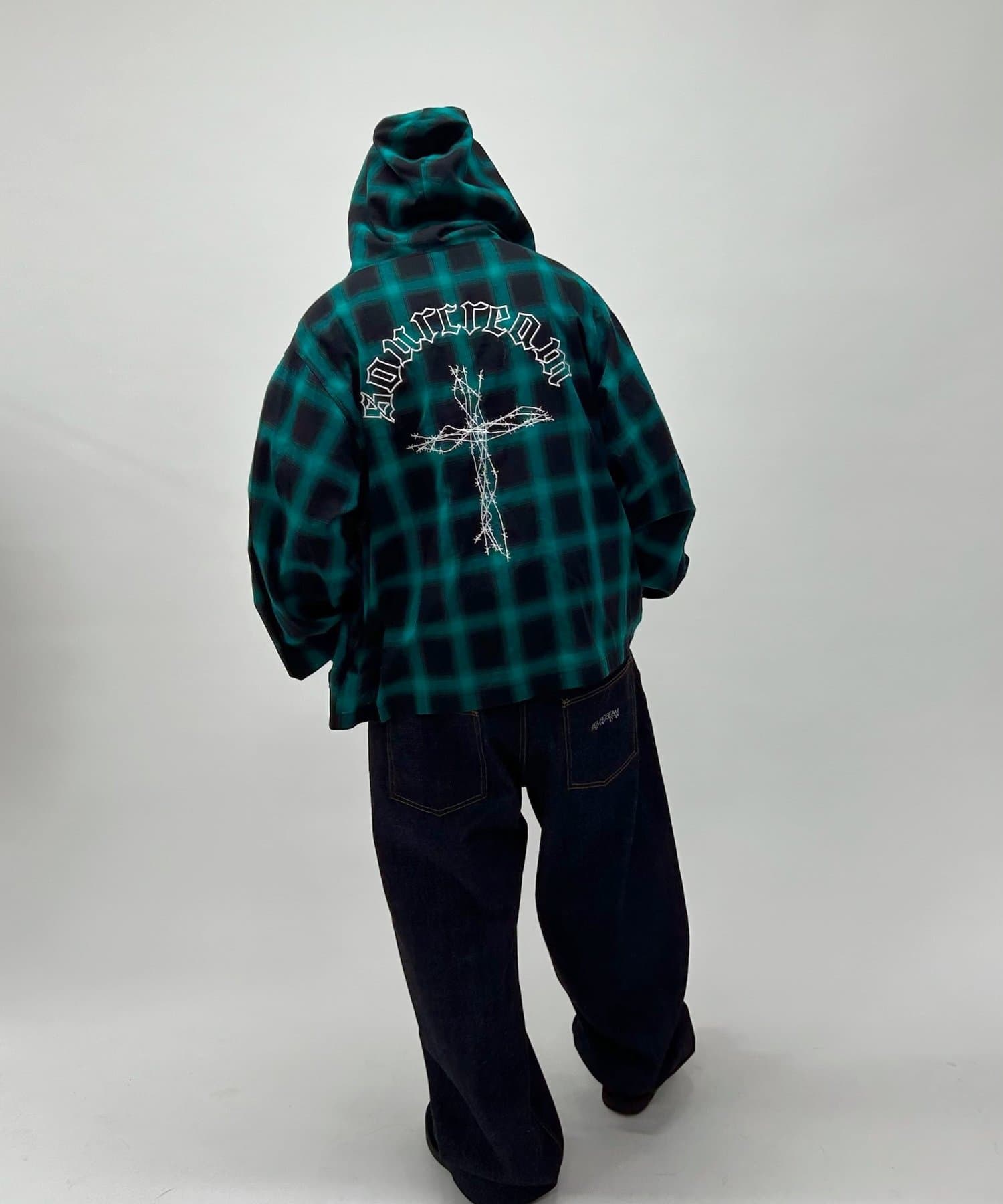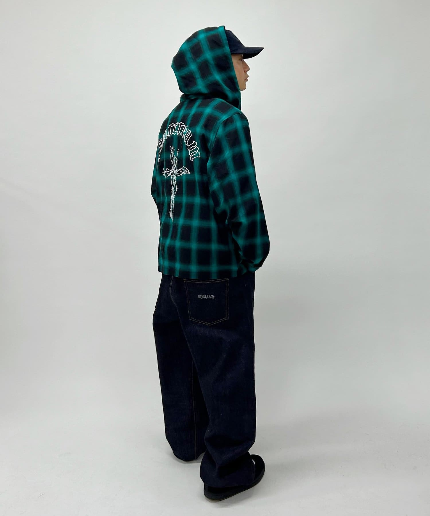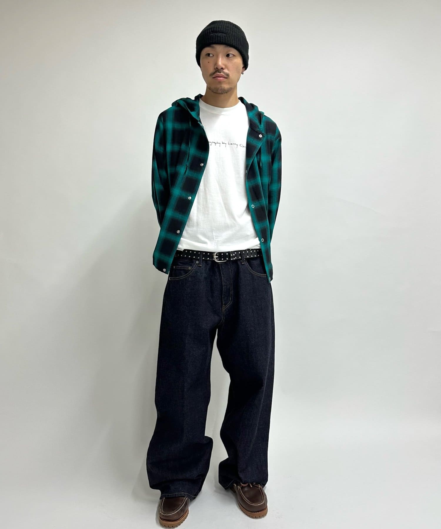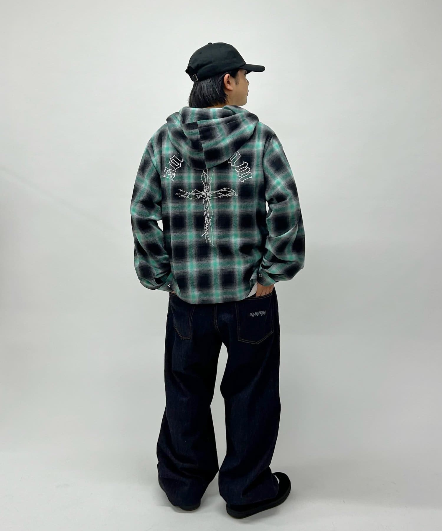 ・加工感のあるデニムで合わせる強めのストリートスタイル、